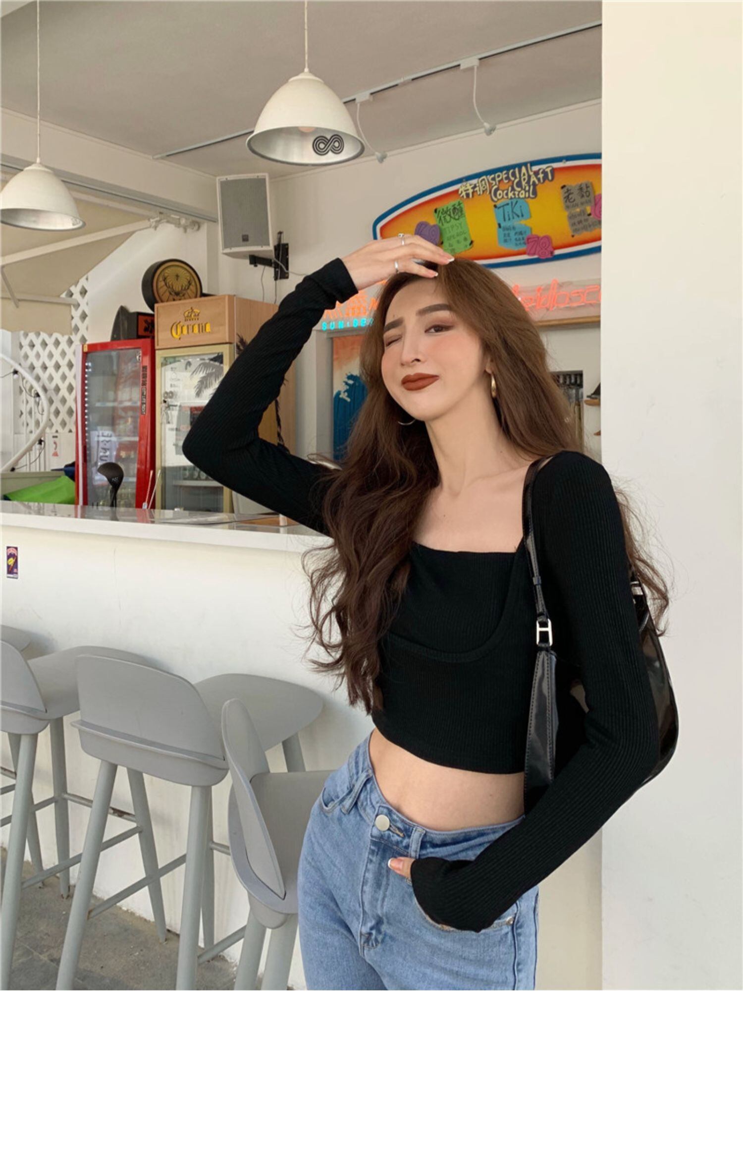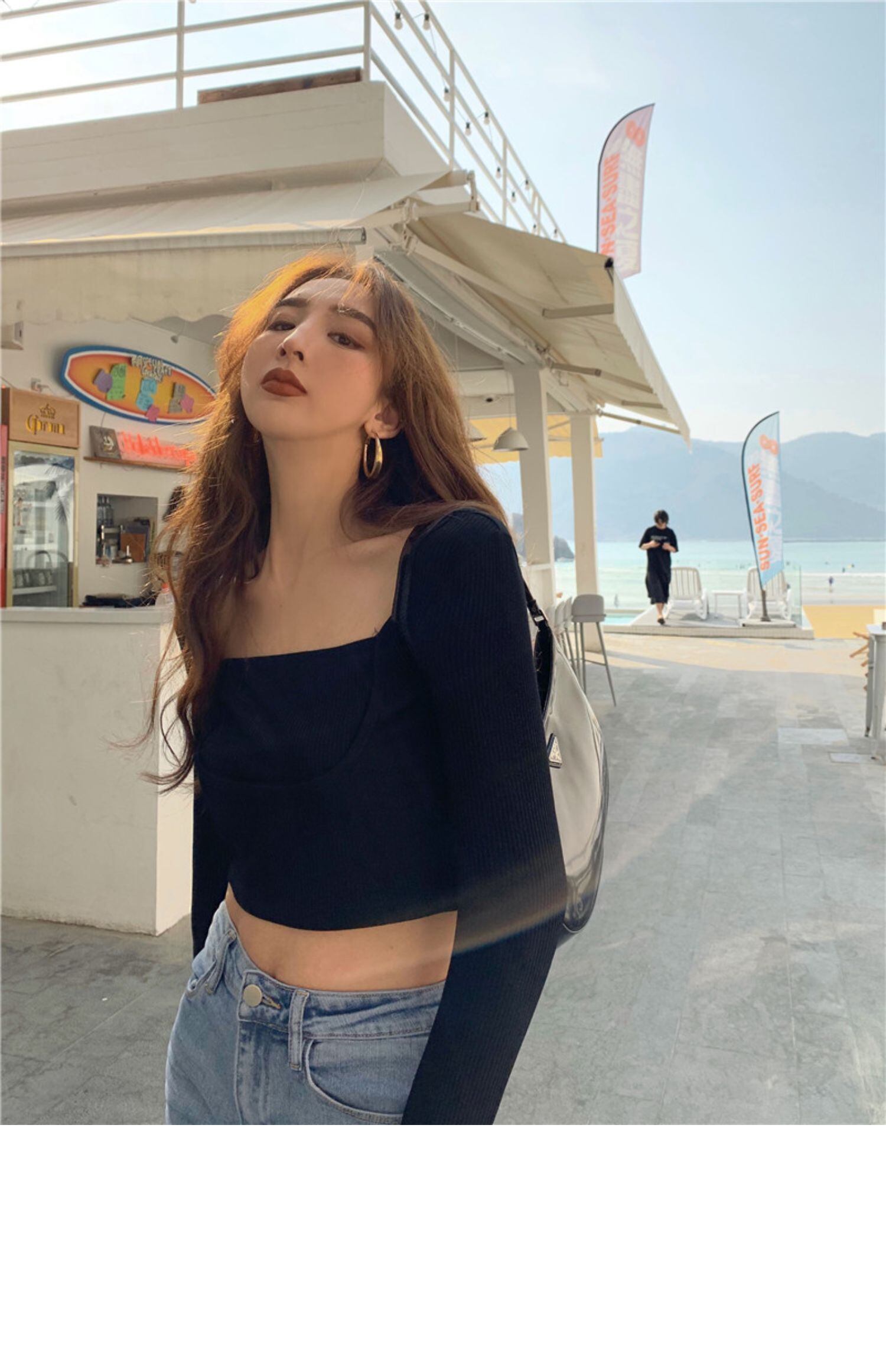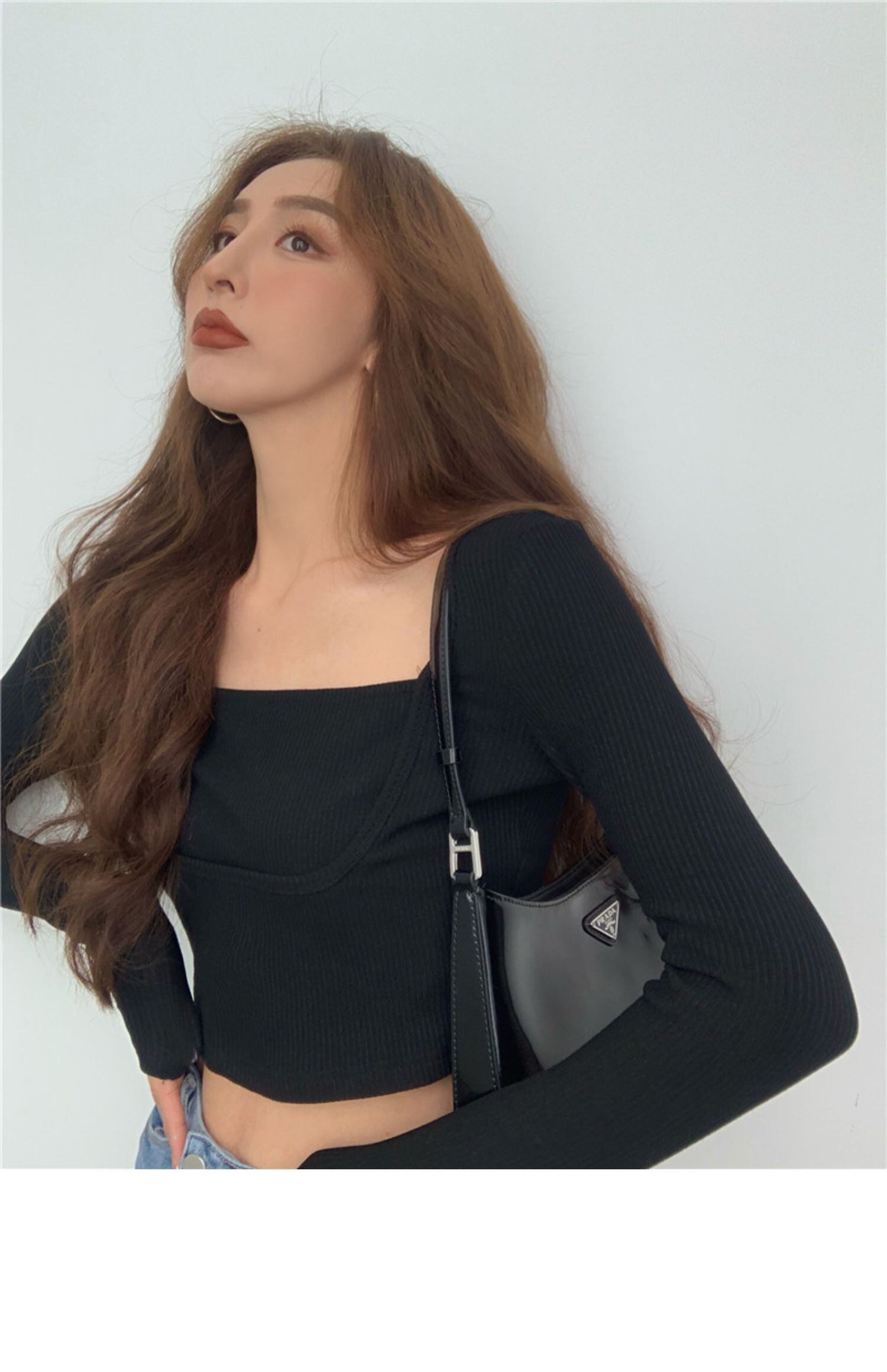 オータムスタイルショートトップス スリムシャツ ベーシックTシャツ レディース ロング 秋物 スクウェア ドラファッションホール40078325837