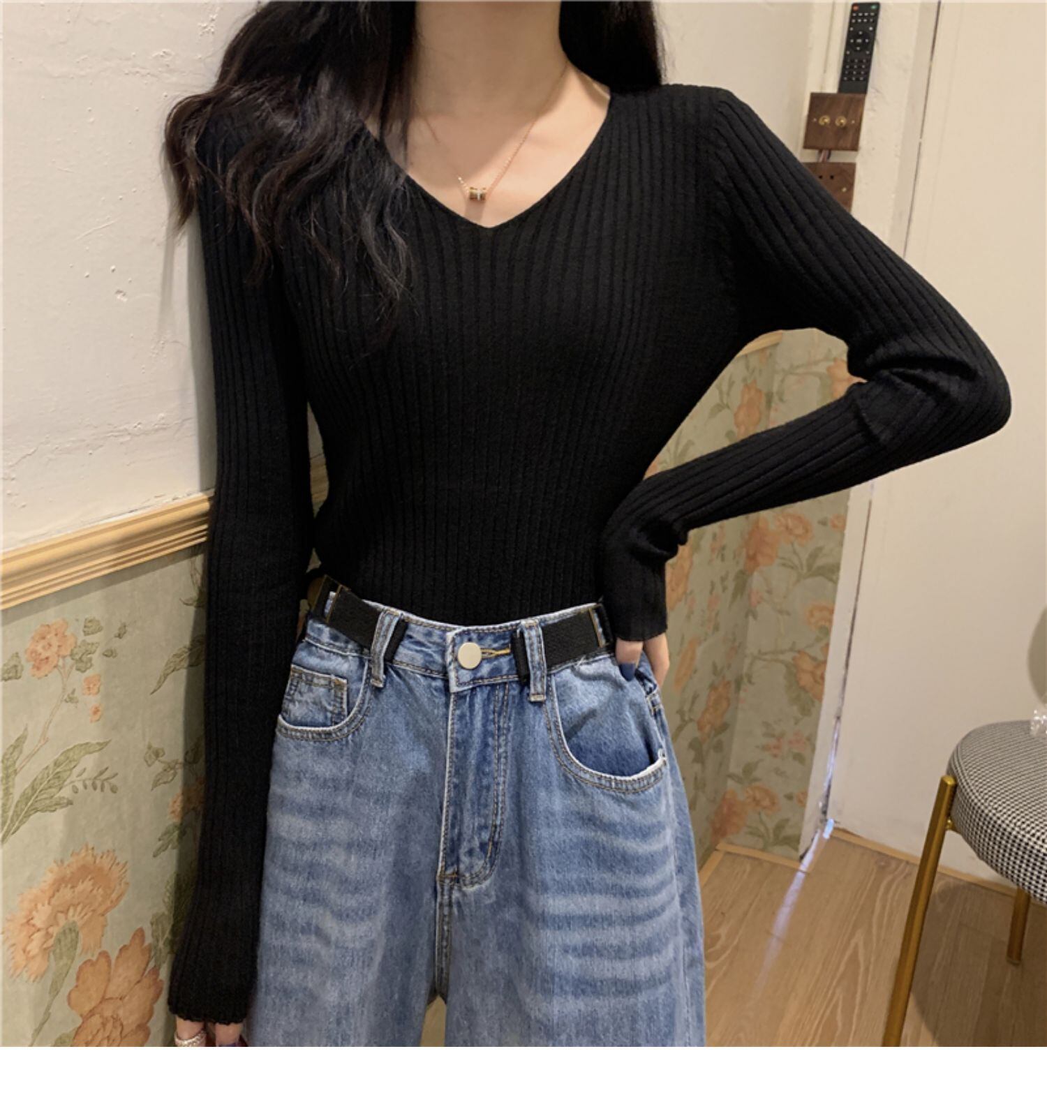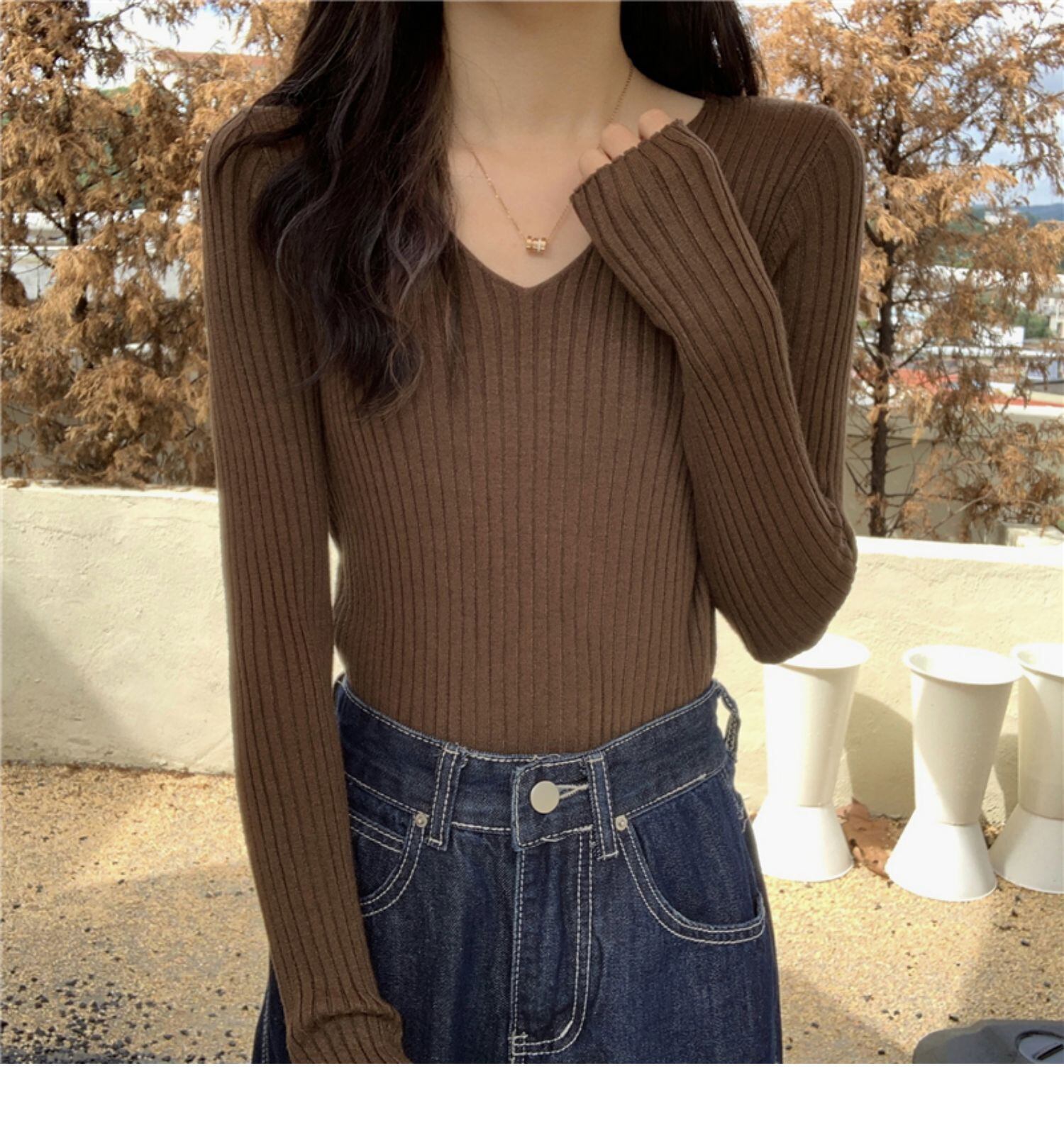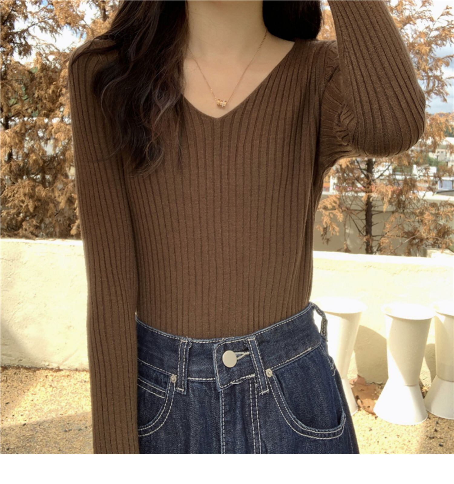 スタイルVネックセーター スリムプルオーバー カジュアルトップス サマー薄手 ロング 夏物 ドラファッションホール90214012039