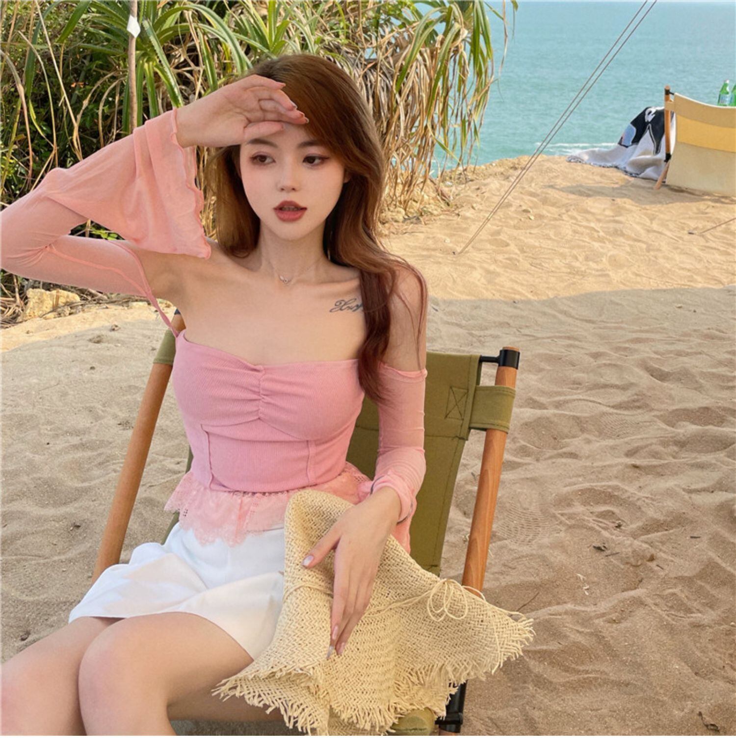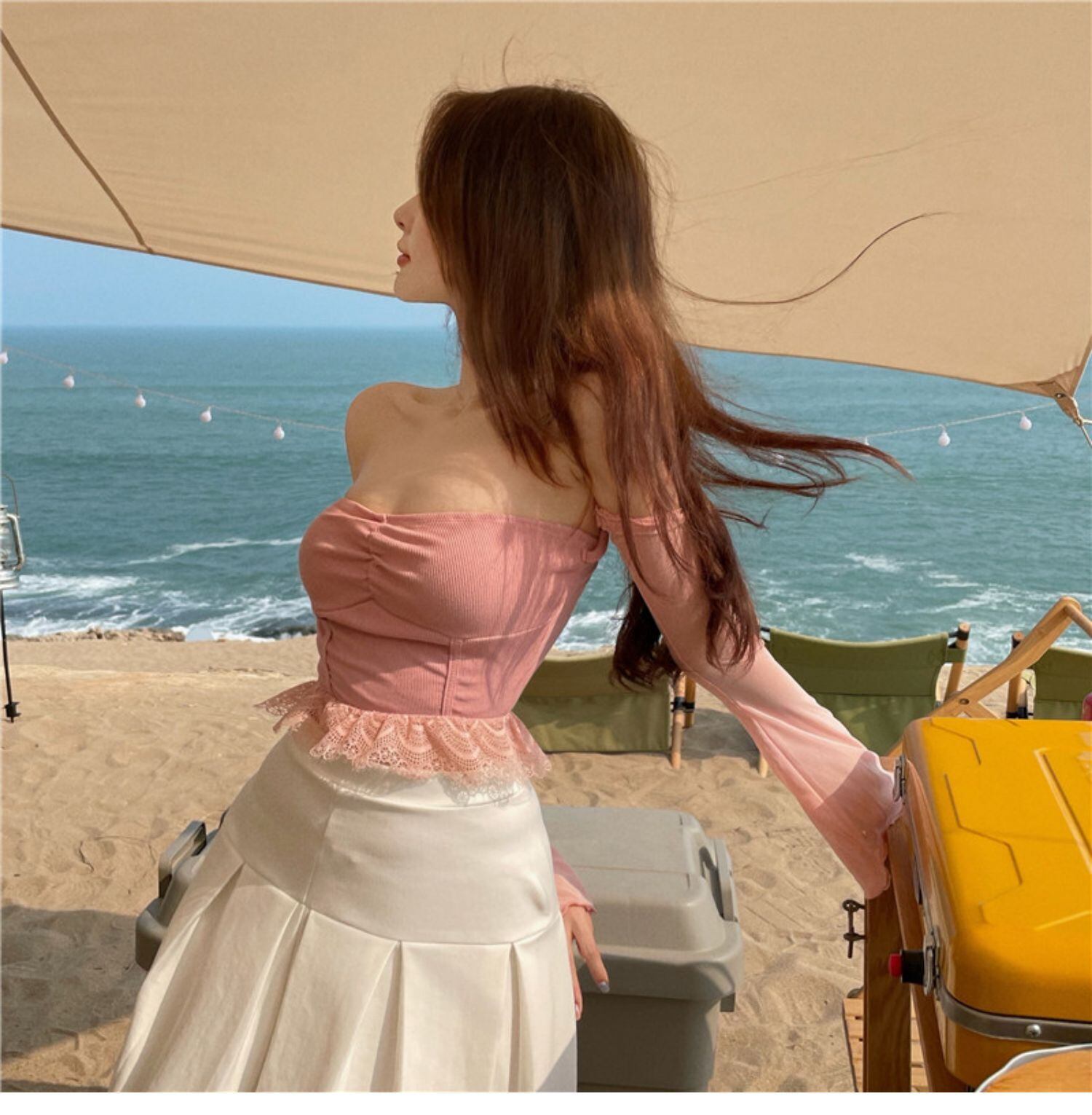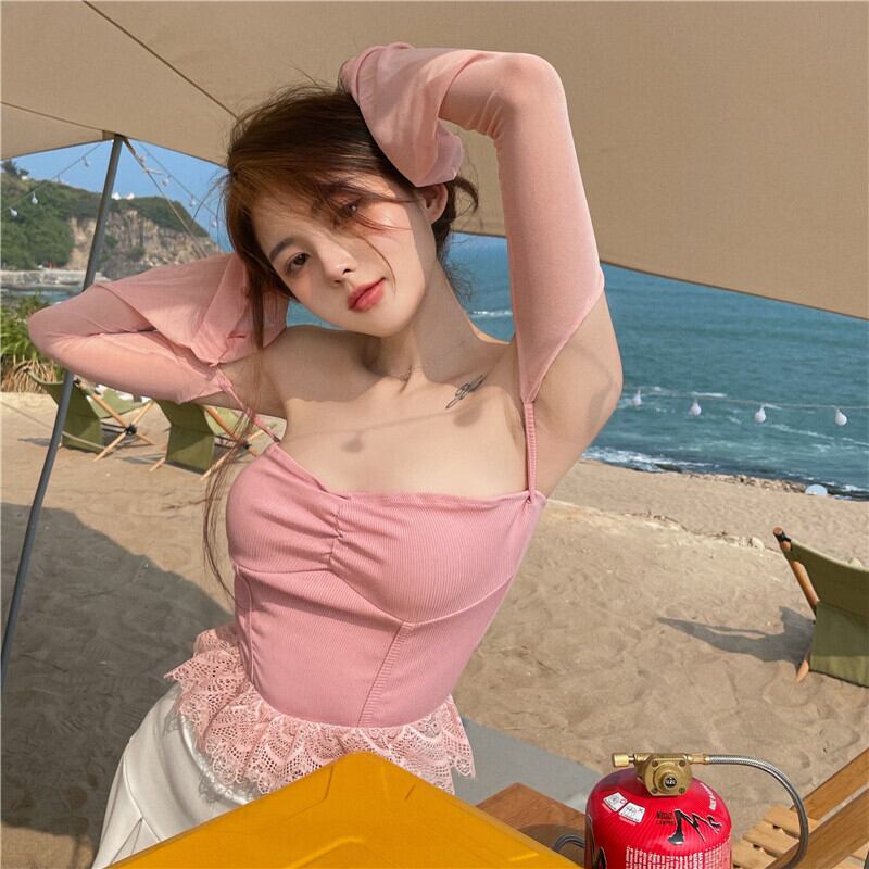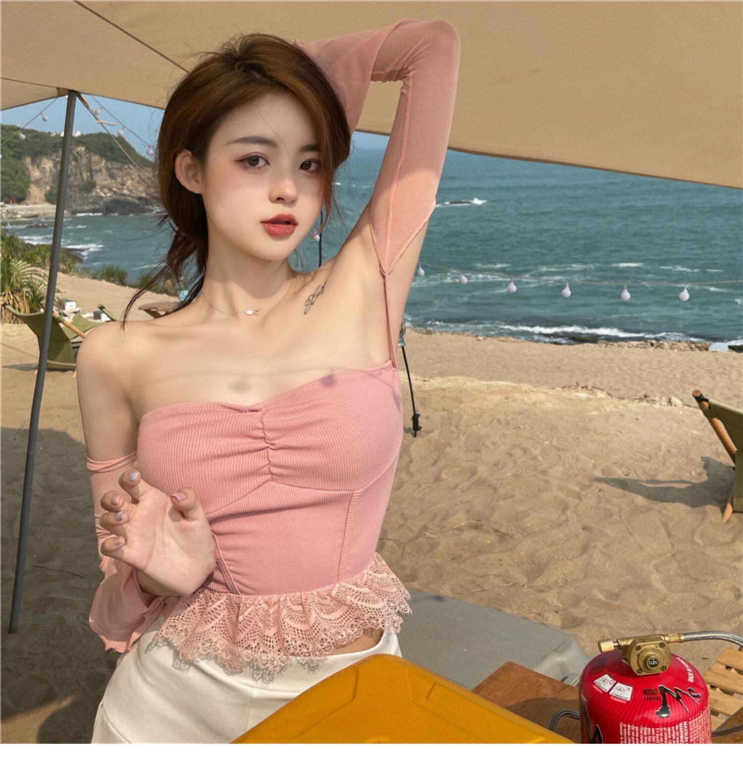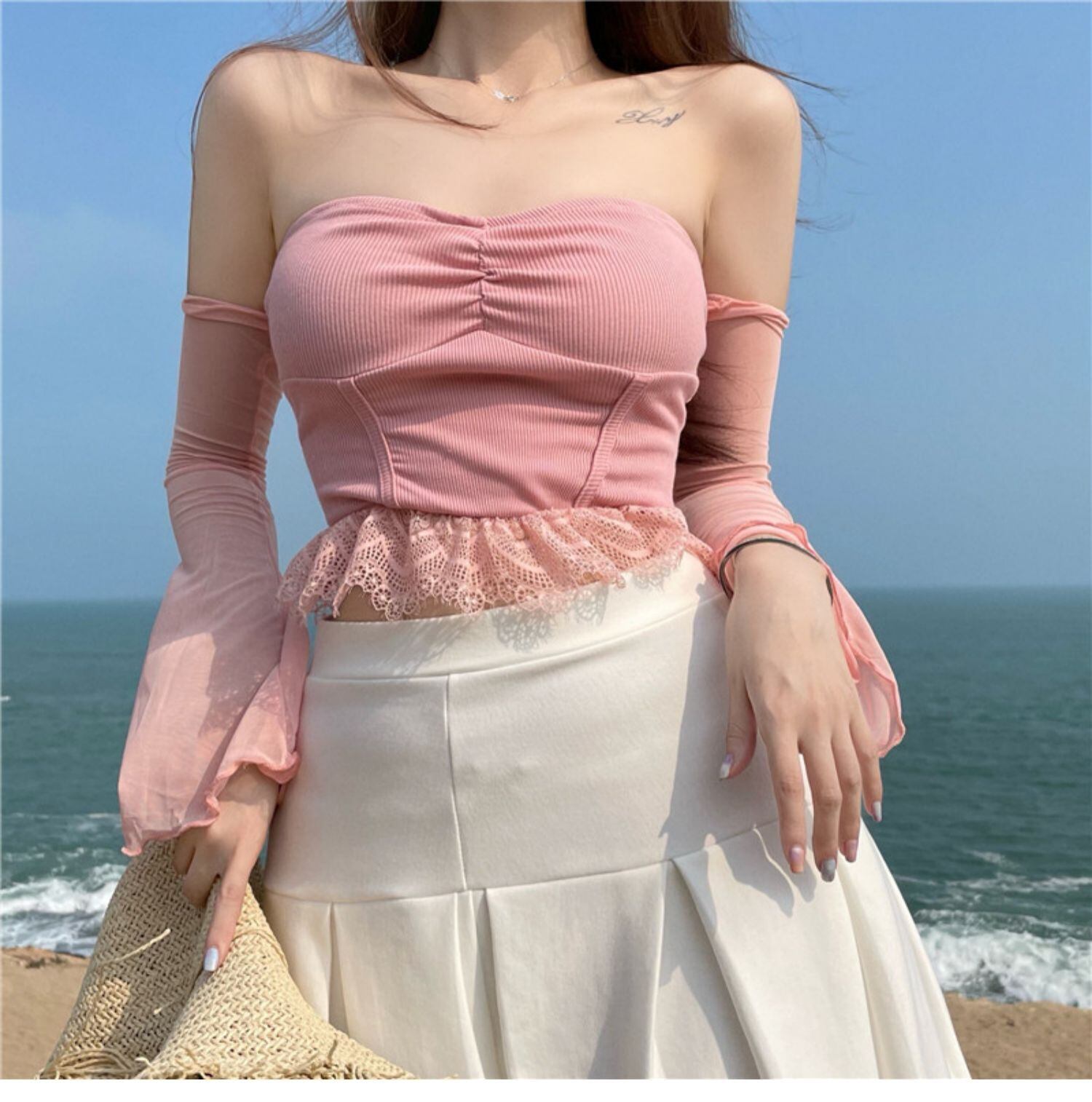 Tシャツ レースショートトップス サマー ロング 大人ガーリー スウィート キュート カジュアル 夏物 ドラファッションホール46442532254