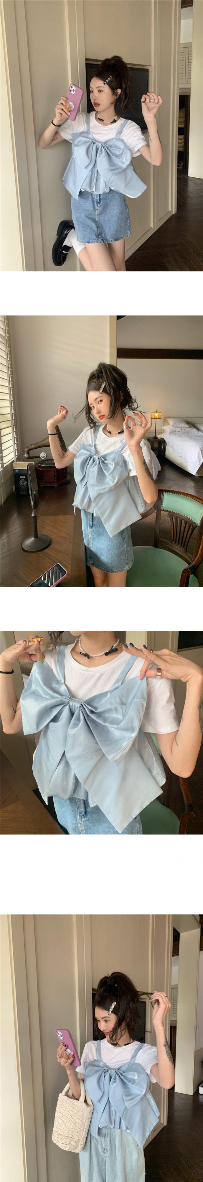 サマースタイルリボントップス ショートレディース 大人ガーリー スウィート キュート カジュアル 夏物 ピュア ドラファッションホール15213100776