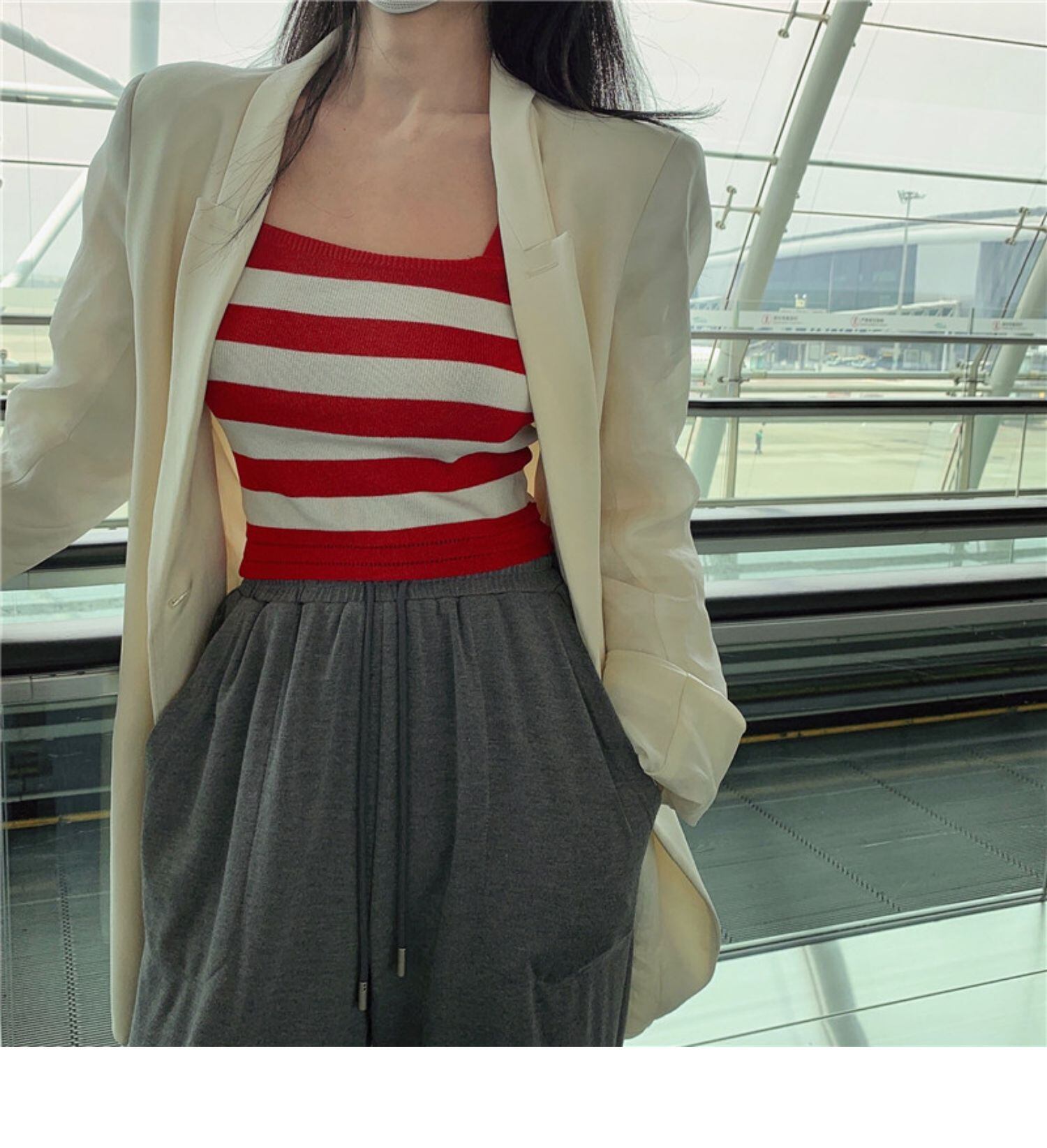 ニットショートノースリーブストライプTシャツ トップス バックレディースサマースタイル 夏物 ドラファッションホール30479374305