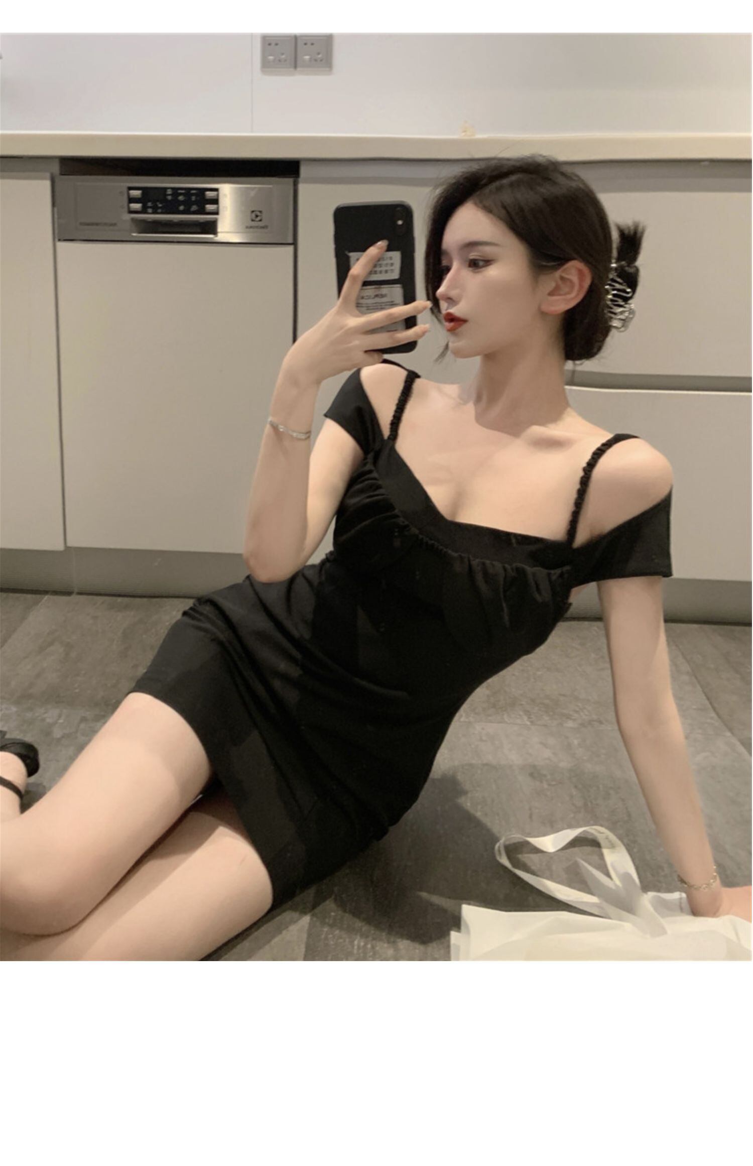 サマースタイルスタンダードブラックドレス スリム レトロ 夏物 ドラファッションホール82548032165