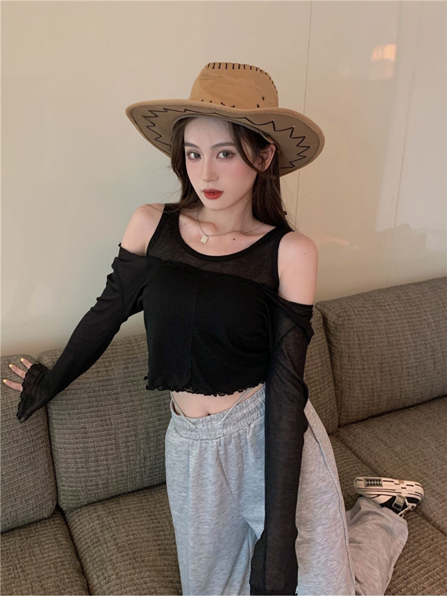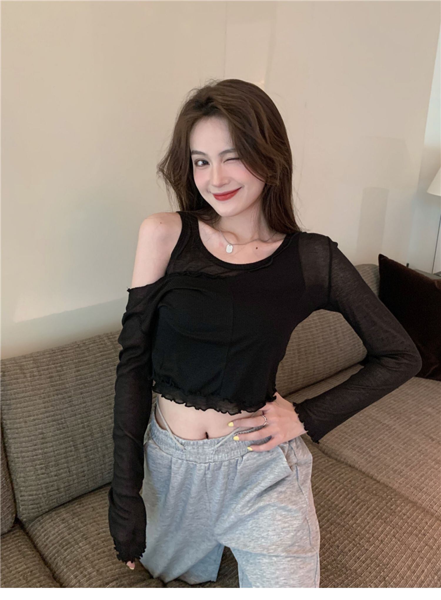 スリムブラックブラウス セット サマー ロング 夏物 ドラファッションホール4106324479