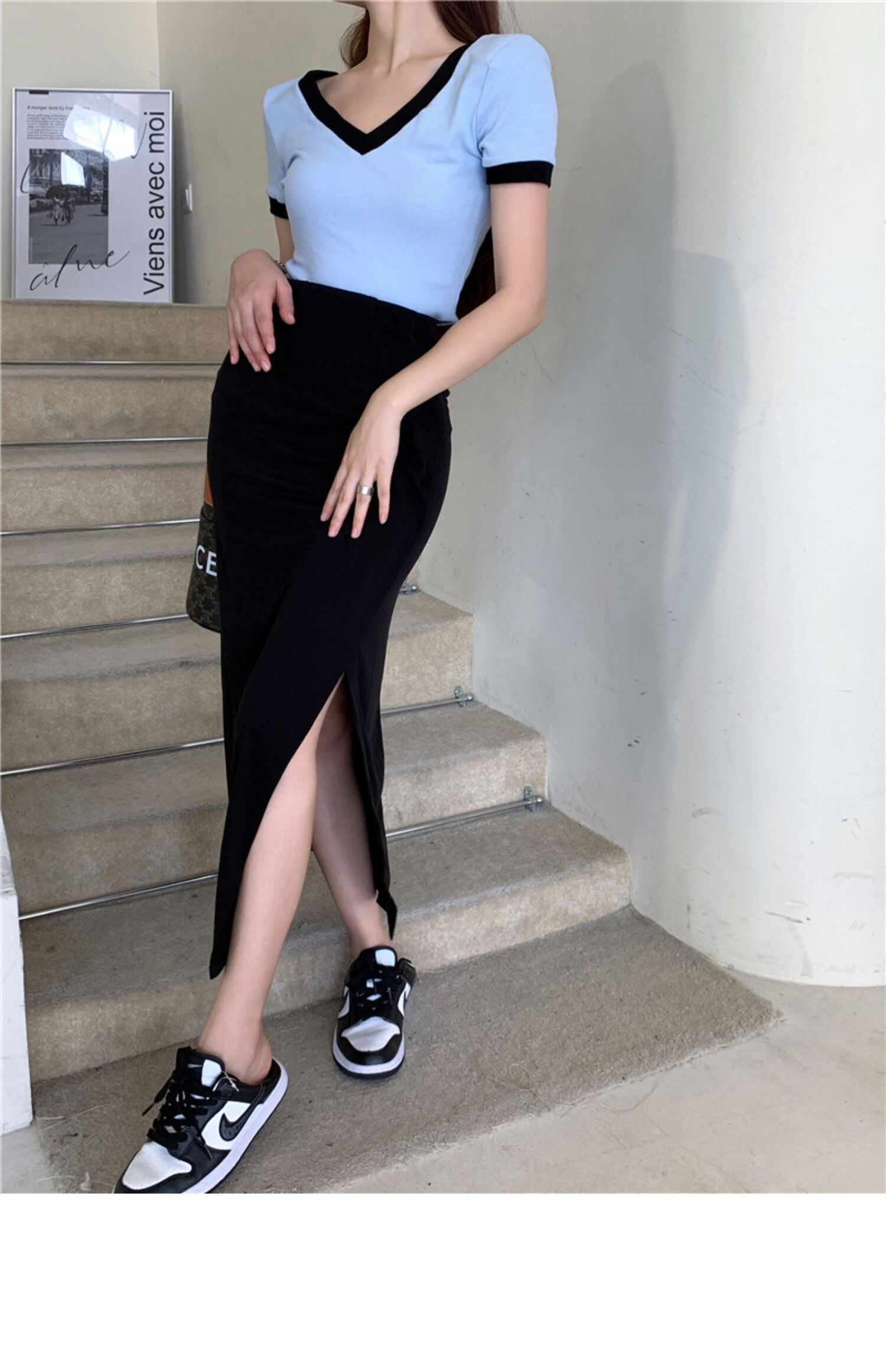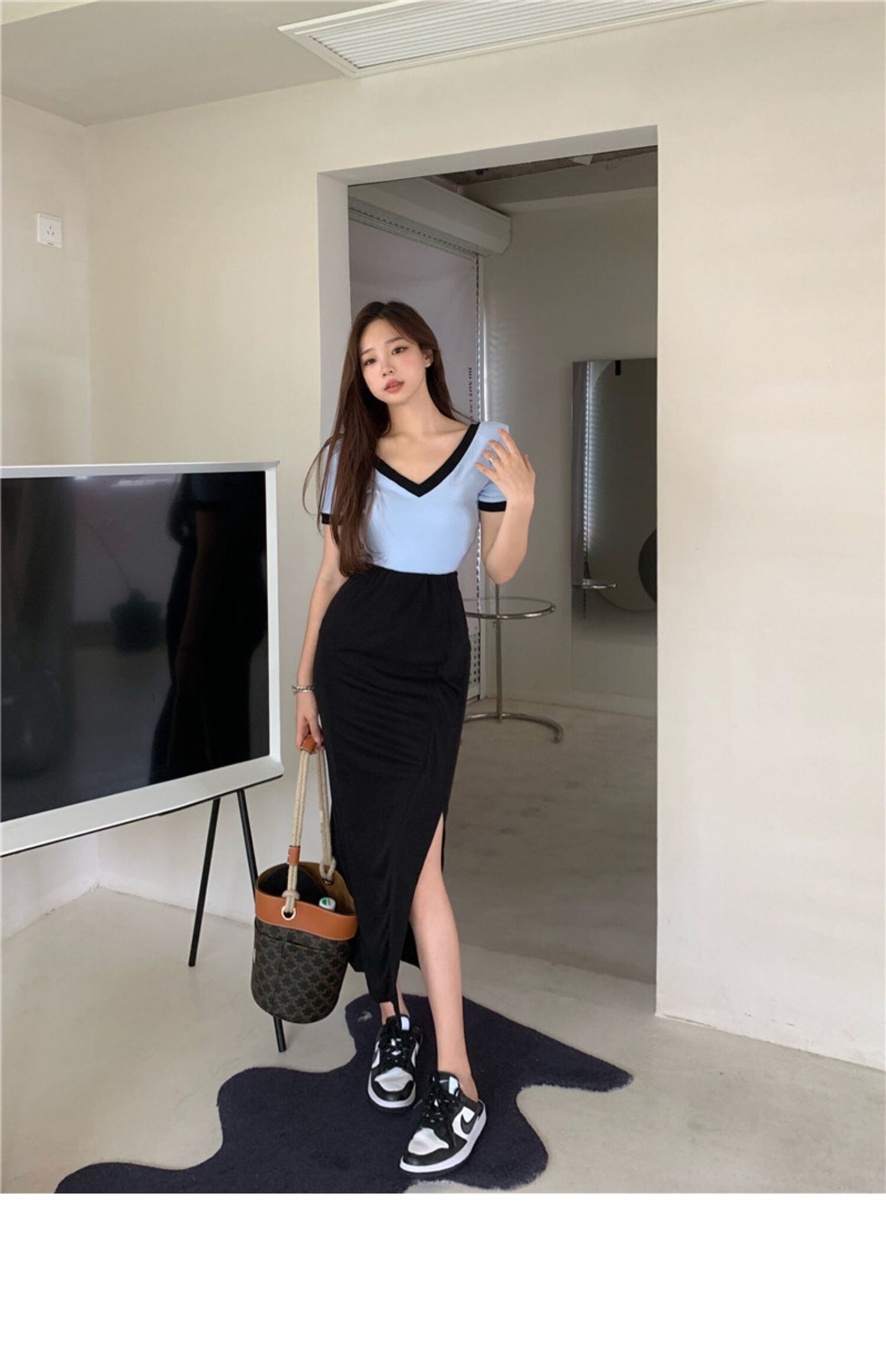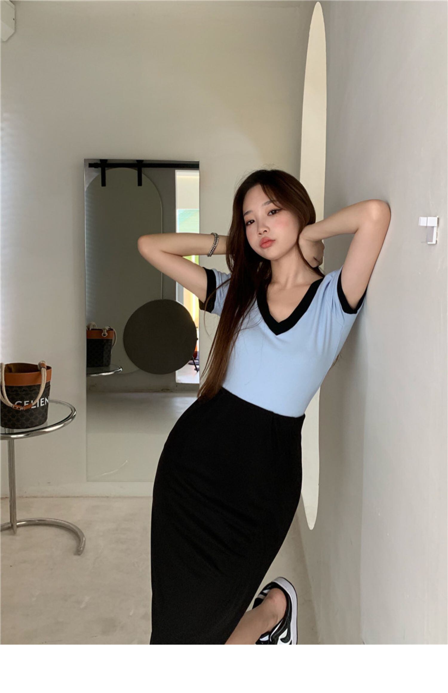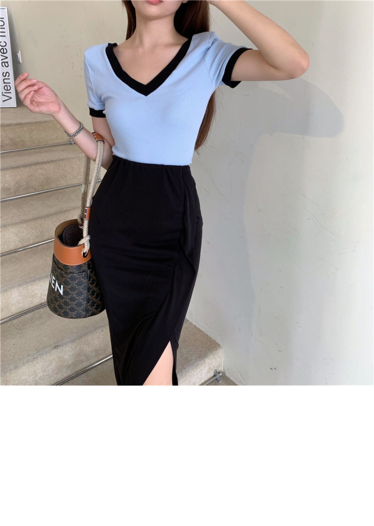 サマーVネックスリムTシャツ スカート ストリート 夏物 ドラファッションホール99790573952