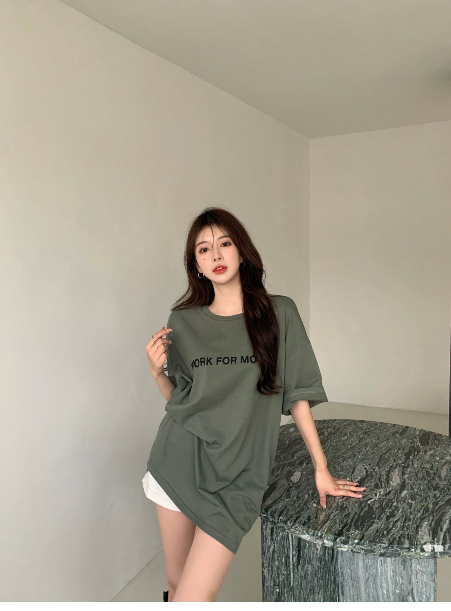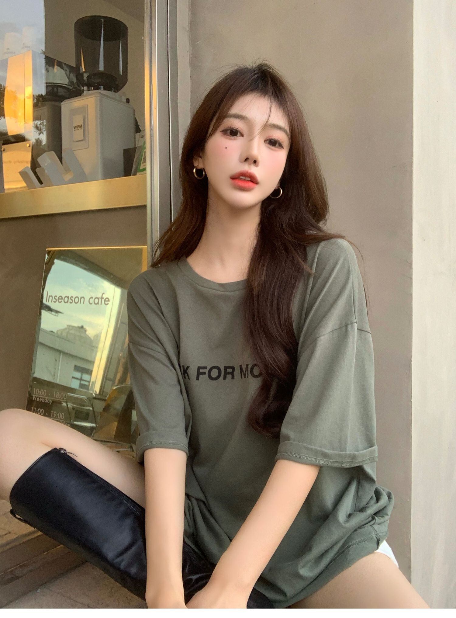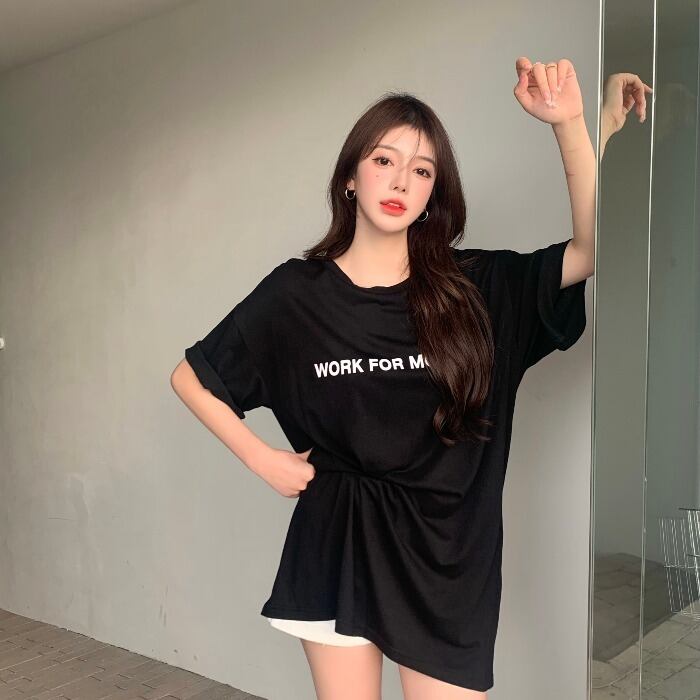 ルーズプリントスリーブカジュアルTシャツ ブラックトップス レディースサマー 夏物 ドラファッションホール57606949539