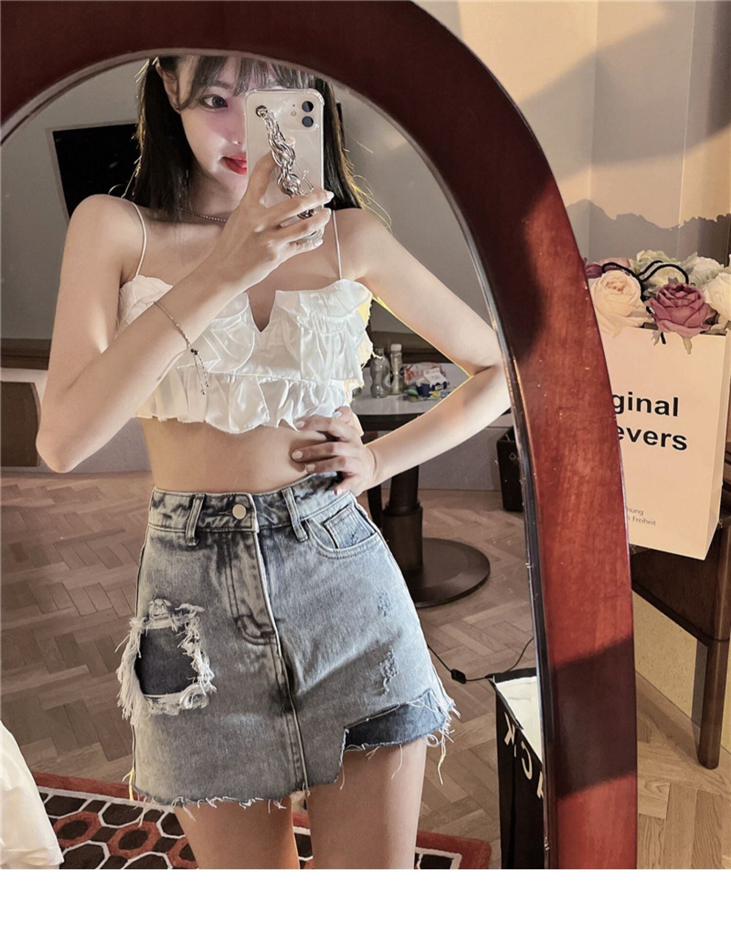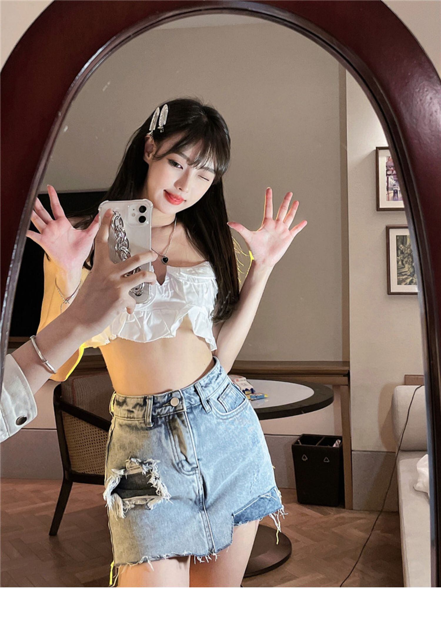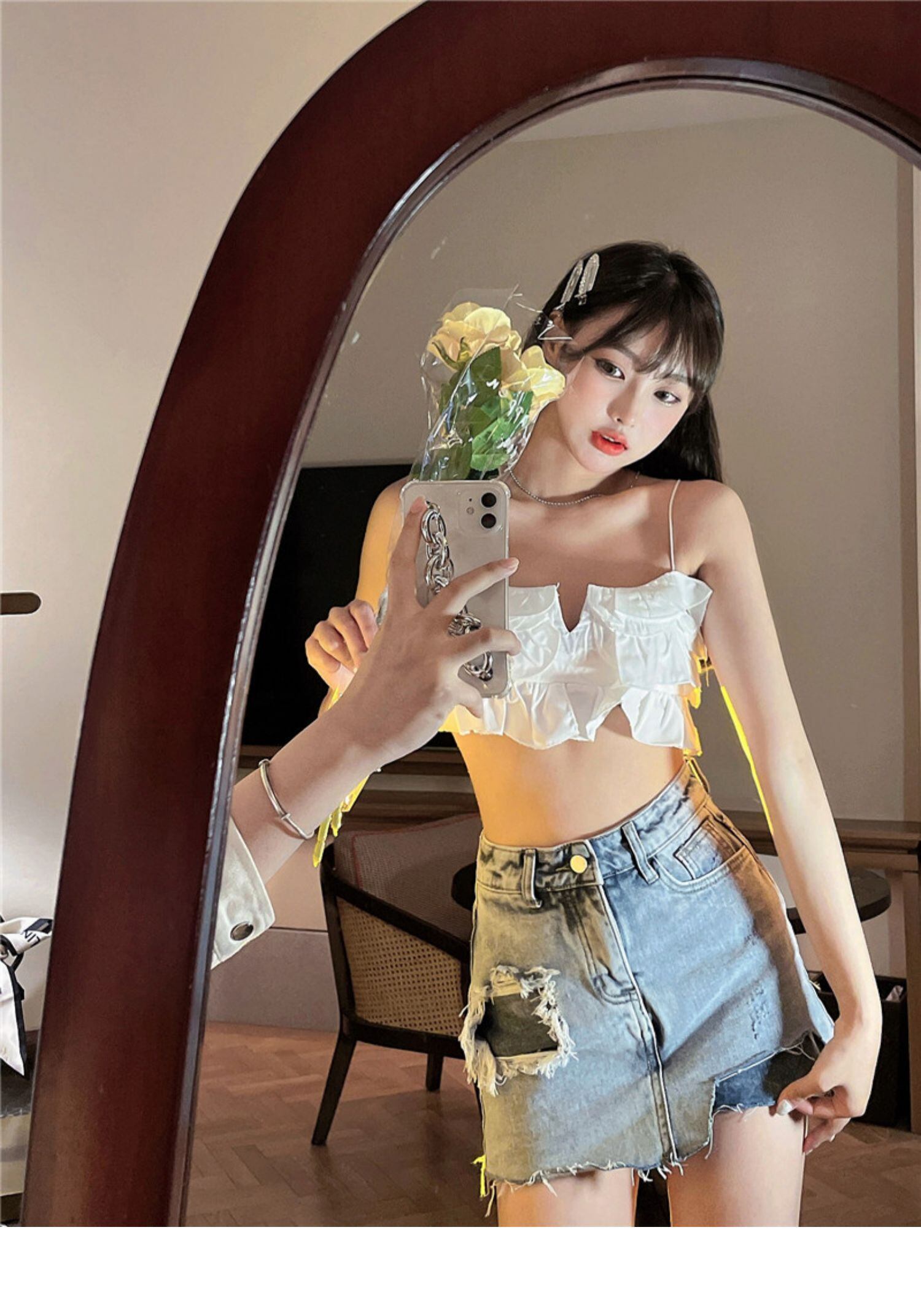 色:スリング,デニムスカート