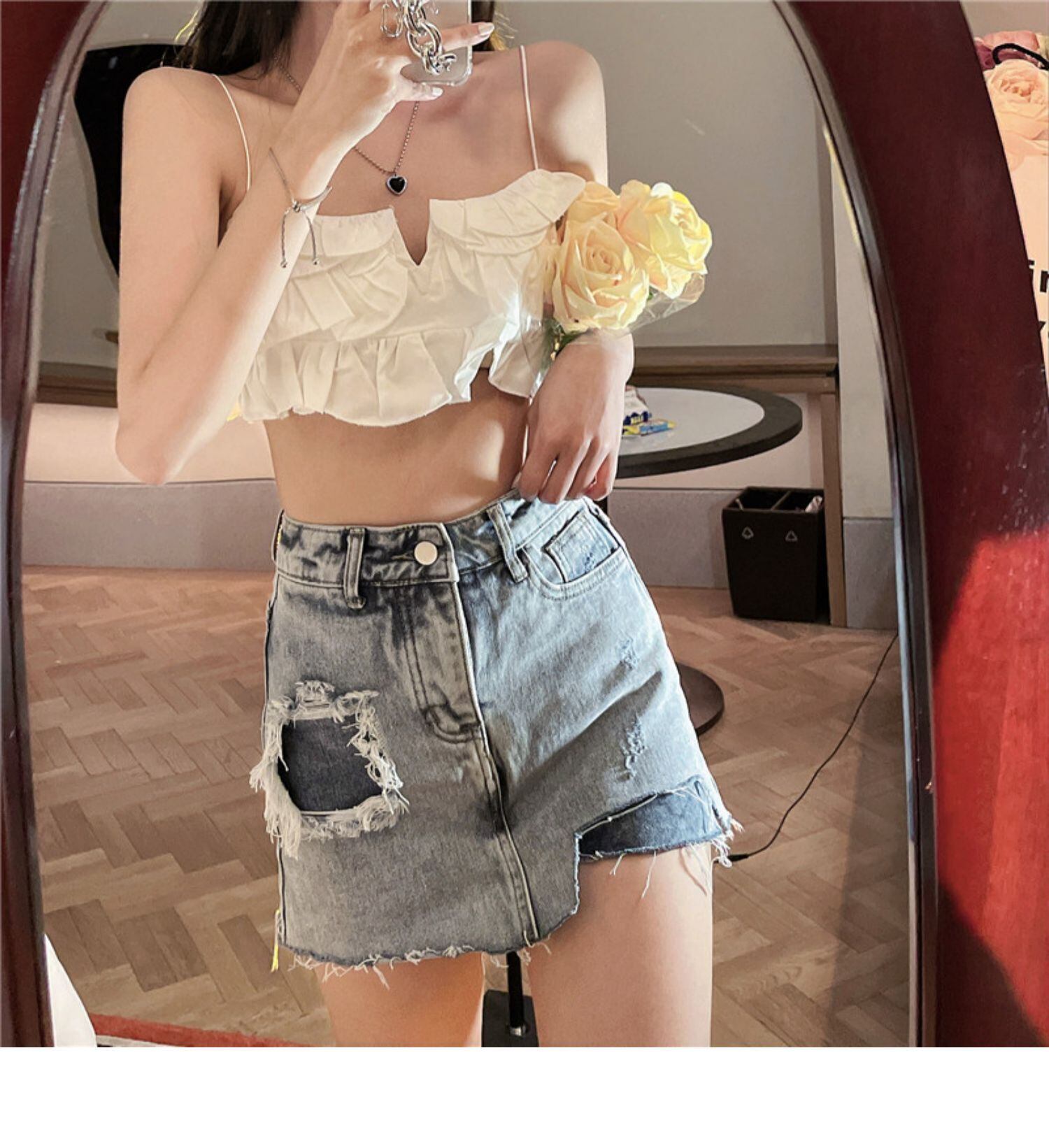 ブラウス ハイウェストウェストスカート サマー ストリート 夏物 ドラファッションホール24614758474