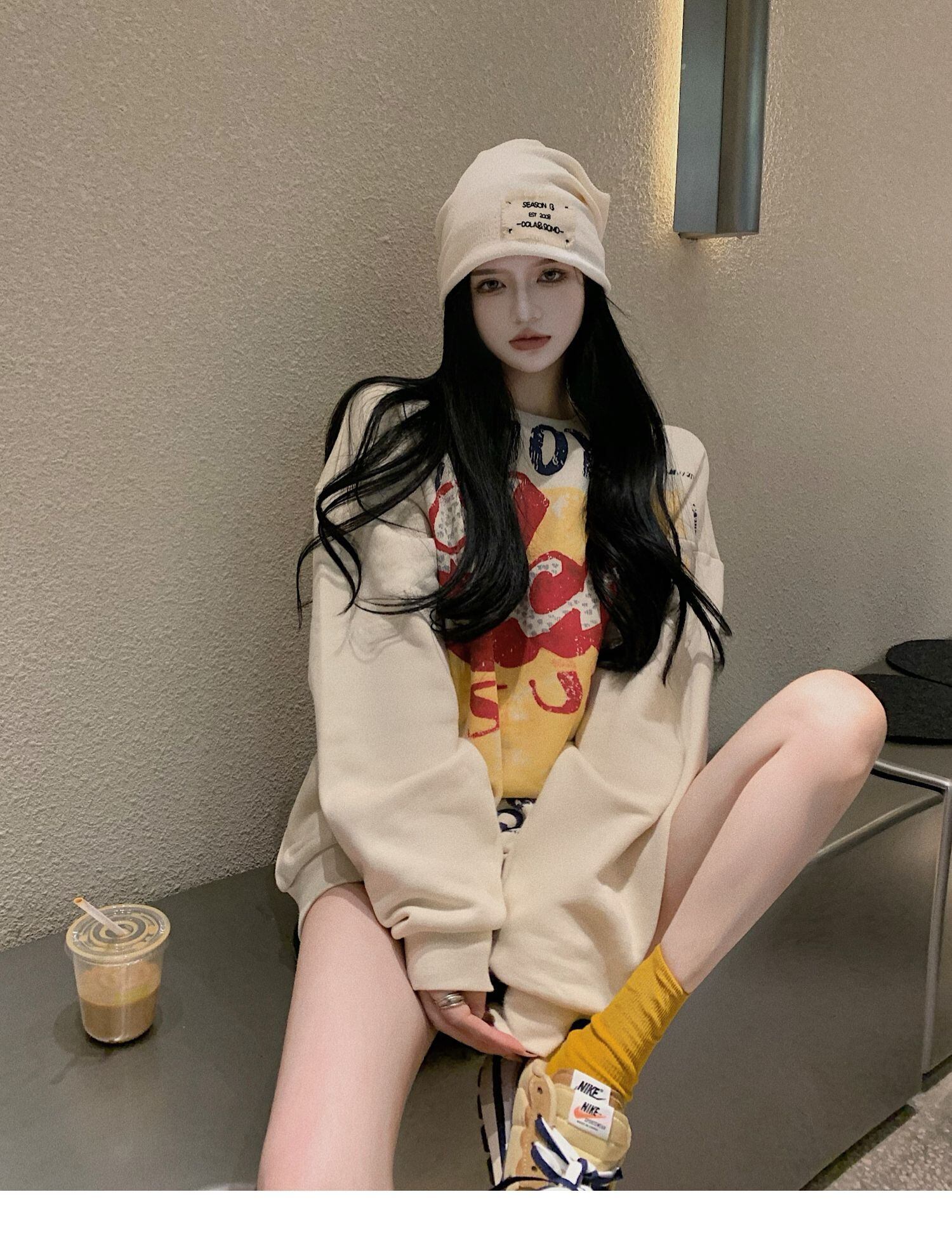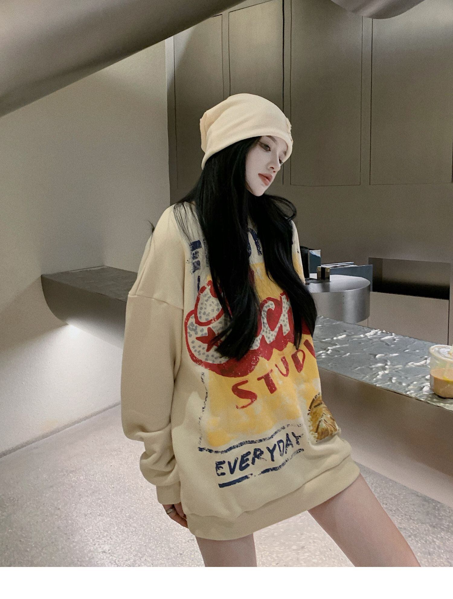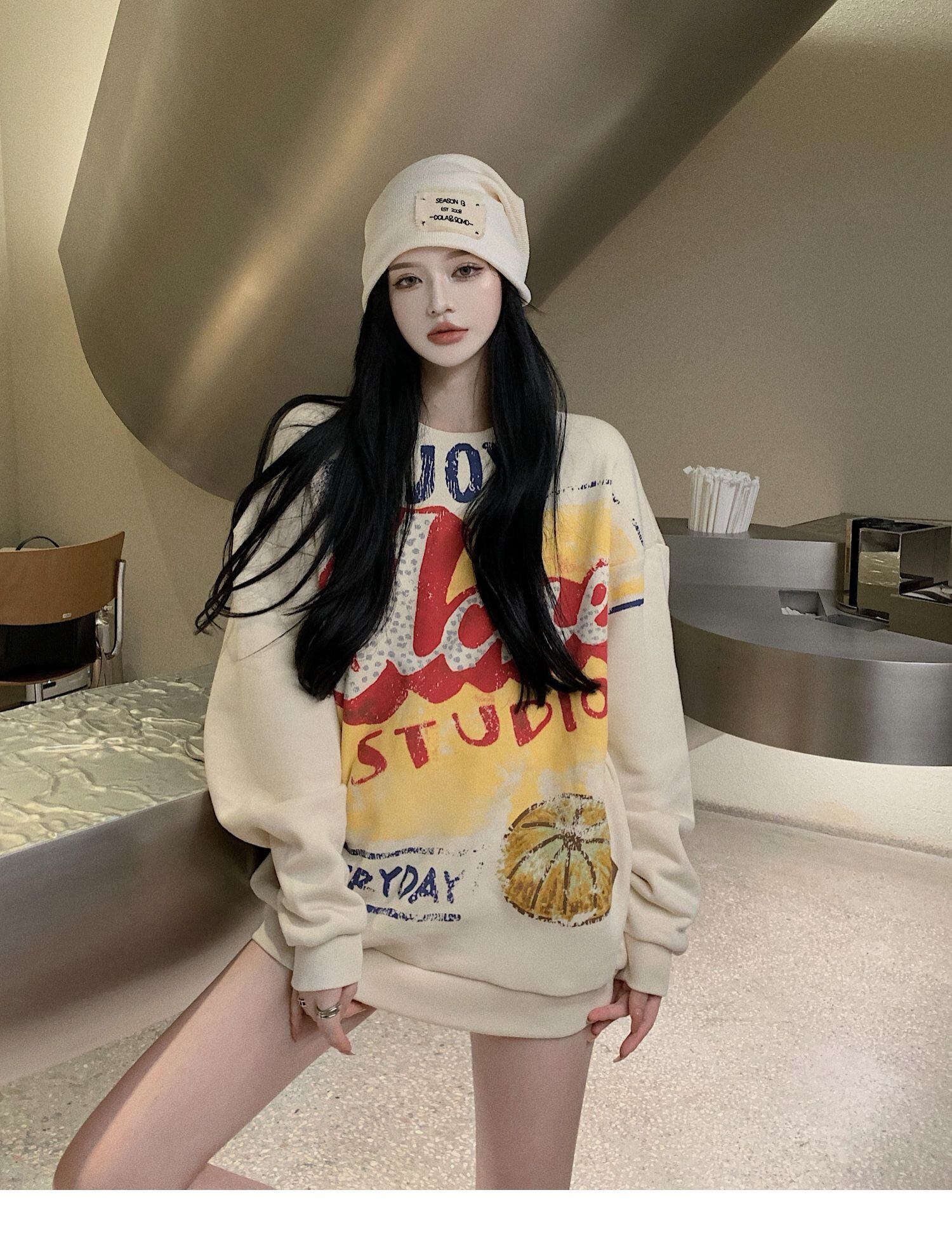 オータムルーズラウンドネックプリントセーター シャツ ロング 秋物 Oネック ドラファッションホール38490752874