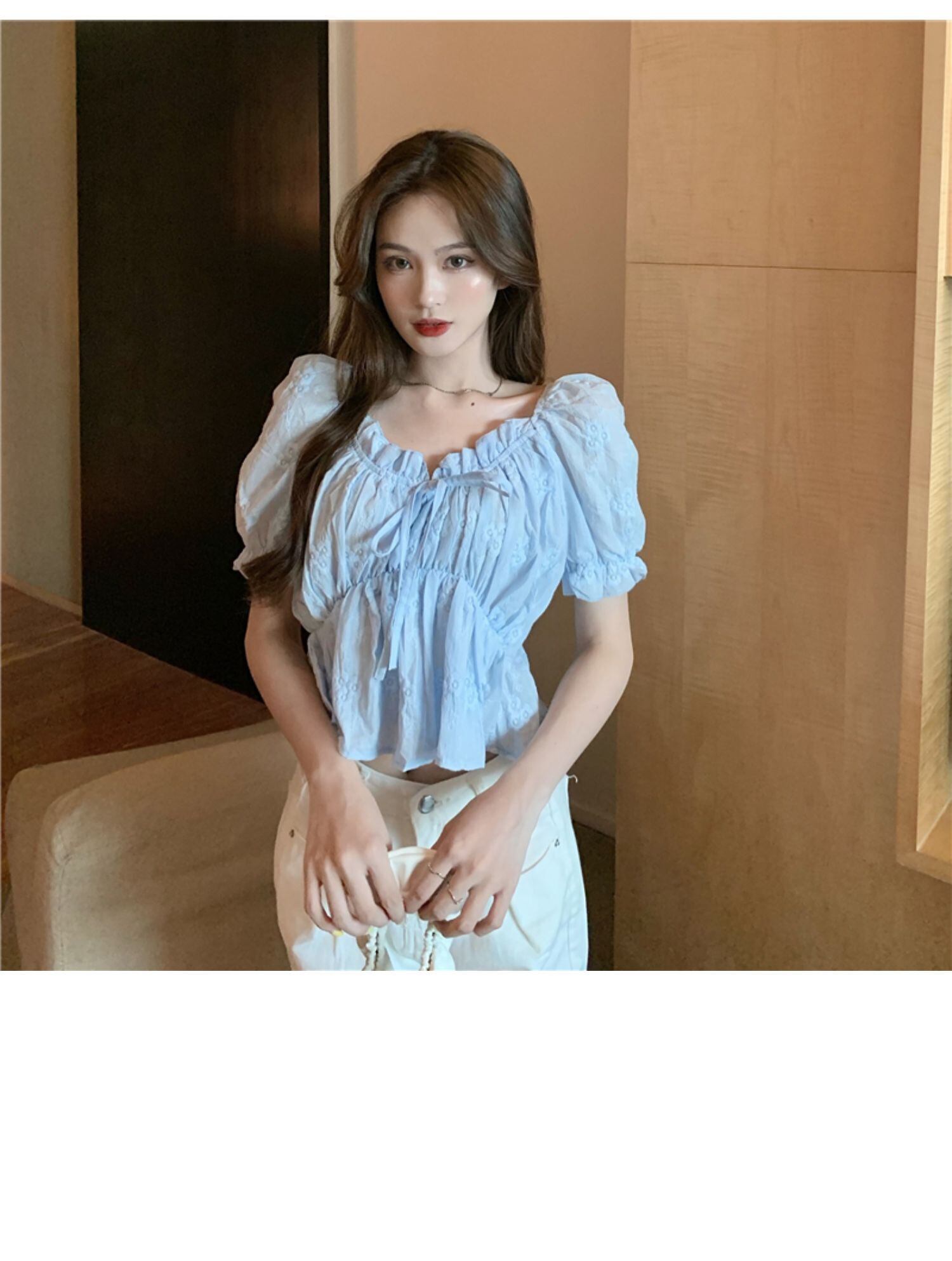 サマースタイルスタンダードショートトップス ハイウェストシャツ レディース レトロ レース 大人ガーリー スウィート キュート カジュアル 夏物 レースアップ ドラファッションホール2300988773
