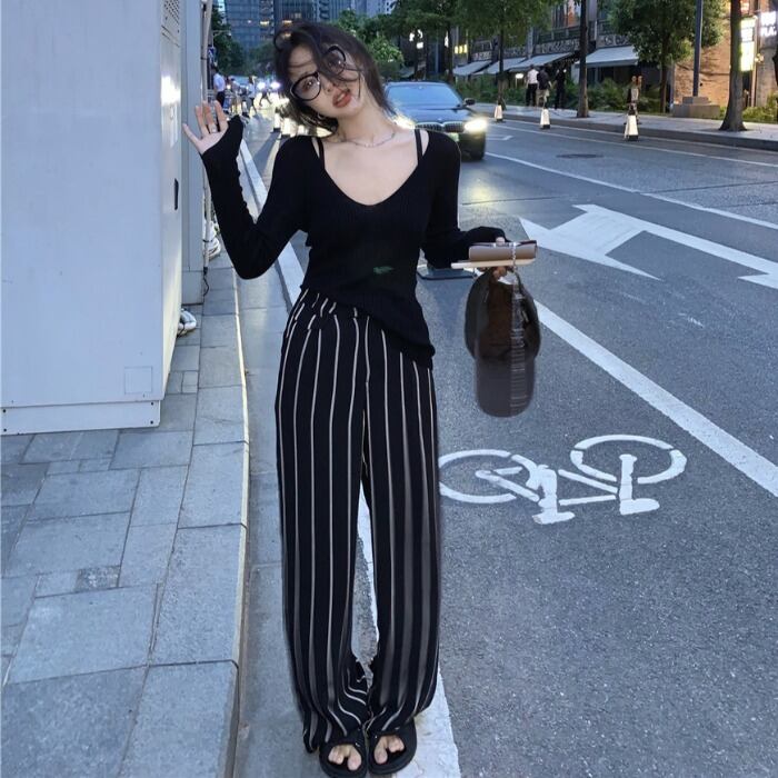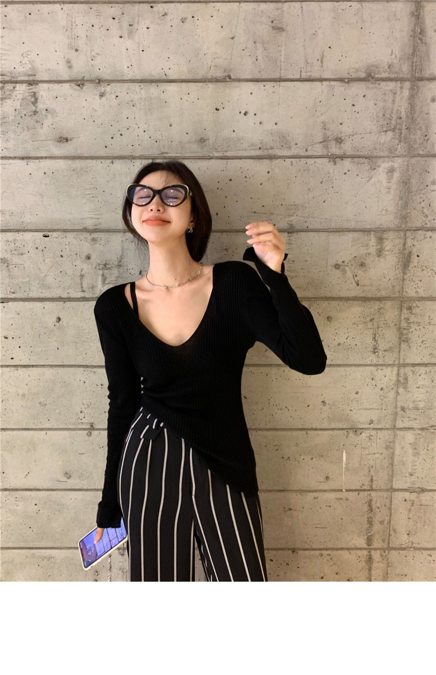 オータムスリムニットセーター ハイウェストウェストストライプカジュアルレディース 秋物 ドラファッションホール46008357406