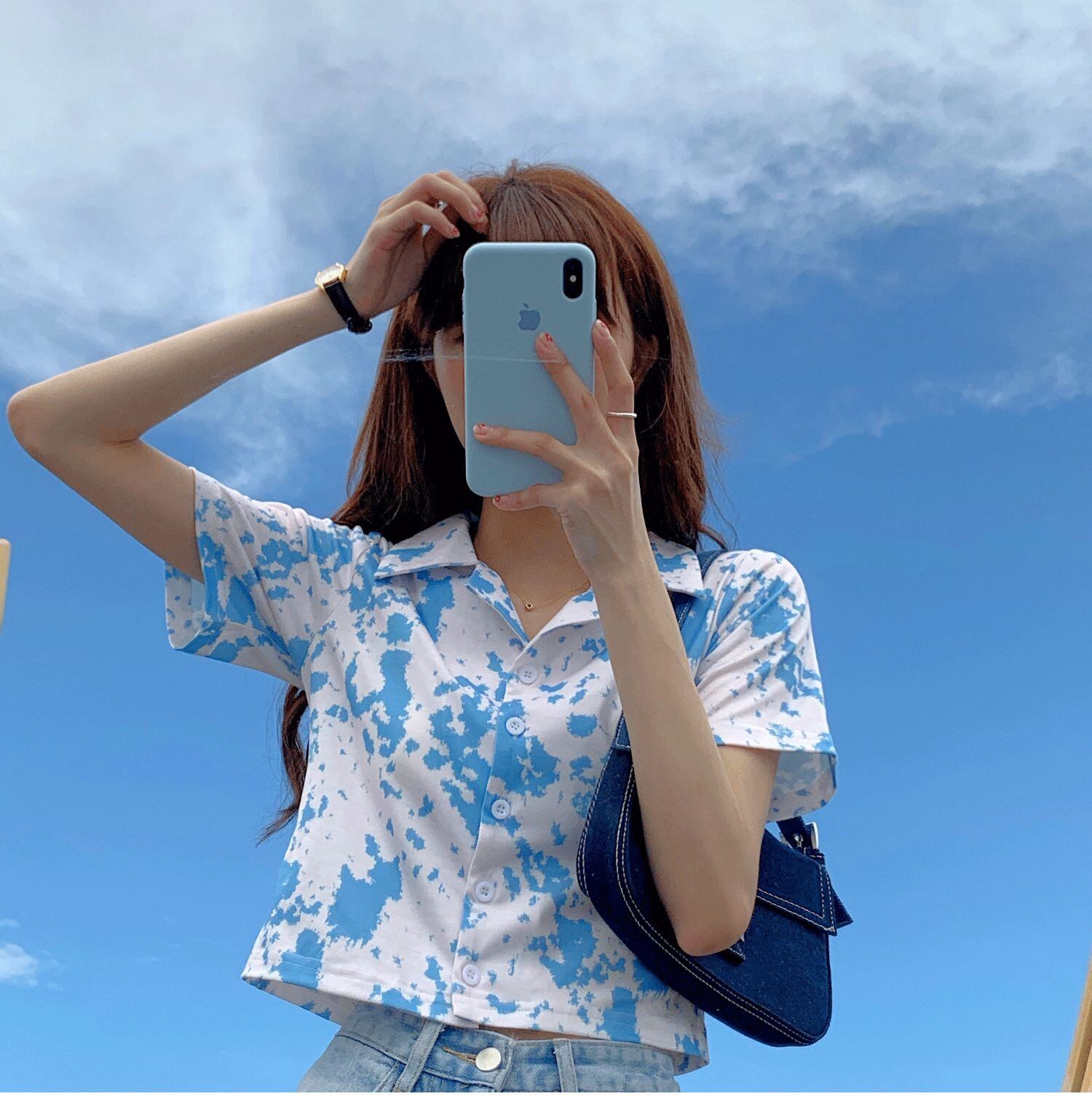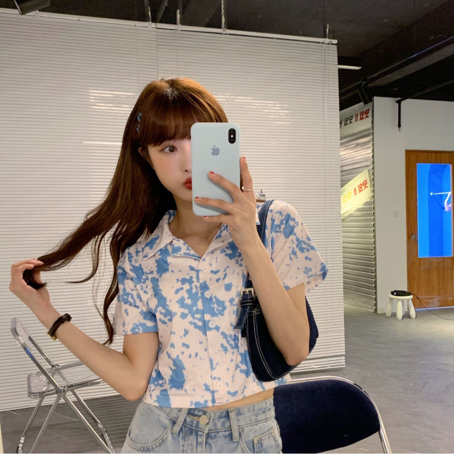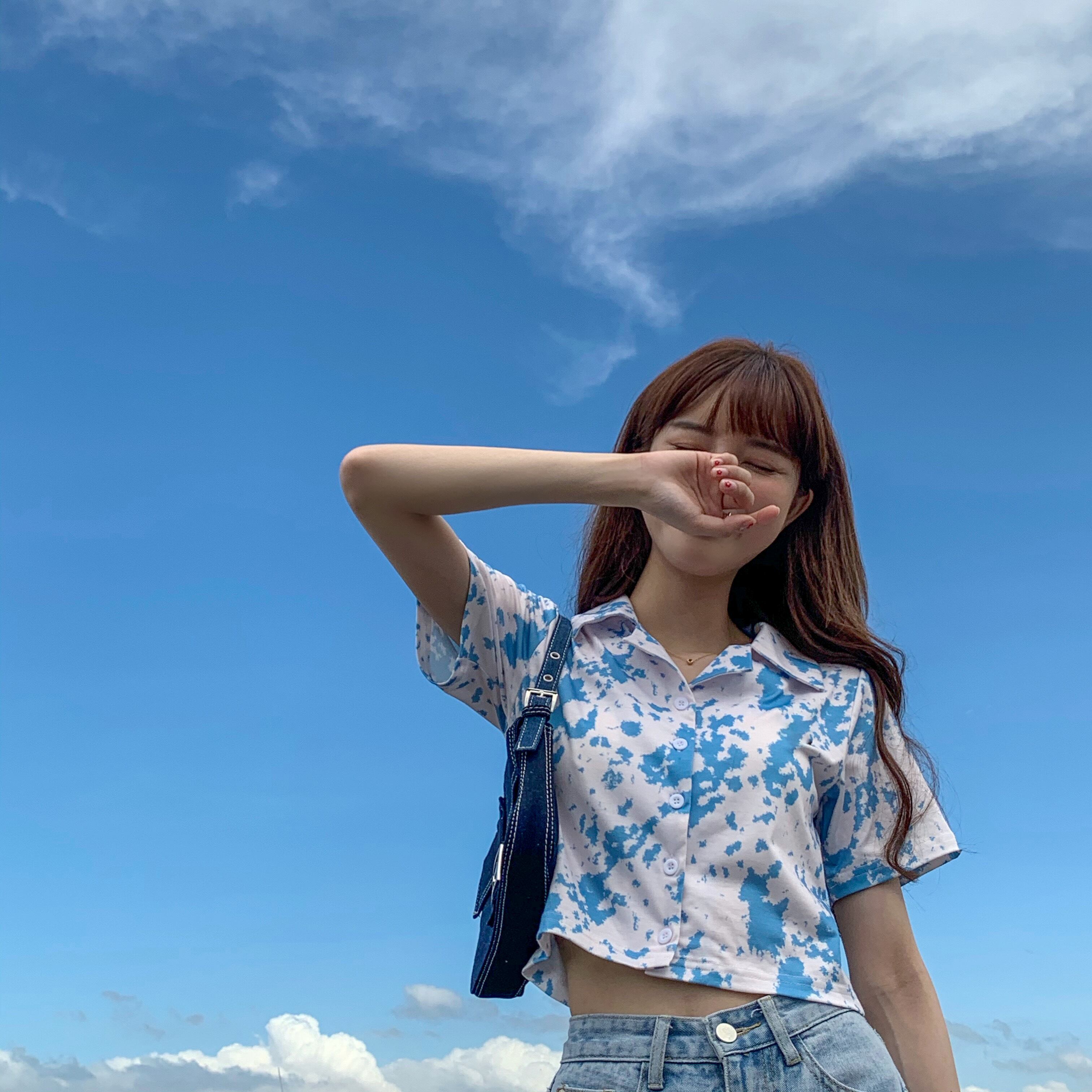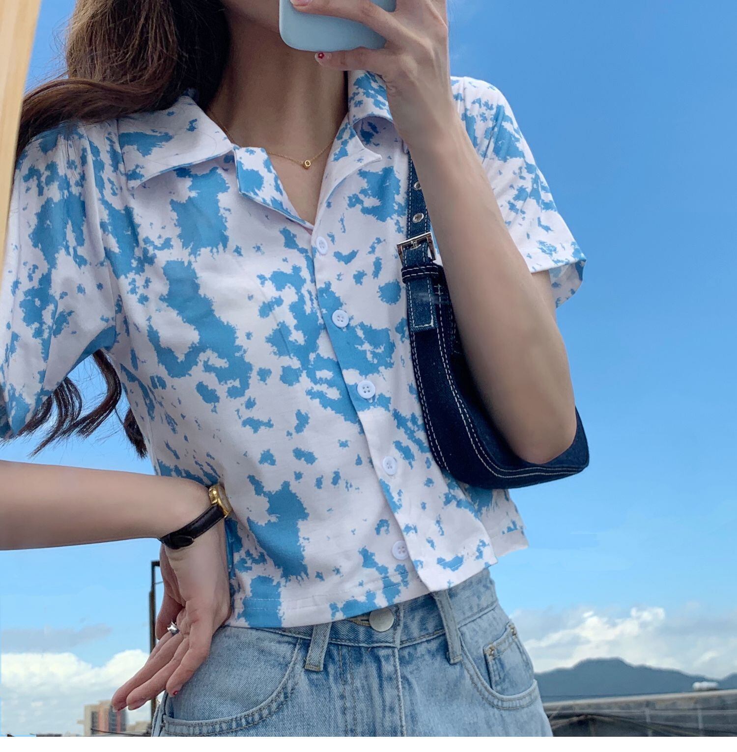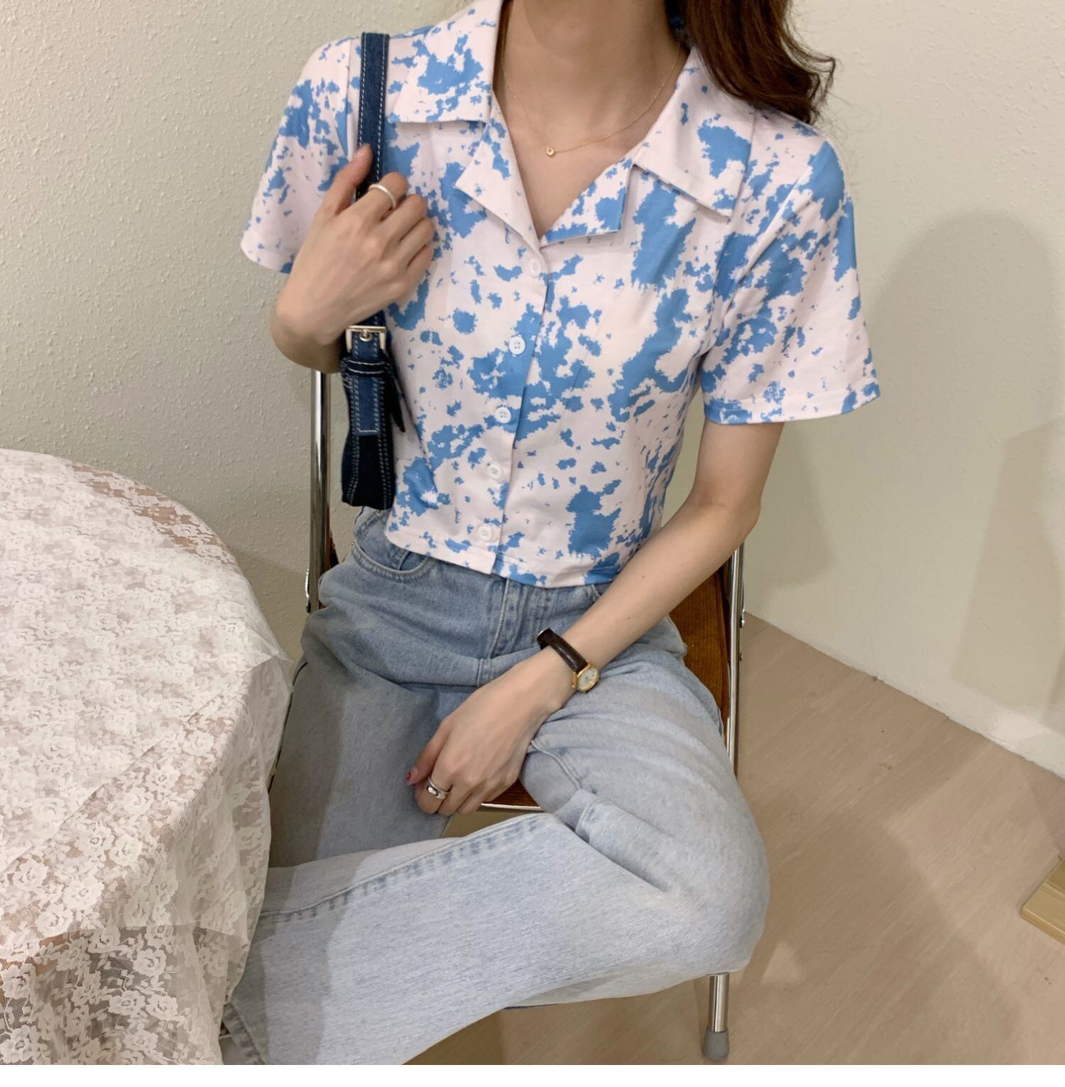 レッドブルーホワイトショートシャツ カラーソリッド サマー薄手 夏物 ソリッドカラー ドラファッションホール54989037227