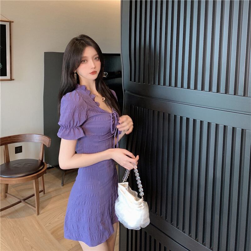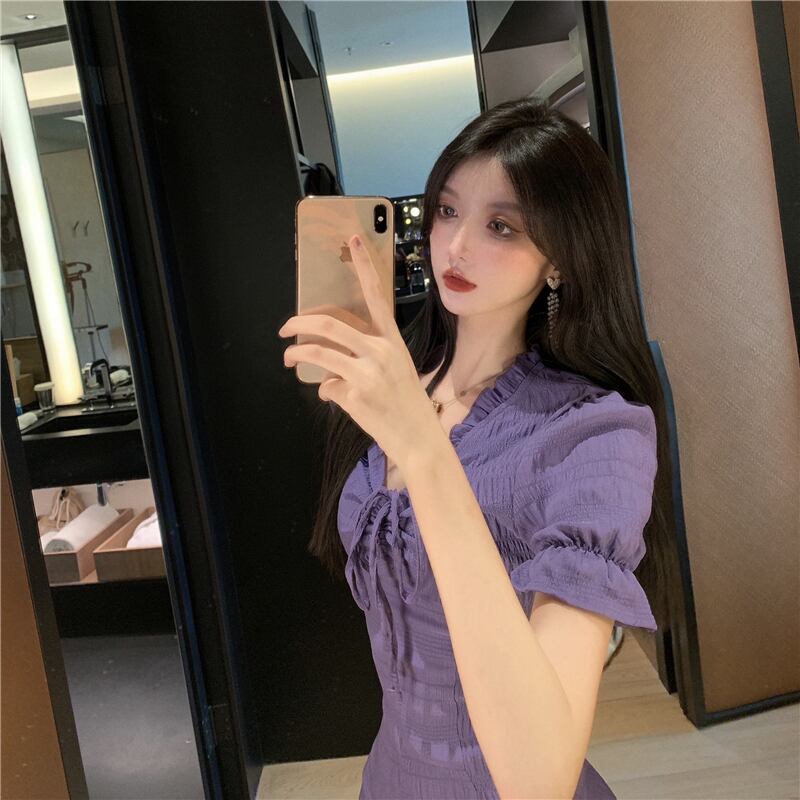 スタイルスタンダードウェストドレス サマー レトロ 夏物 パープル ドラファッションホール32889888756