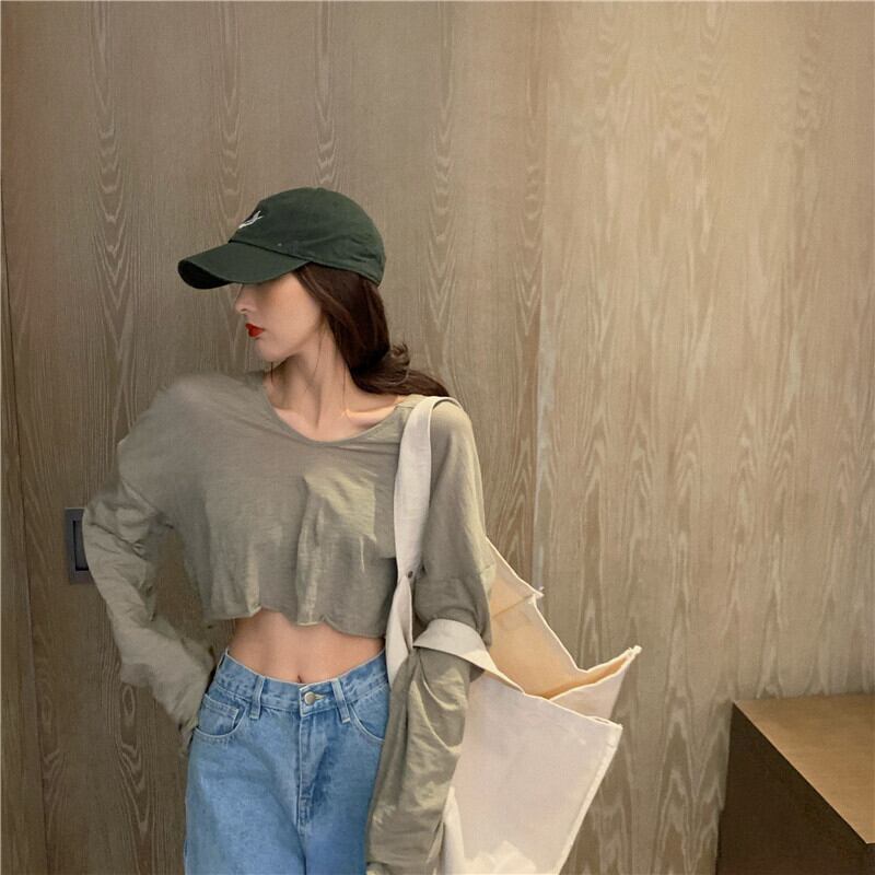 ショートTシャツ スプリングオータムルーズレッドトップス 薄手 ロング 春物 秋物 ドラファッションホール17476037071