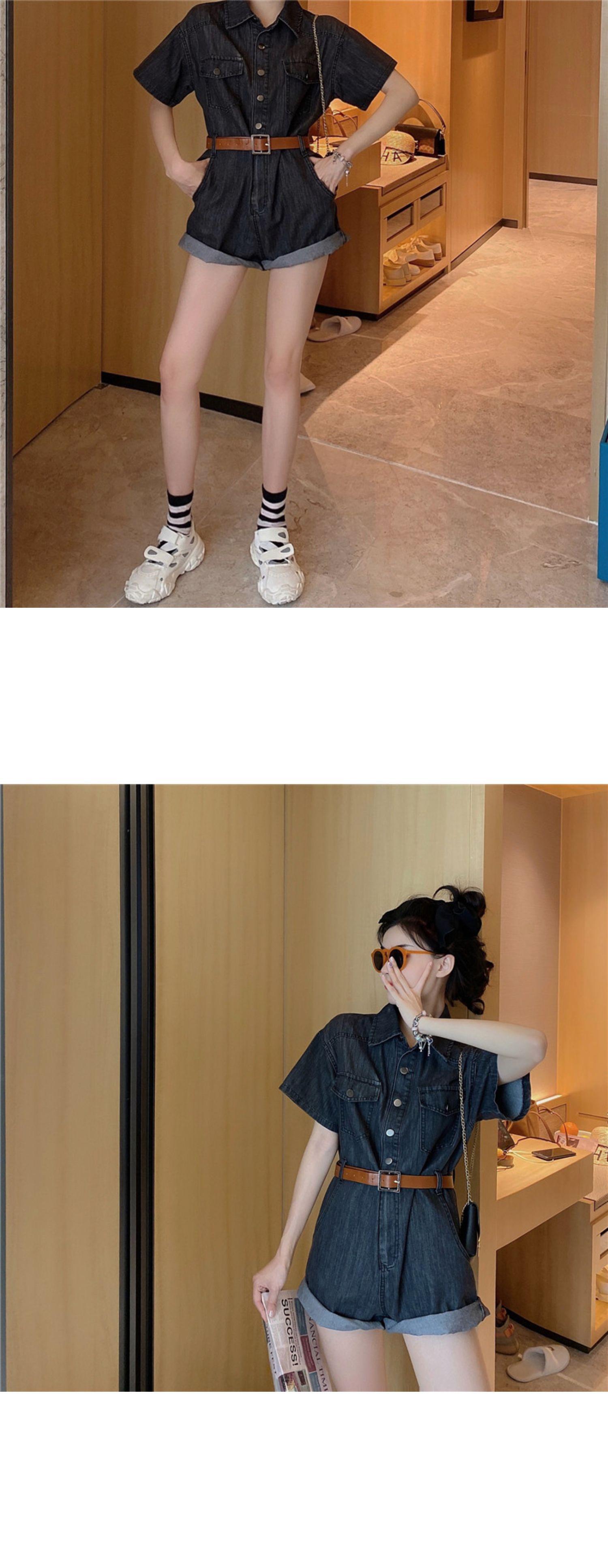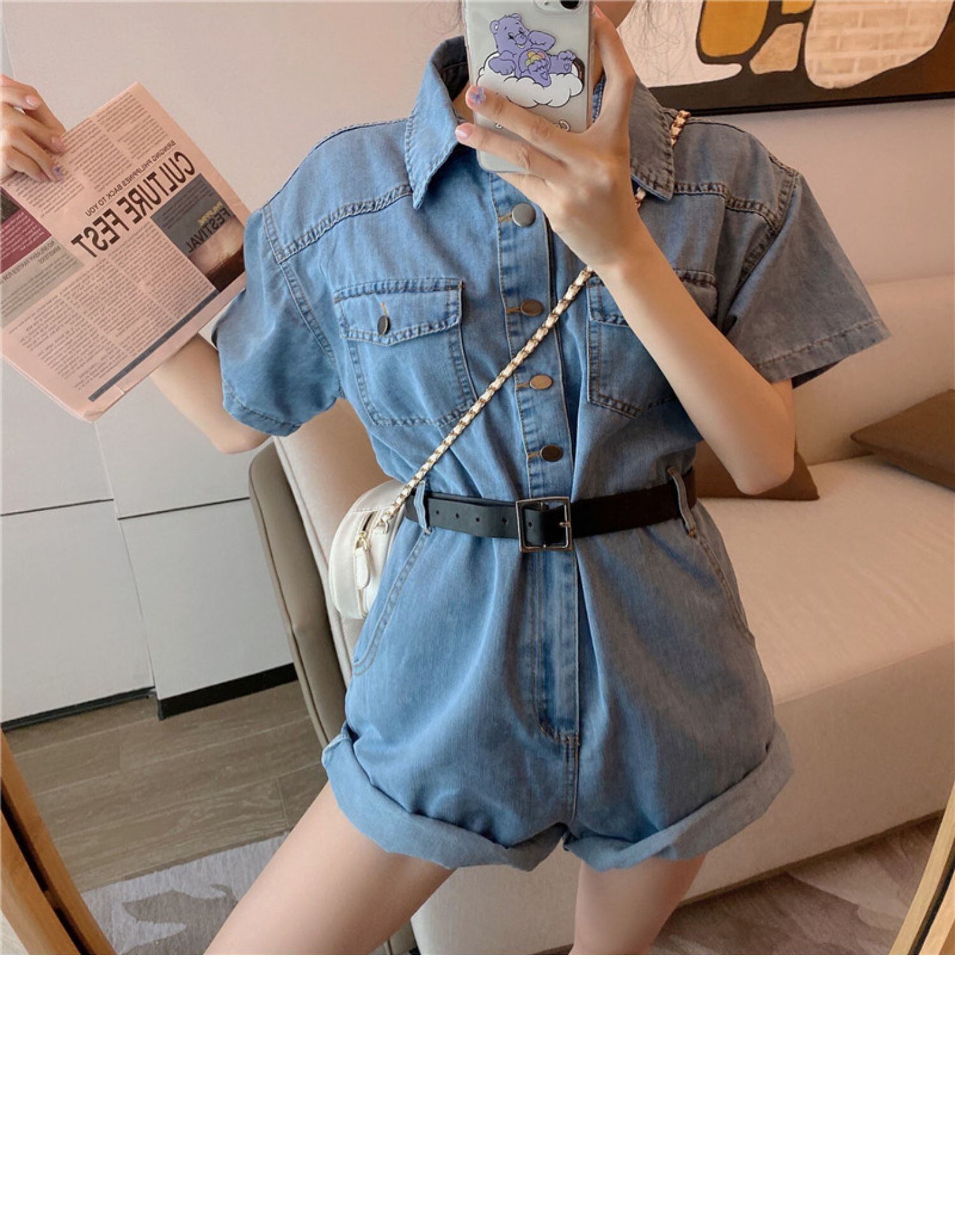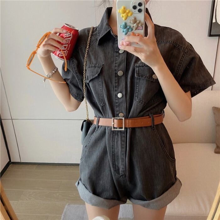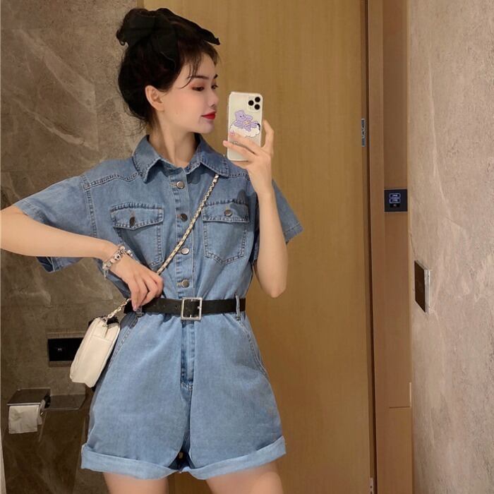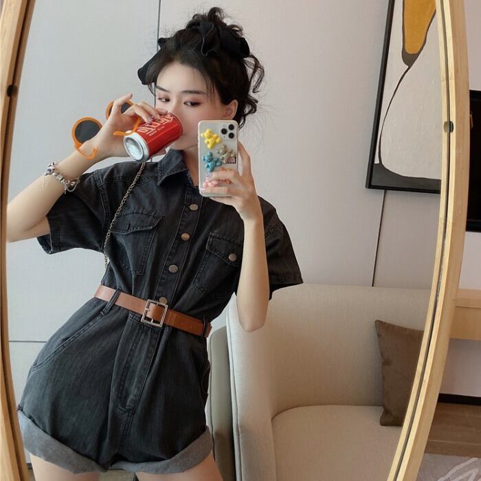サマースタイルスタンダードショーツ ルーズカジュアルジャンプスーツ オールインワン ベルト レディース レトロ 夏物 ハーネス ブルマー ドラファッションホール17285456565