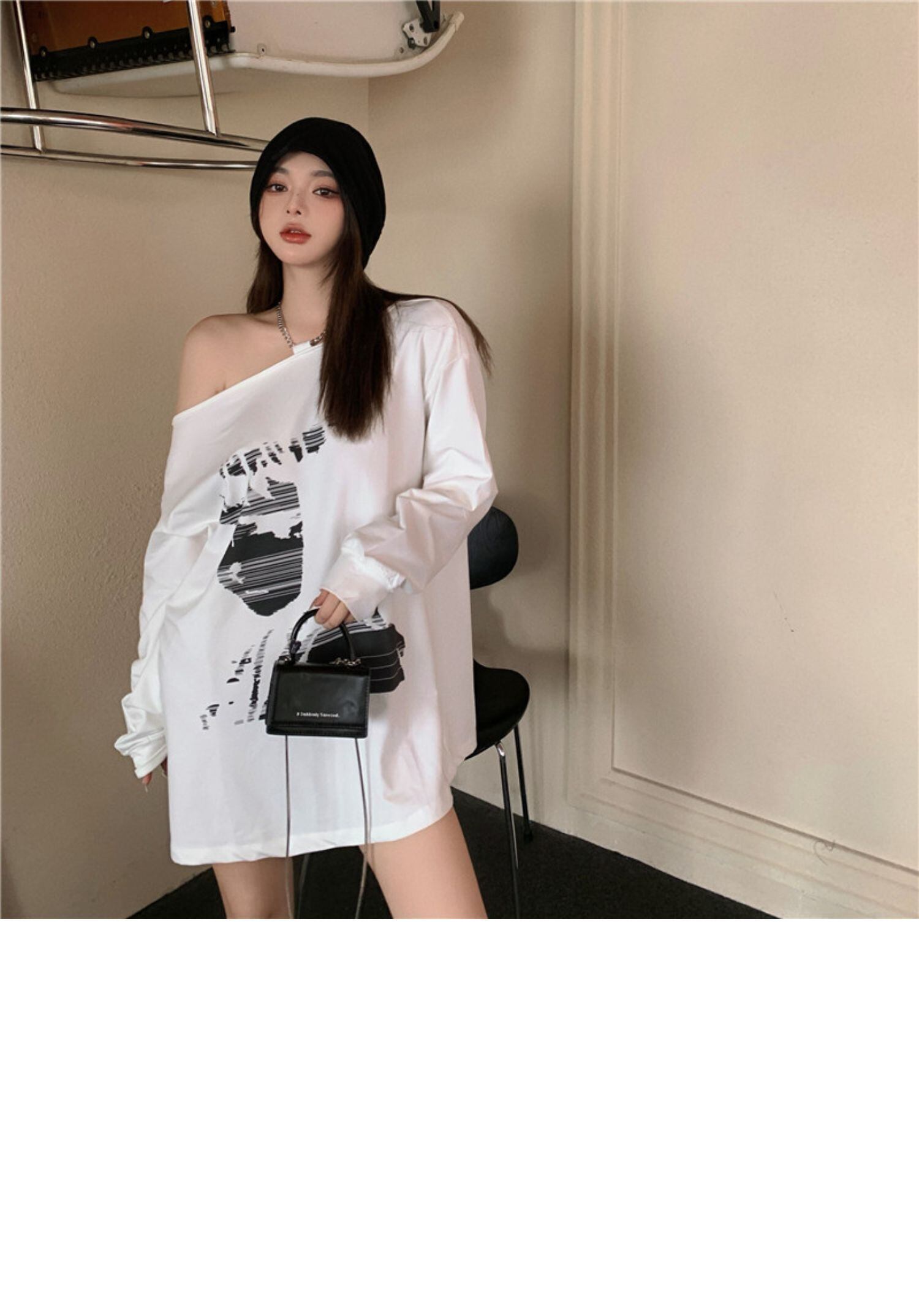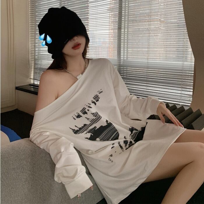 ルーズホルターレッドシャツ 薄手Tシャツ レディース ロング オフショルダー ドラファッションホール22888336800