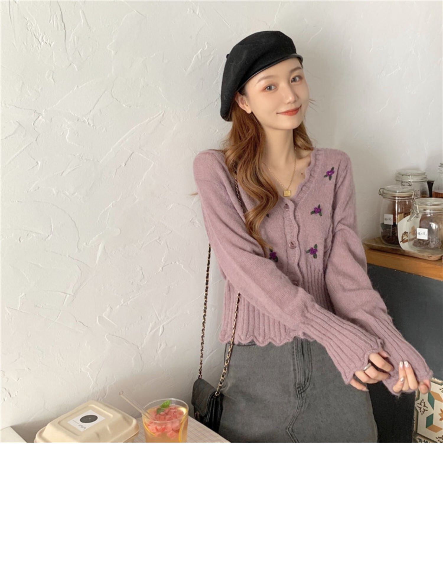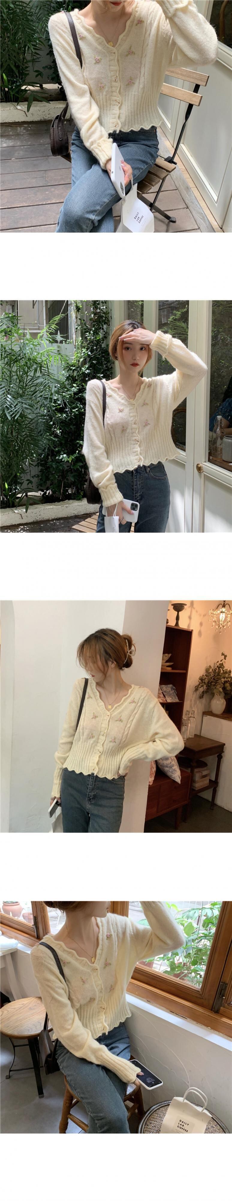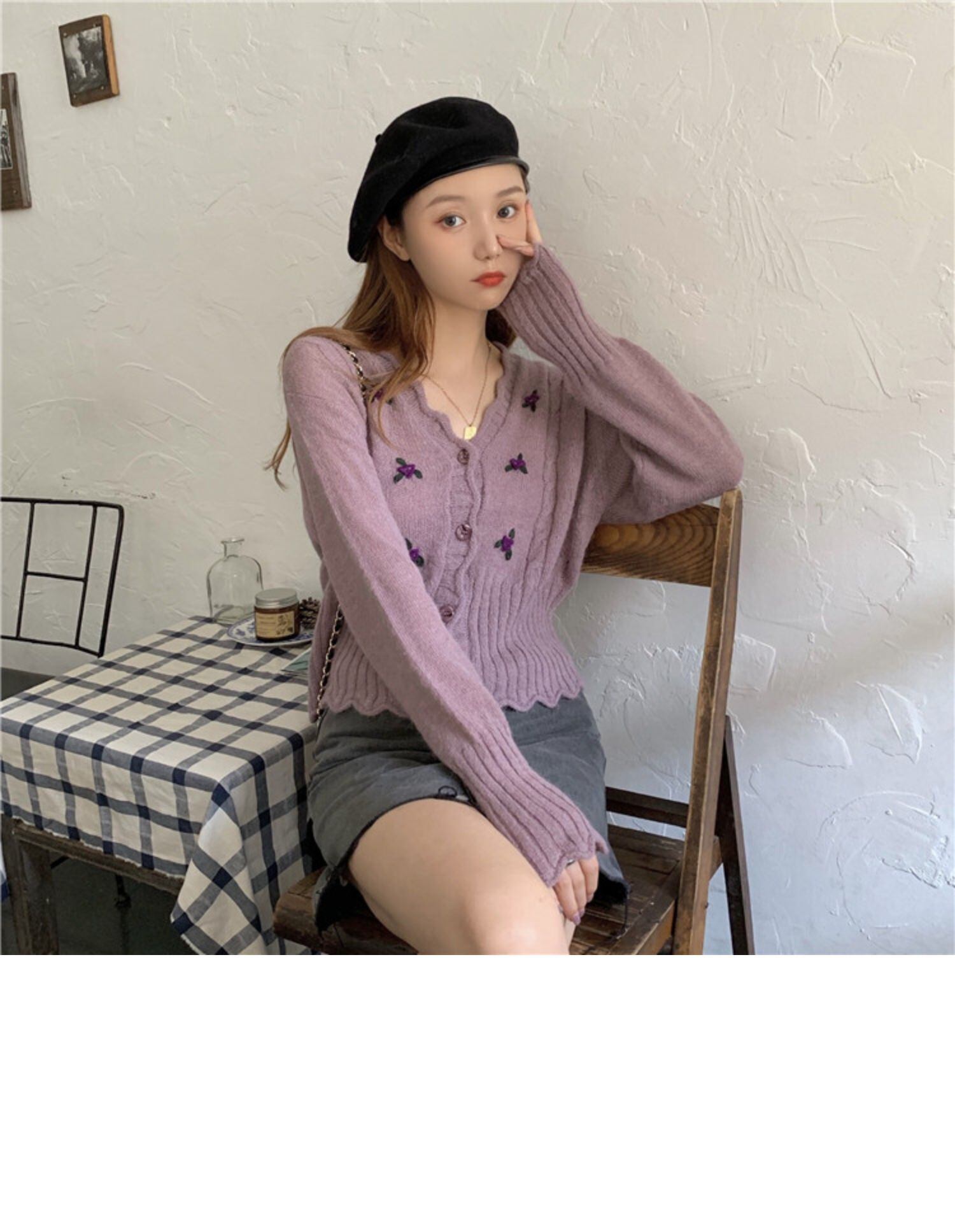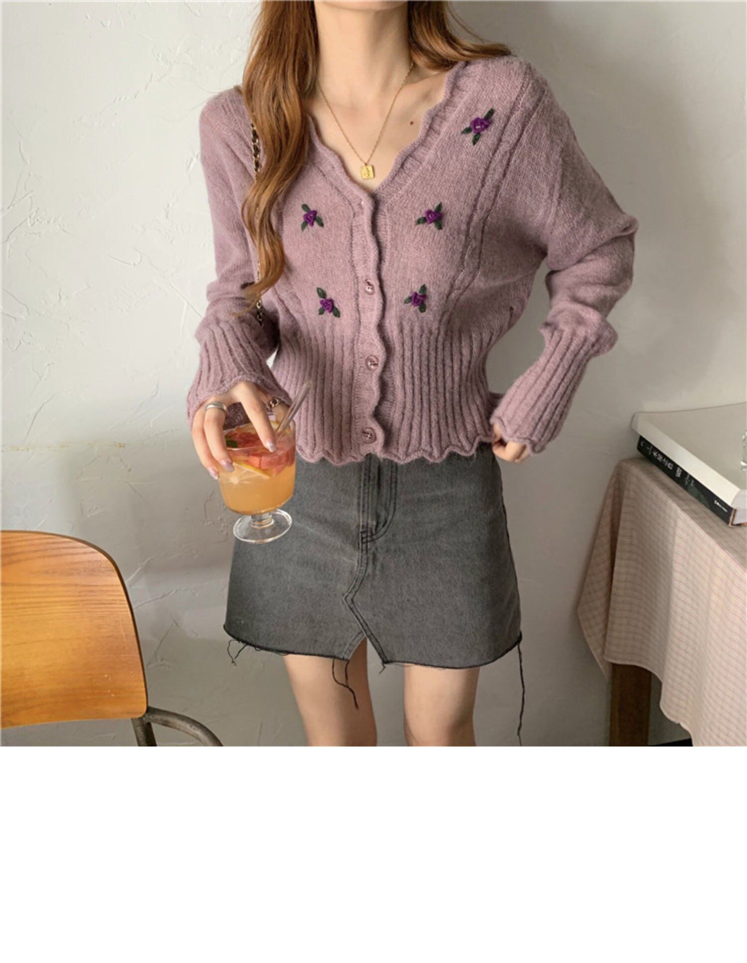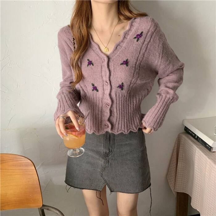 スプリングスタンダードVネックFlowerデザイン レッドカーディガンスタイルセーター トップス レディース ロング レトロ 春物 フラワーデザイン ドラファッションホール59049312494