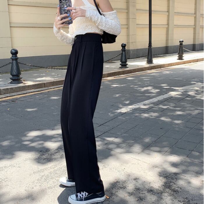 サマースタイルパンツ ハイウェストウェストルーズ薄手ストレッチワイドレッグカジュアルレディース エラスティック 伸縮 夏物 ワイドパンツ ドラファッションホール91221562380