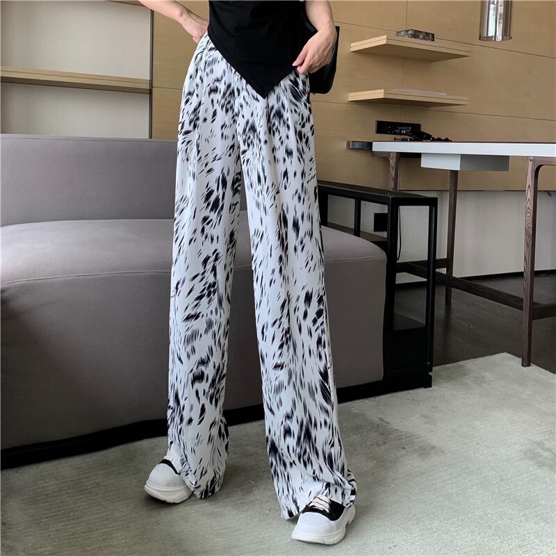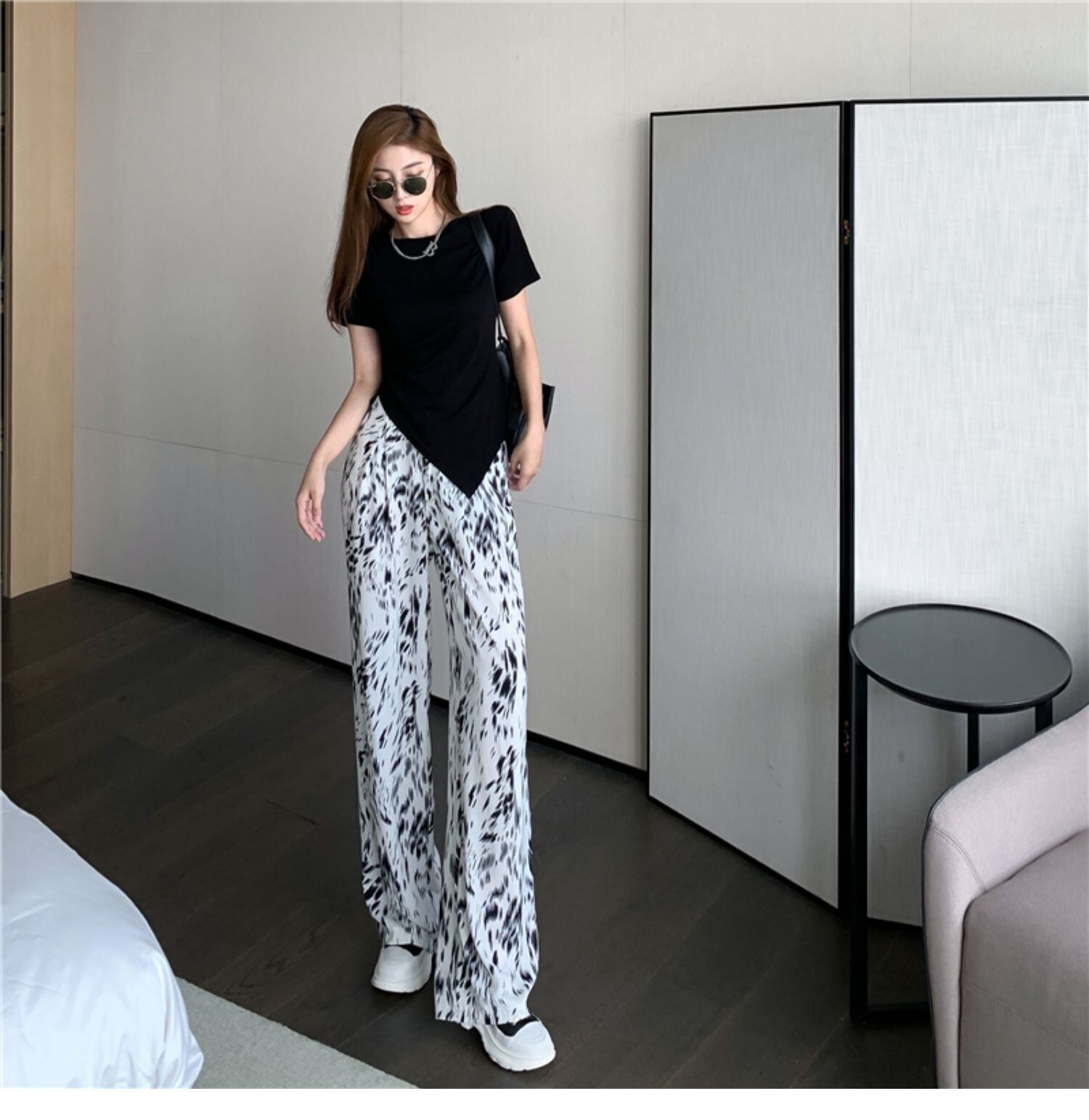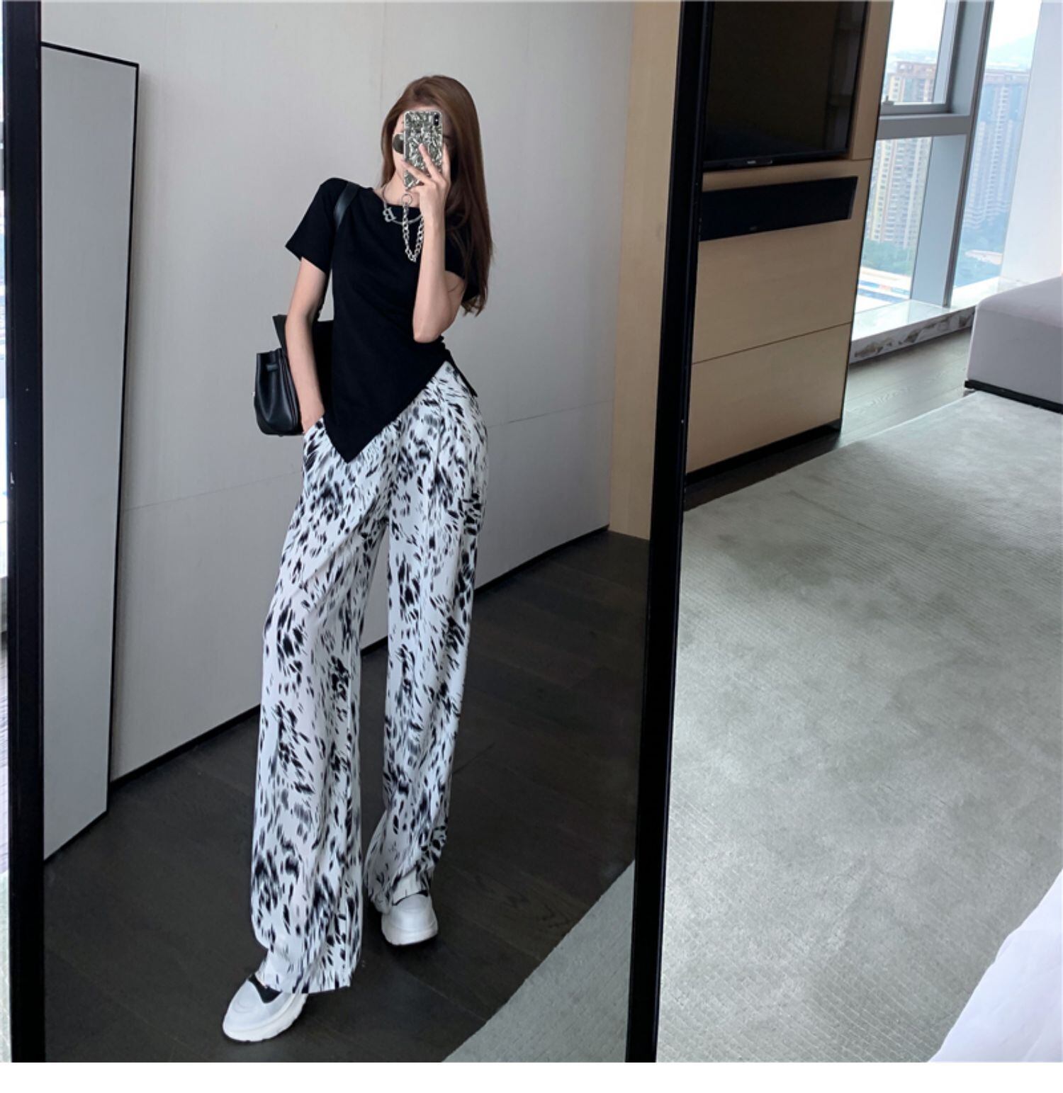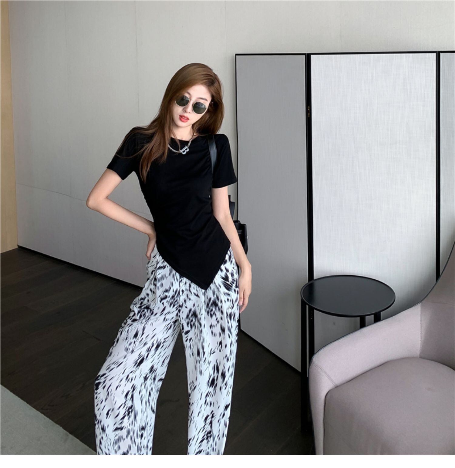 Tシャツ ラウンドネックトップス 薄手レオパードプリント柄パンツ カジュアルレディース Oネック ドラファッションホール25317802502
