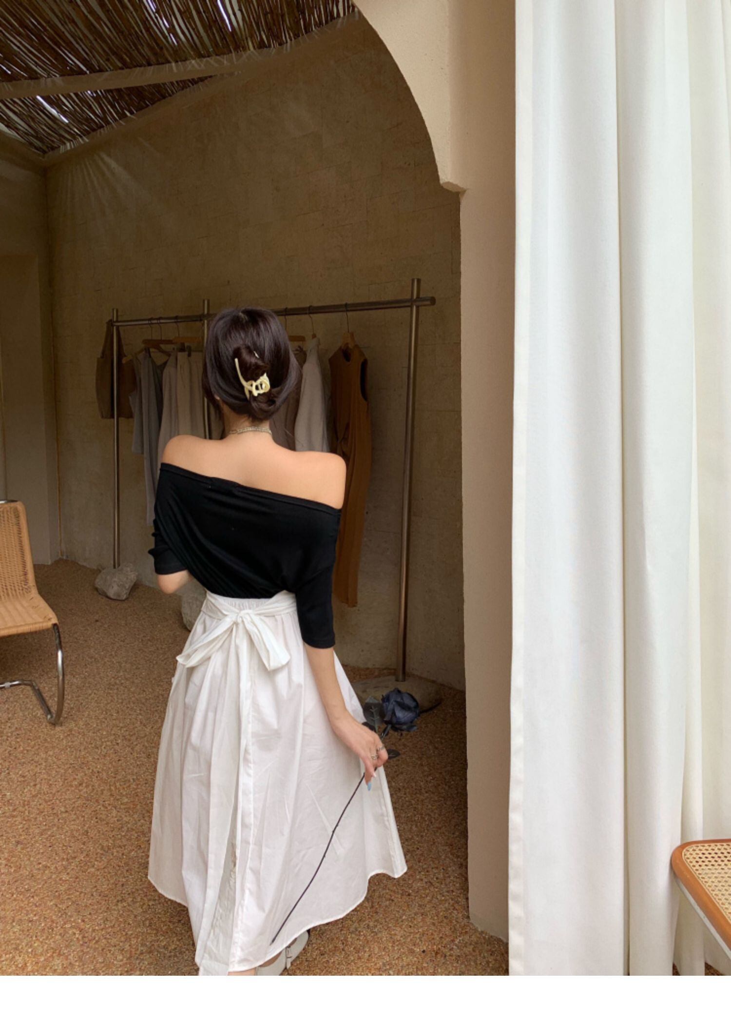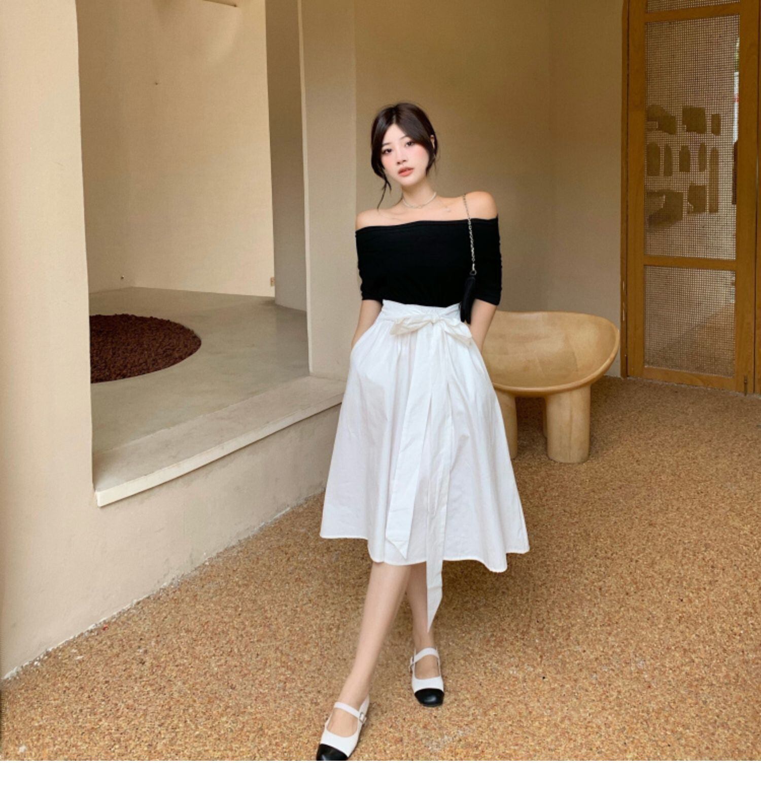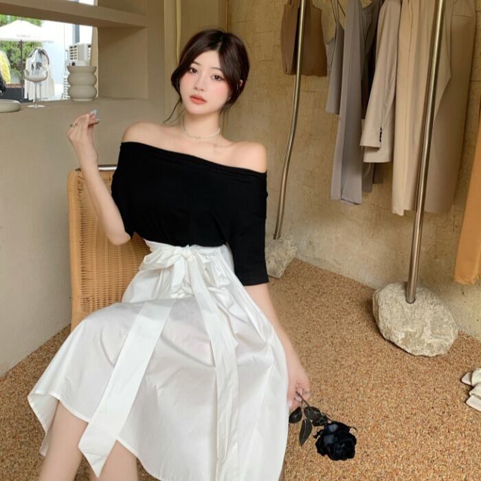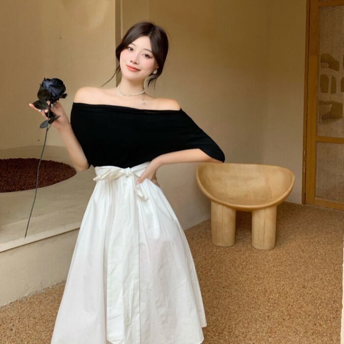 サマーブラックホワイトドレス レース 夏物 レースアップ ステッチ ドラファッションホール55580284682