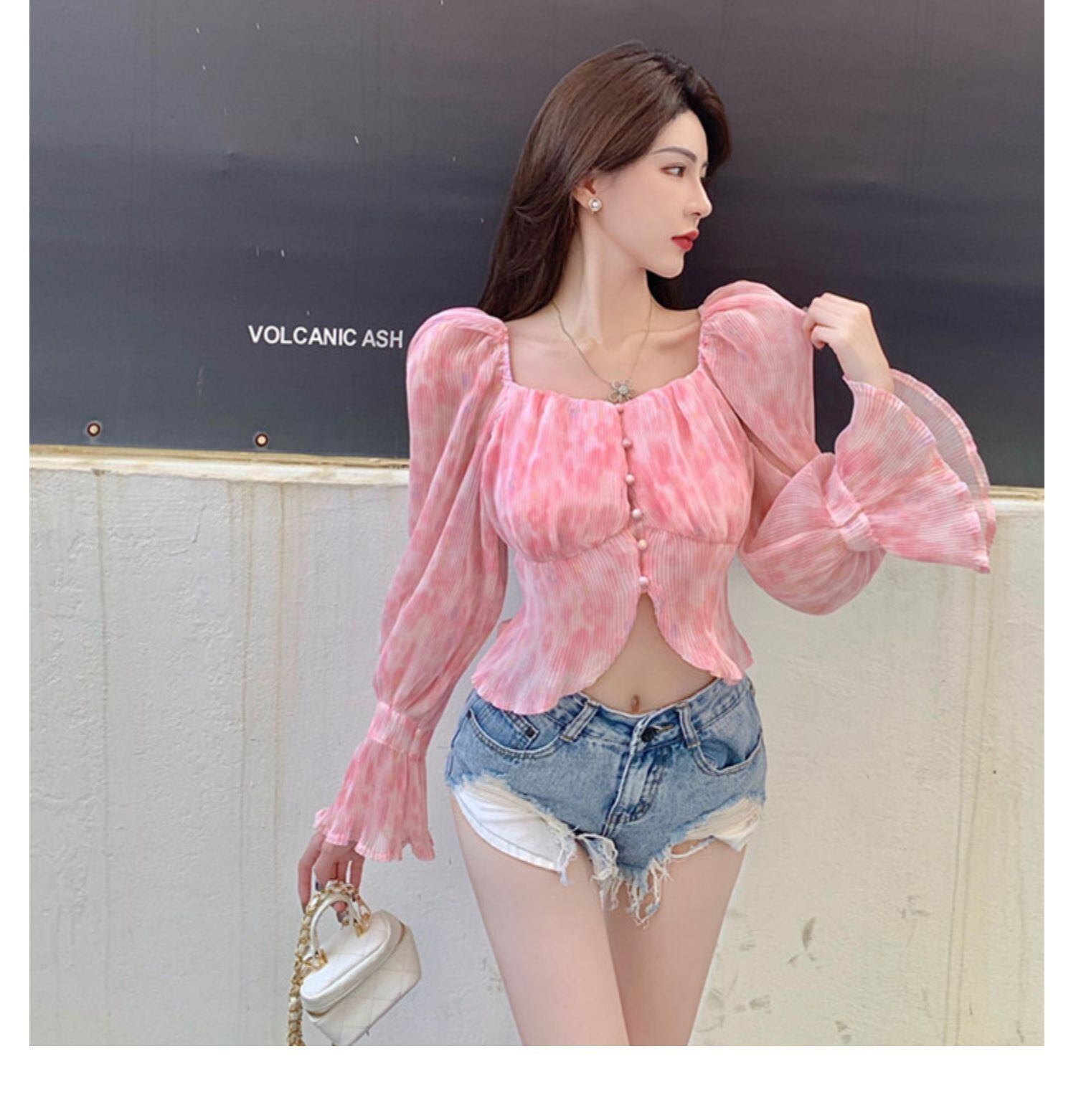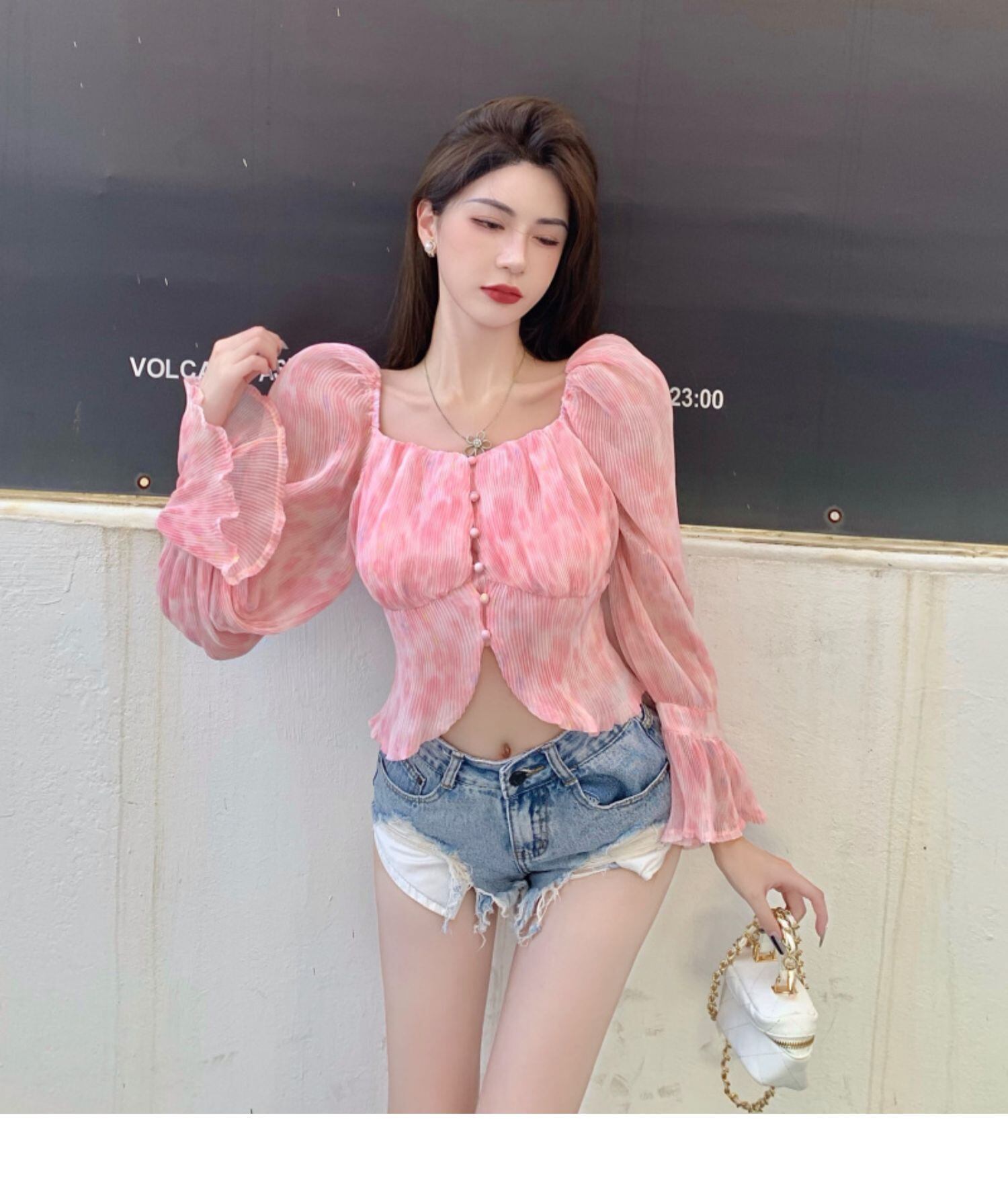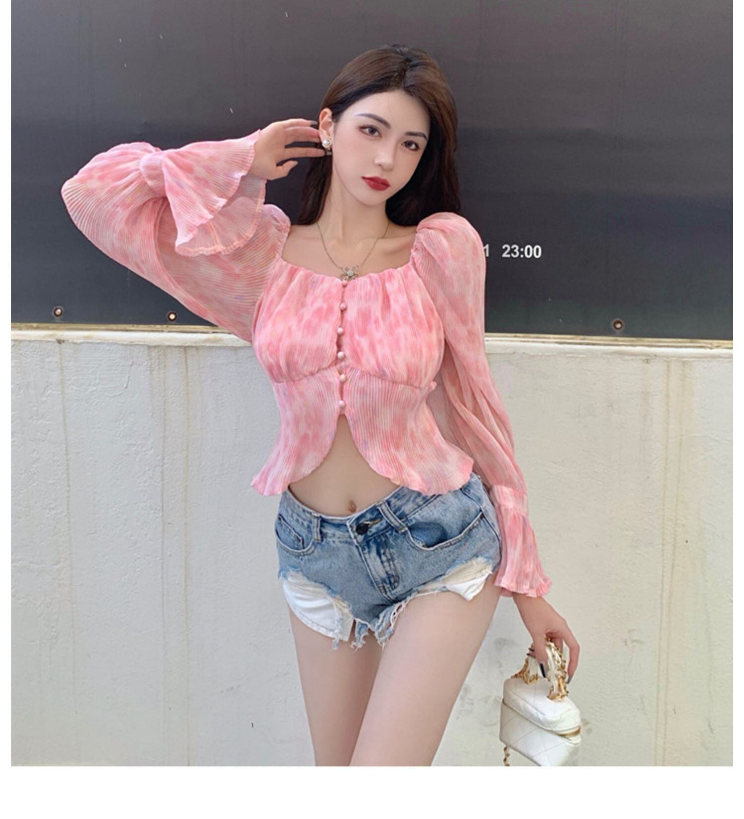 サマースタンダードカラーシフォンシャツ スリム長袖スリーブレディース ロング レトロ 夏物 スクウェア ドラファッションホール26254543648