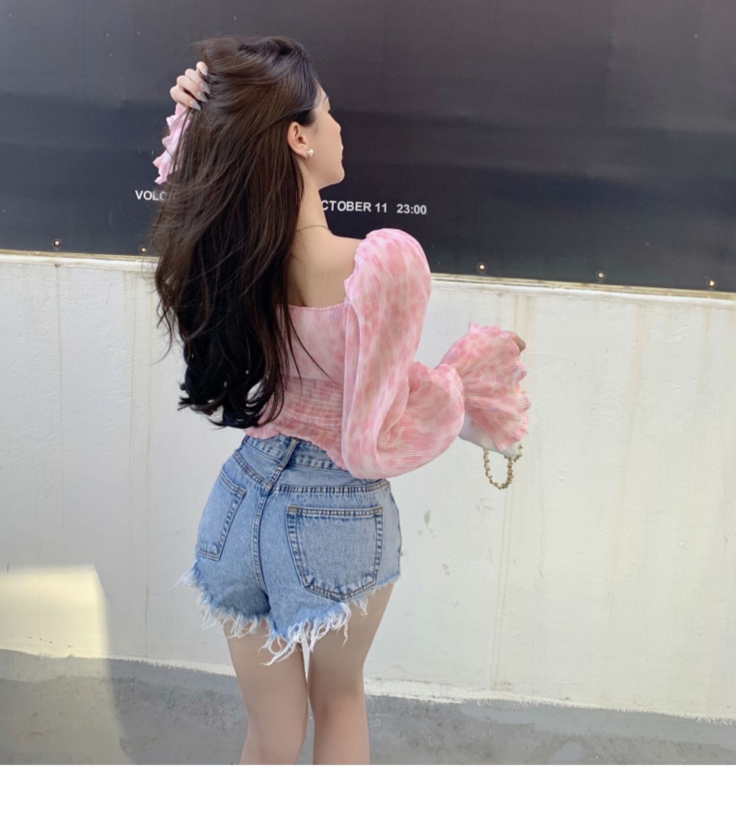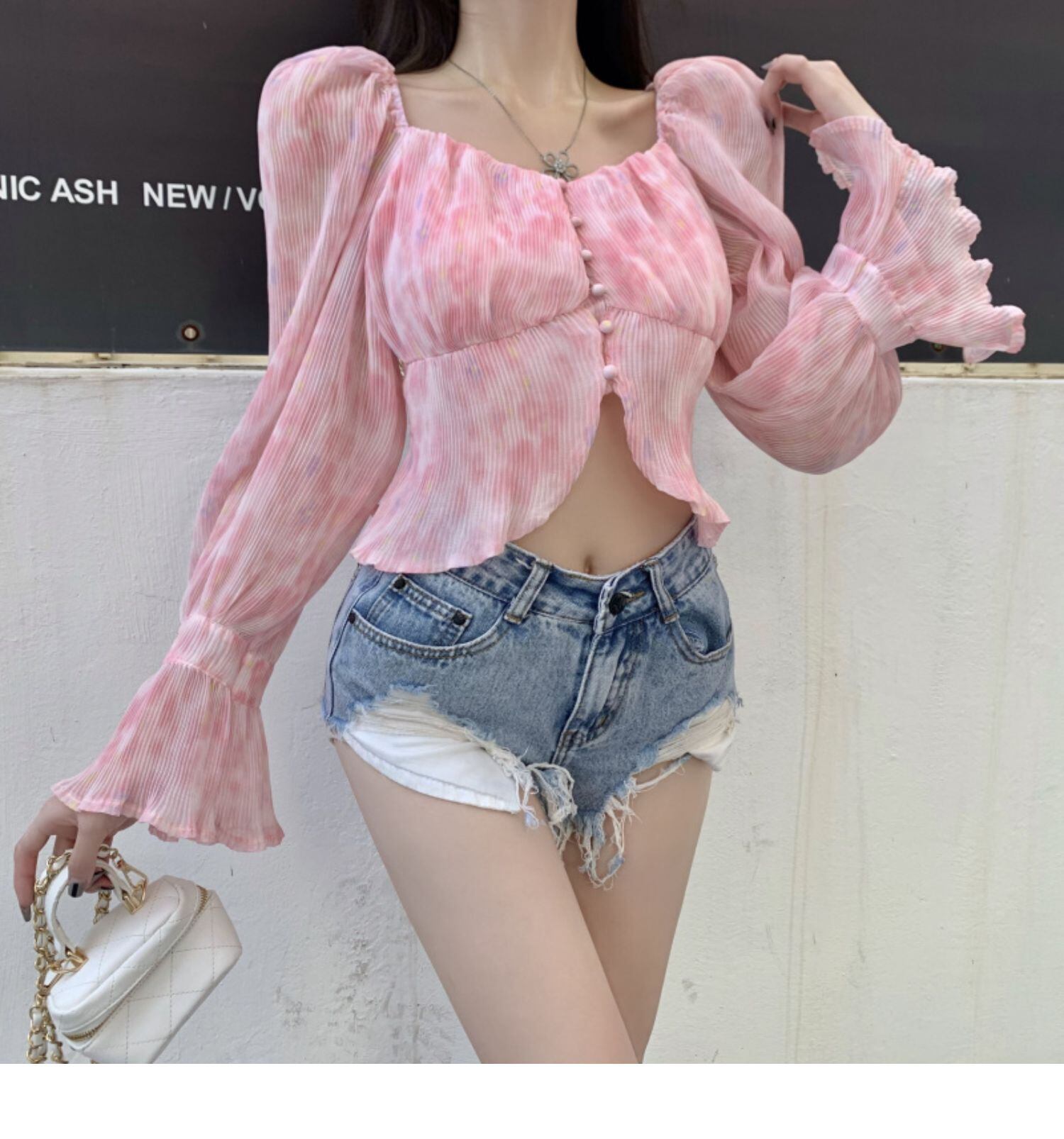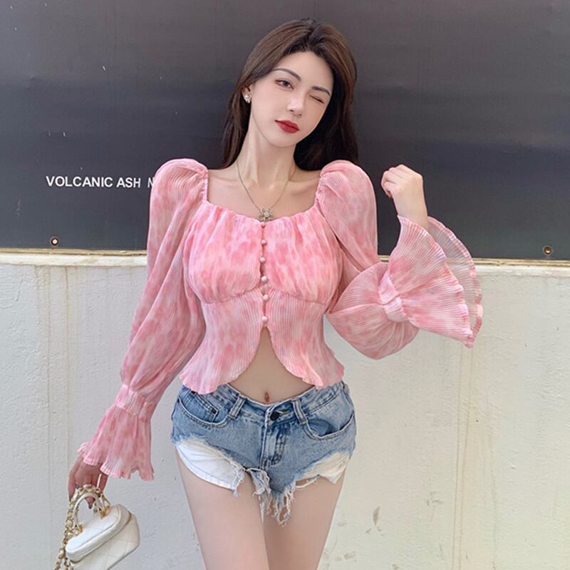 サマースタンダードカラーシフォンシャツ スリム長袖スリーブレディース ロング レトロ 夏物 スクウェア ドラファッションホール26254543648