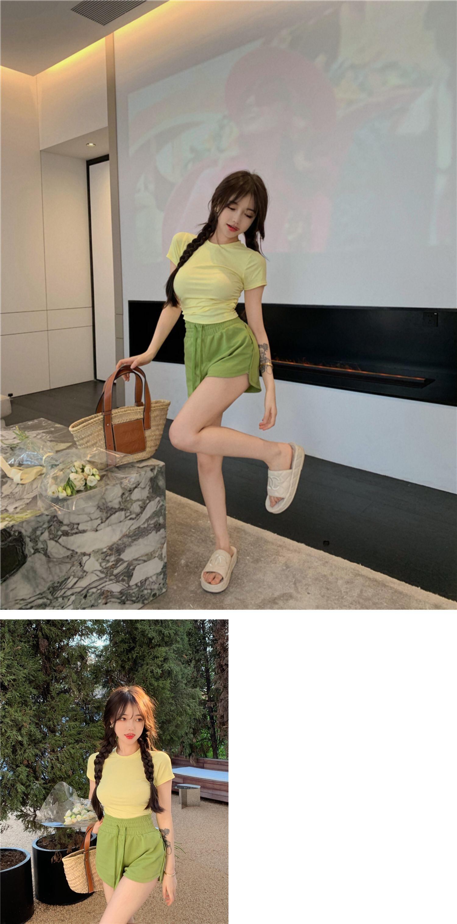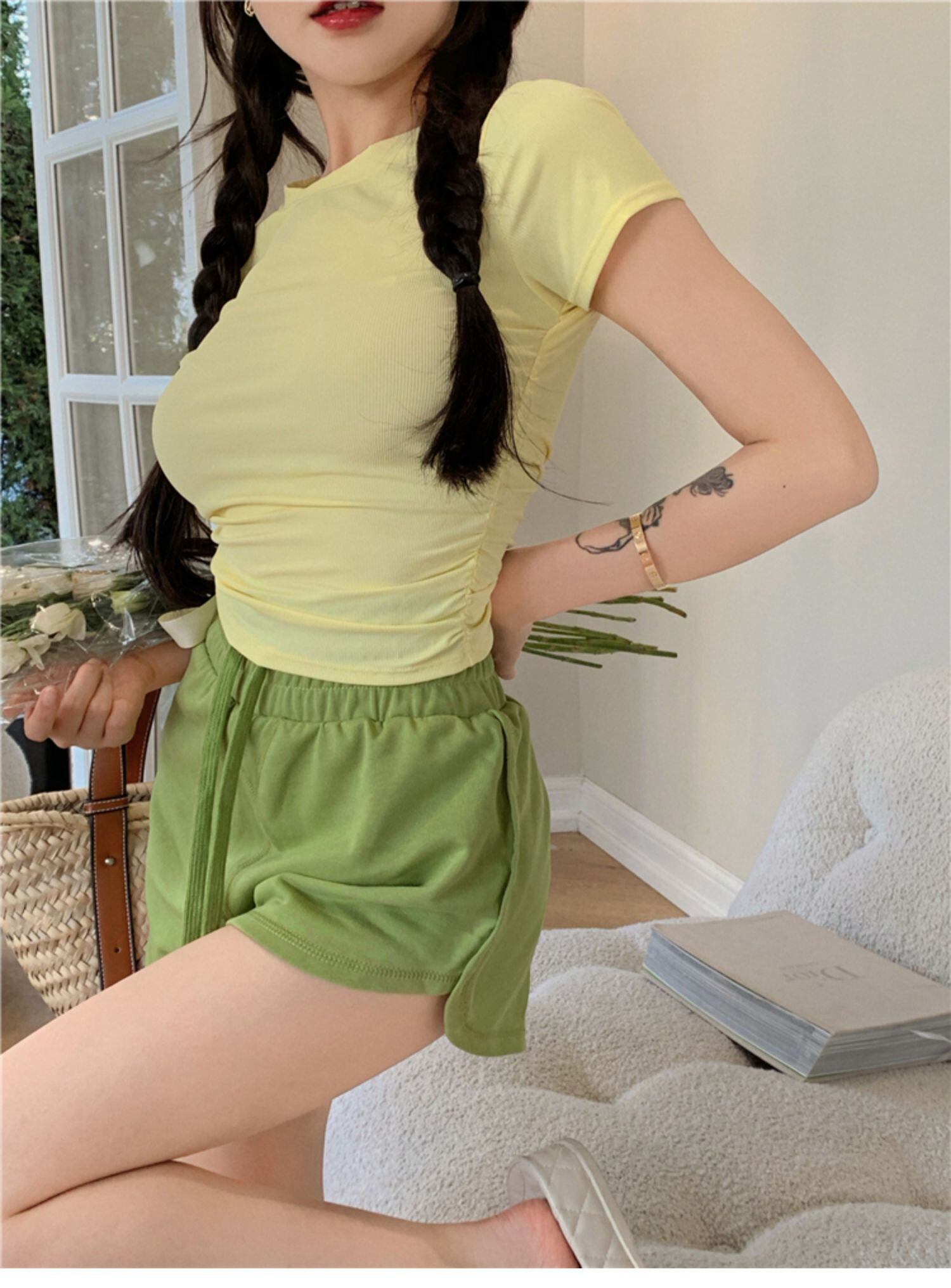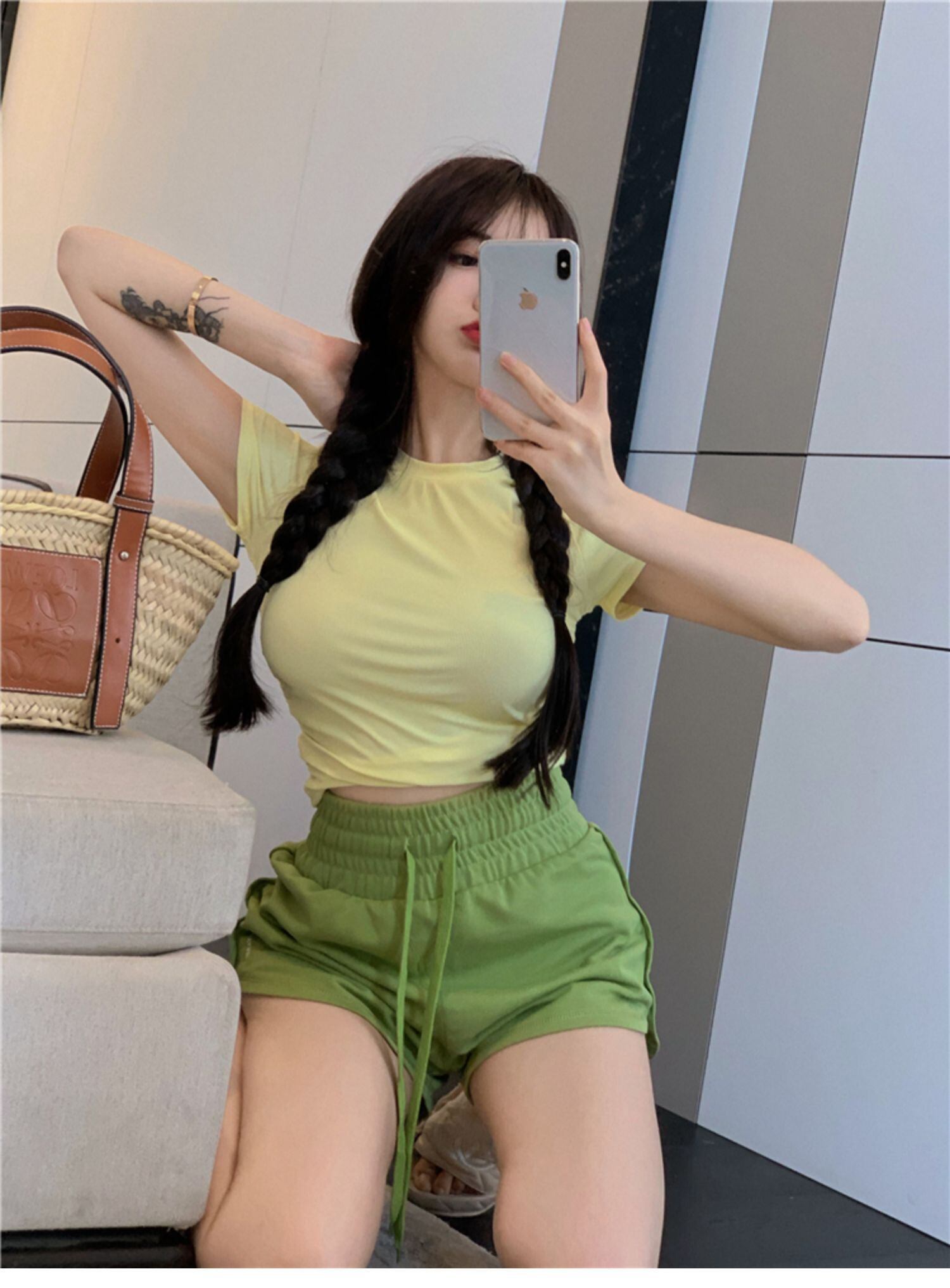 レディースサマースリムソリッド カラーTシャツ カジュアルショーツ 夏物 ブルマー ソリッドカラー ドラファッションホール48815618729
