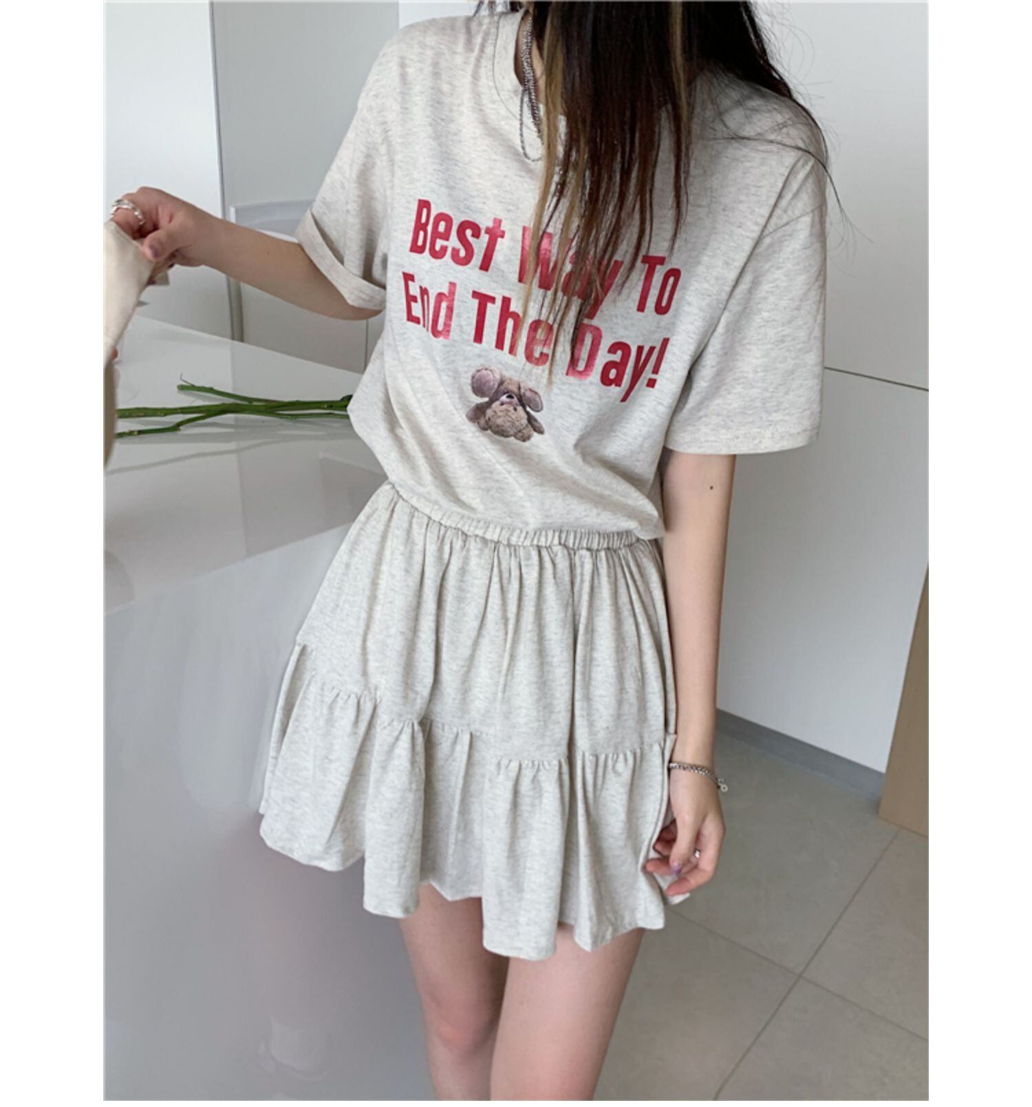 サマースタイルTシャツ トップス ストレッチウェストプリーツスカート エラスティック 伸縮 夏物 ドラファッションホール99173535384