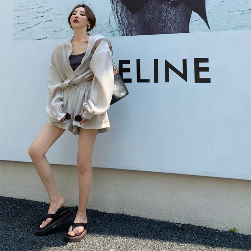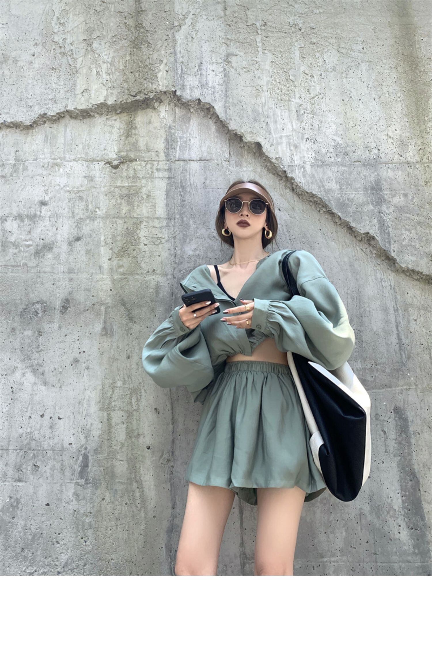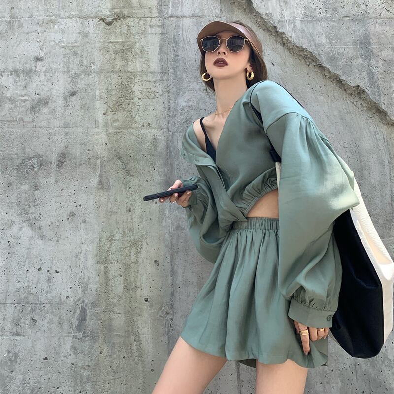 色:グリーントップ,アプリコットトップ,グレートップ,グリーンショートパンツ,アプリコットショーツ,グレーのショートパンツ