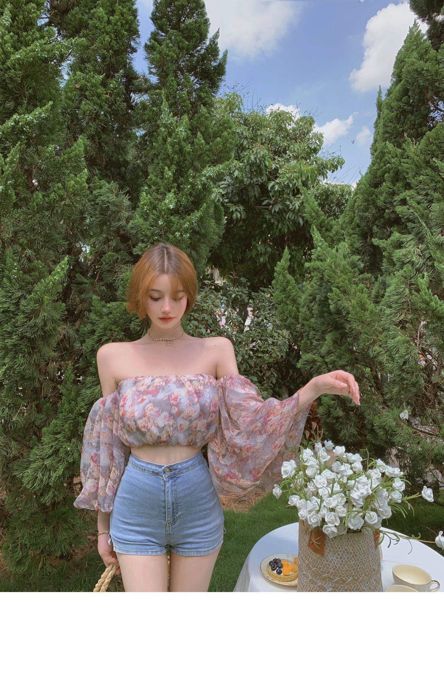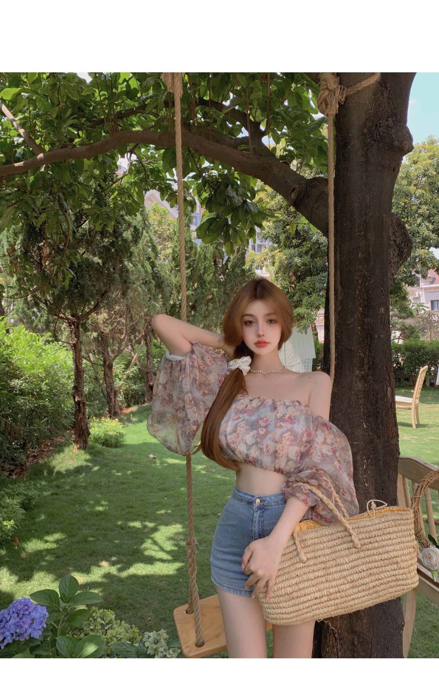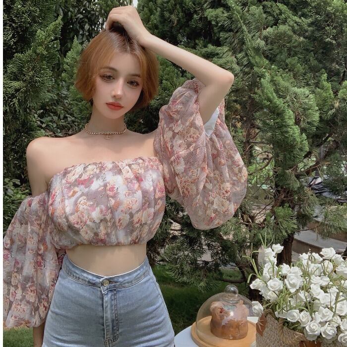 サマースタイルショートフローラルブラウス シフォンシャツ レディース 大人ガーリー スウィート キュート カジュアル 夏物 花柄 ドラファッションホール81585316904