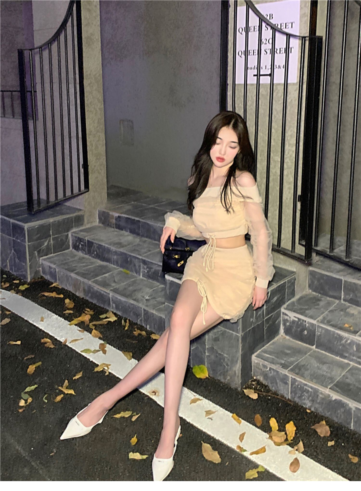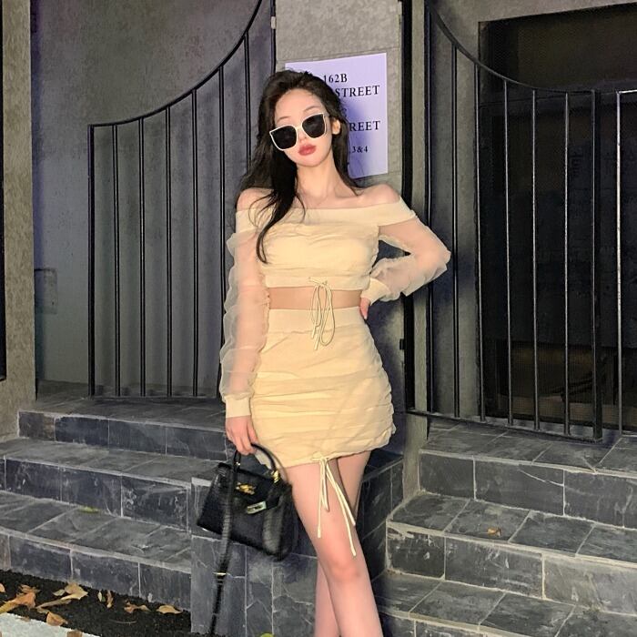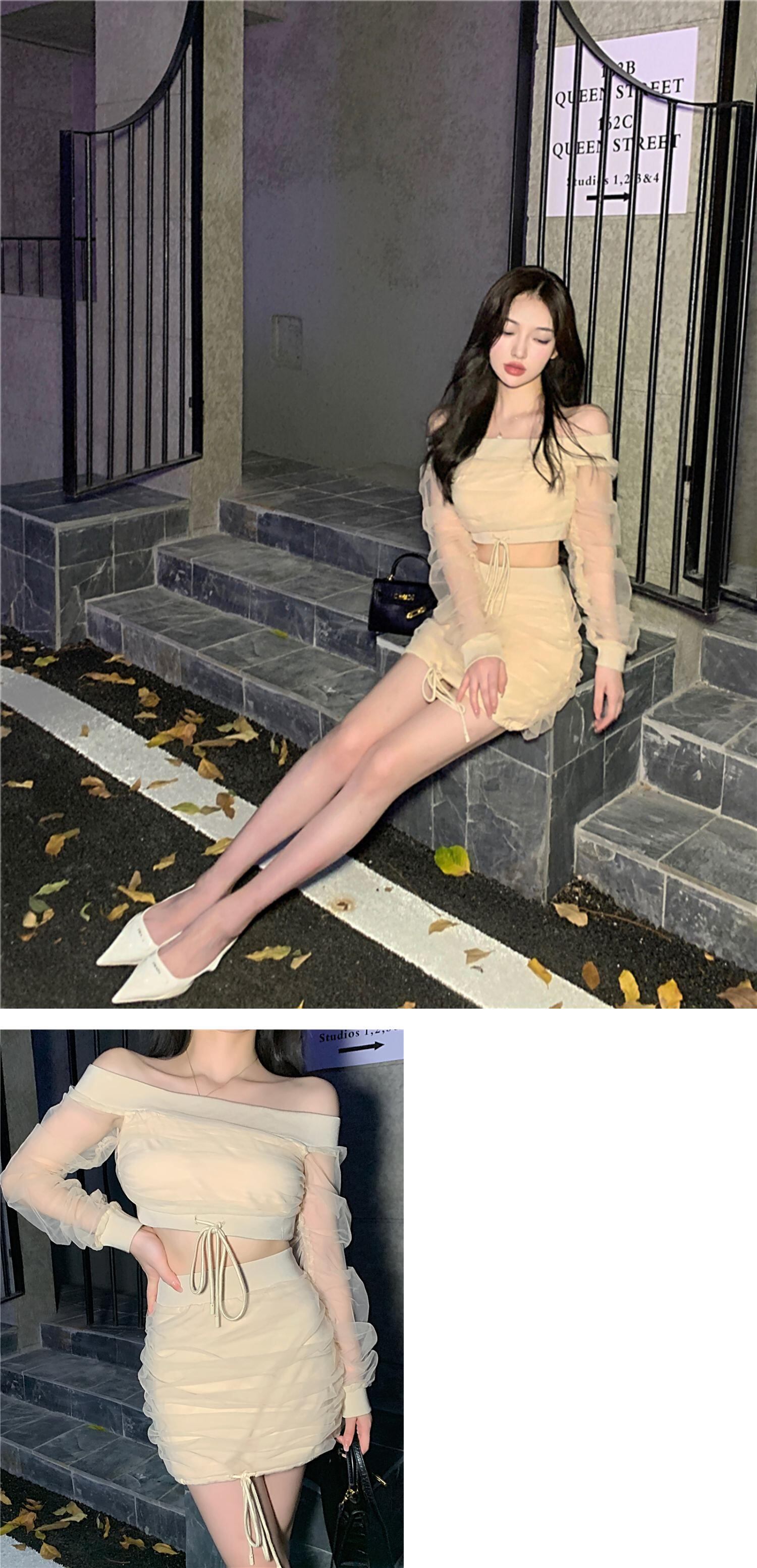 色:ベージュメッシュトップ,ベージュメッシュスカート