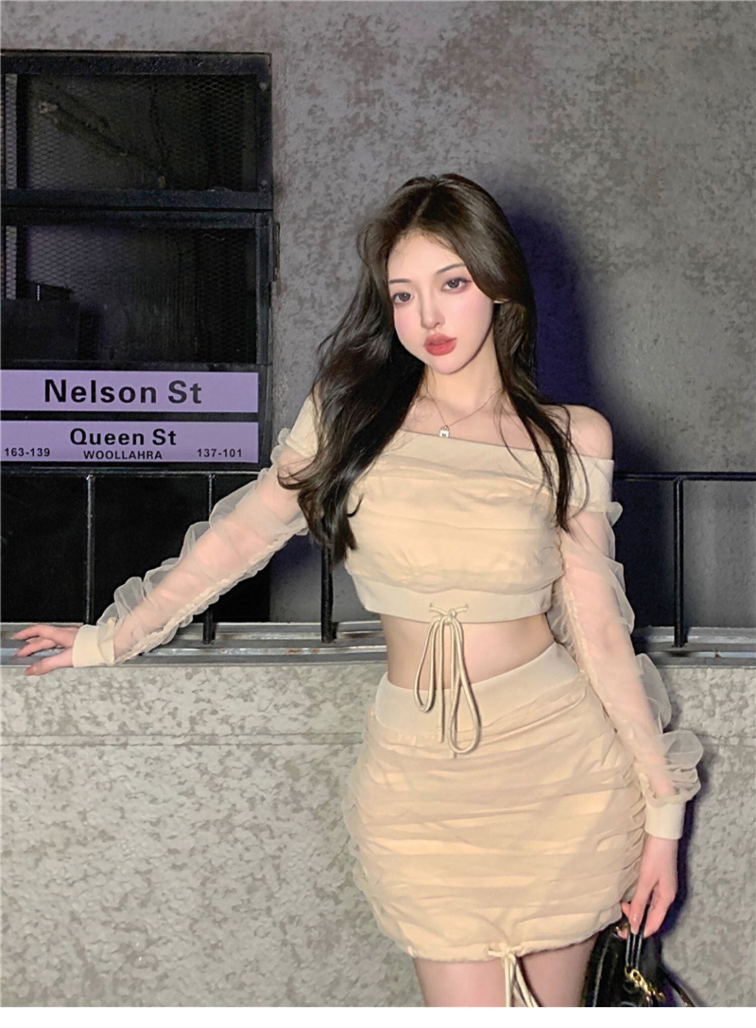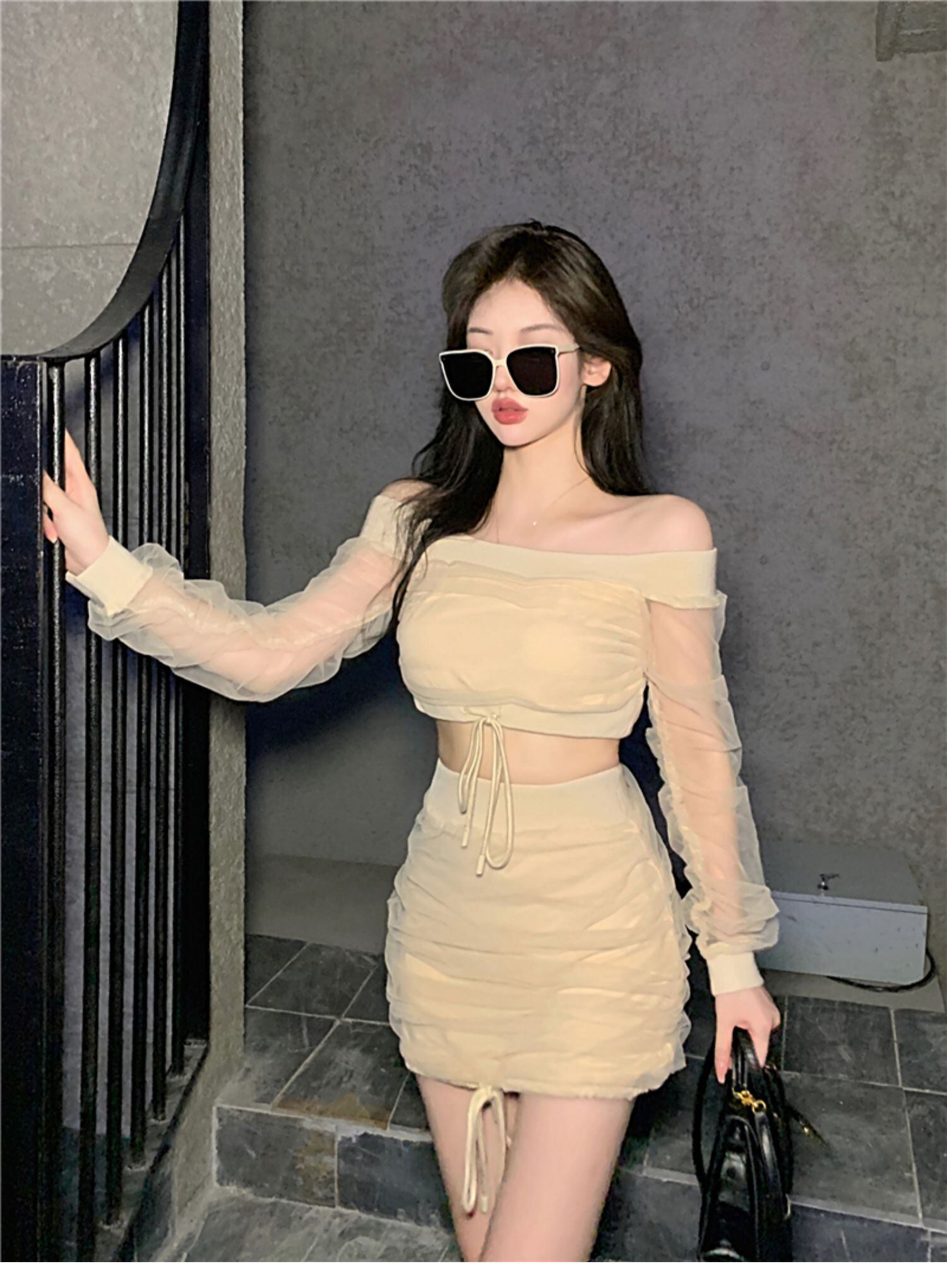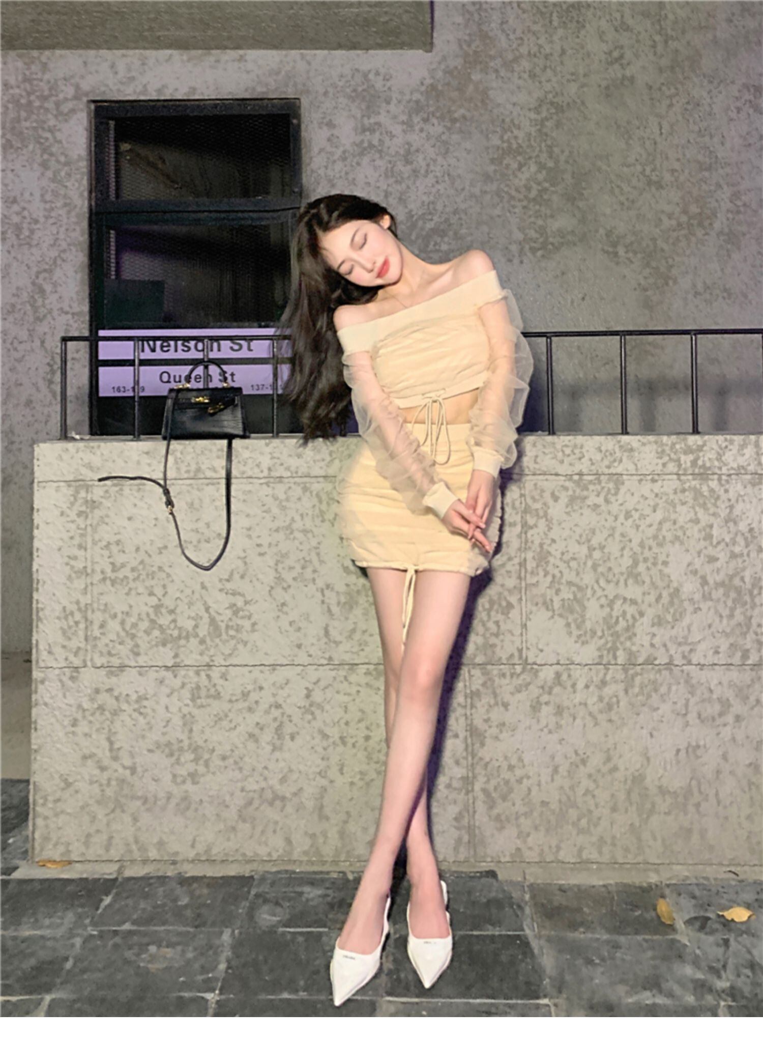 色:ベージュメッシュトップ,ベージュメッシュスカート