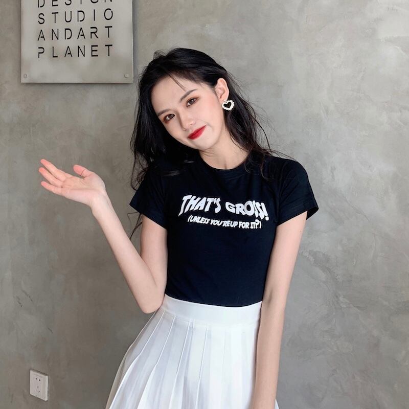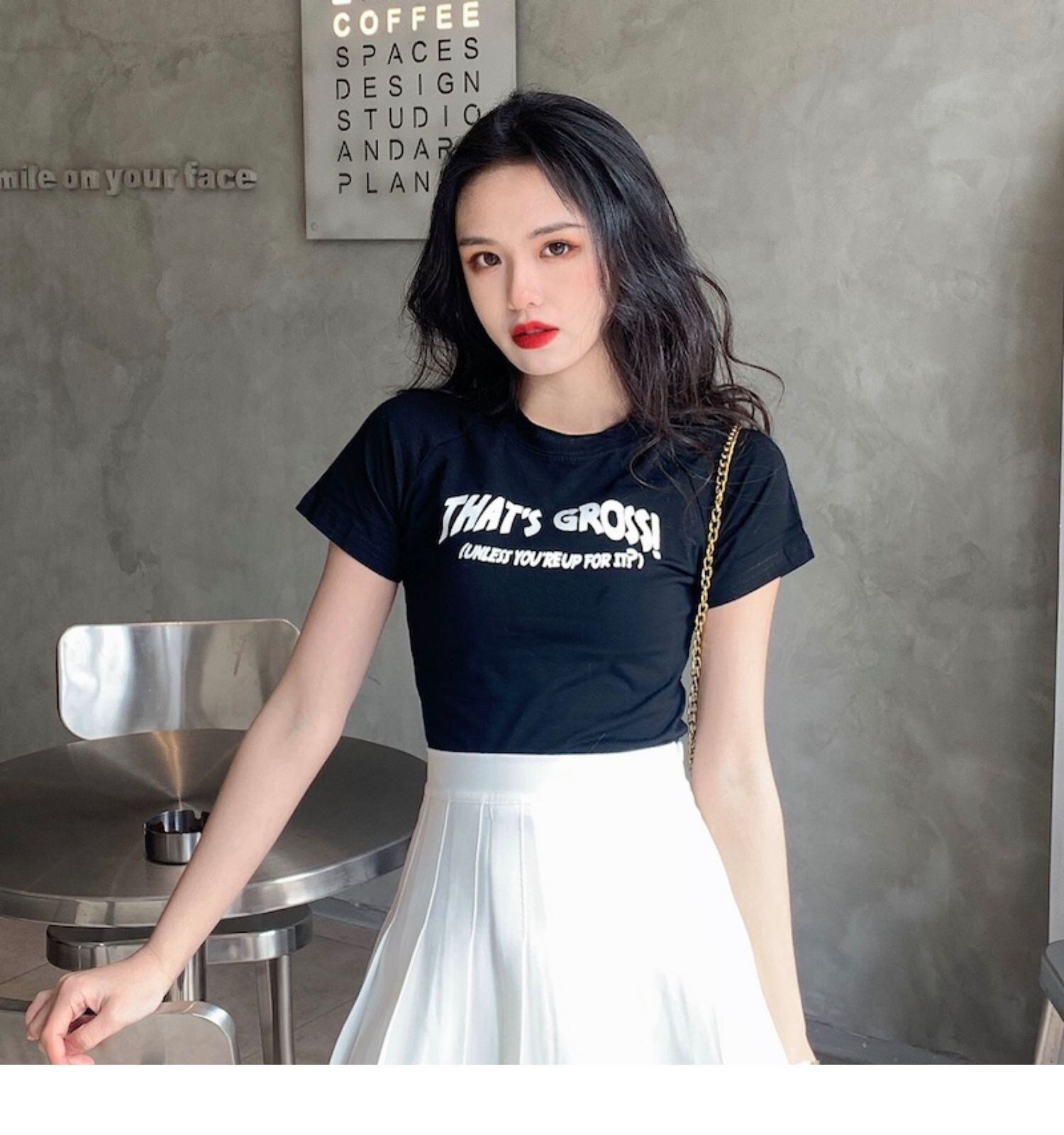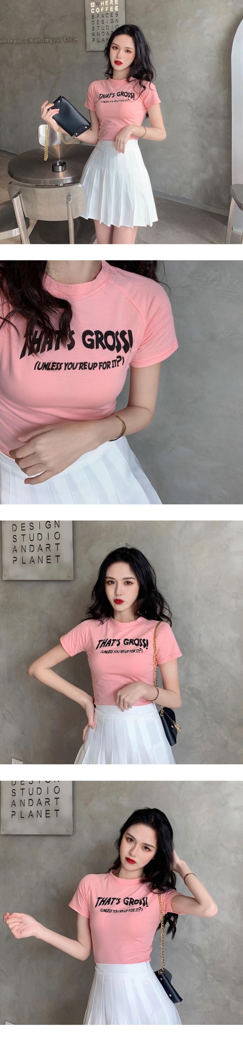 カジュアルプリントショートTシャツ クロップドスリムトップス サマー 夏物 ドラファッションホール72270132628