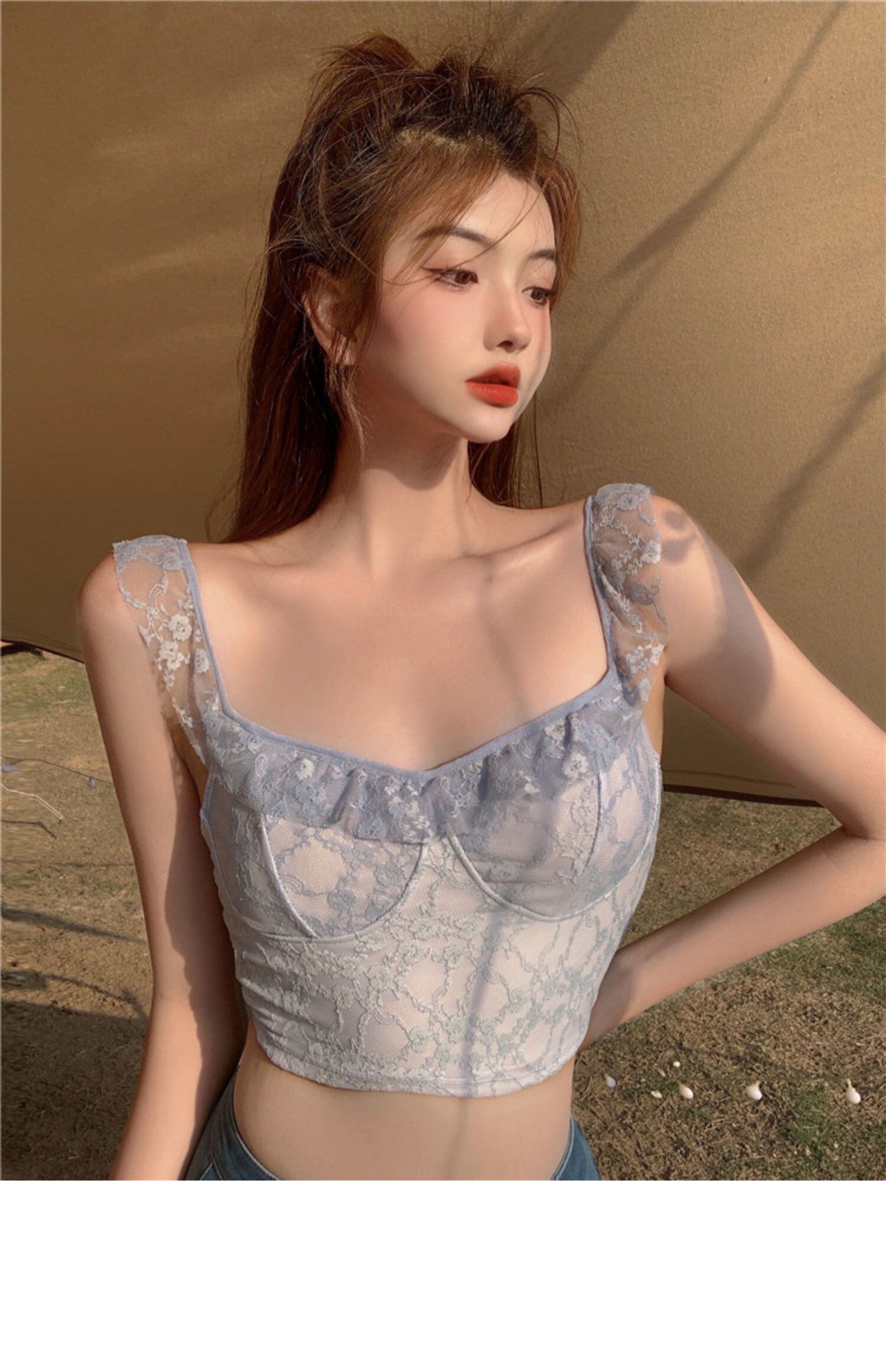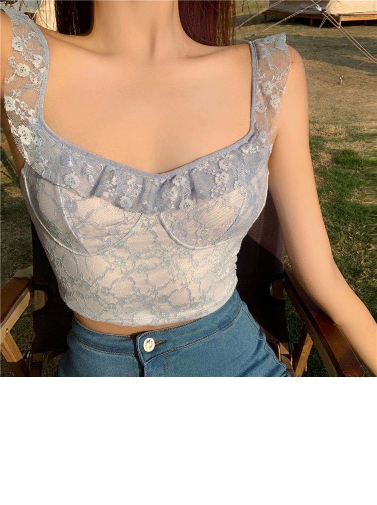 サマースタイルレーストップス ショート 大人ガーリー スウィート キュート カジュアル 夏物 ドラファッションホール15037235157