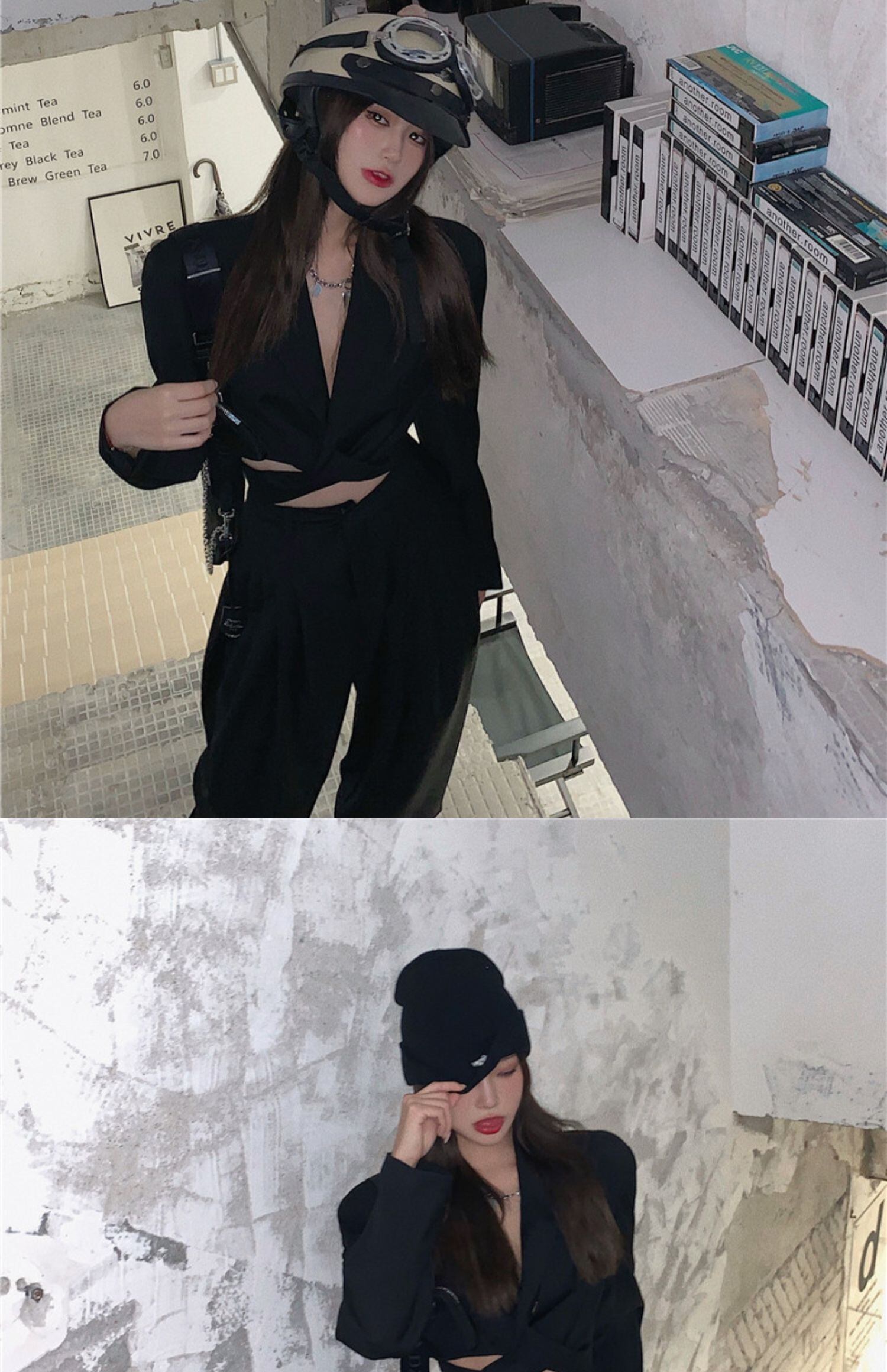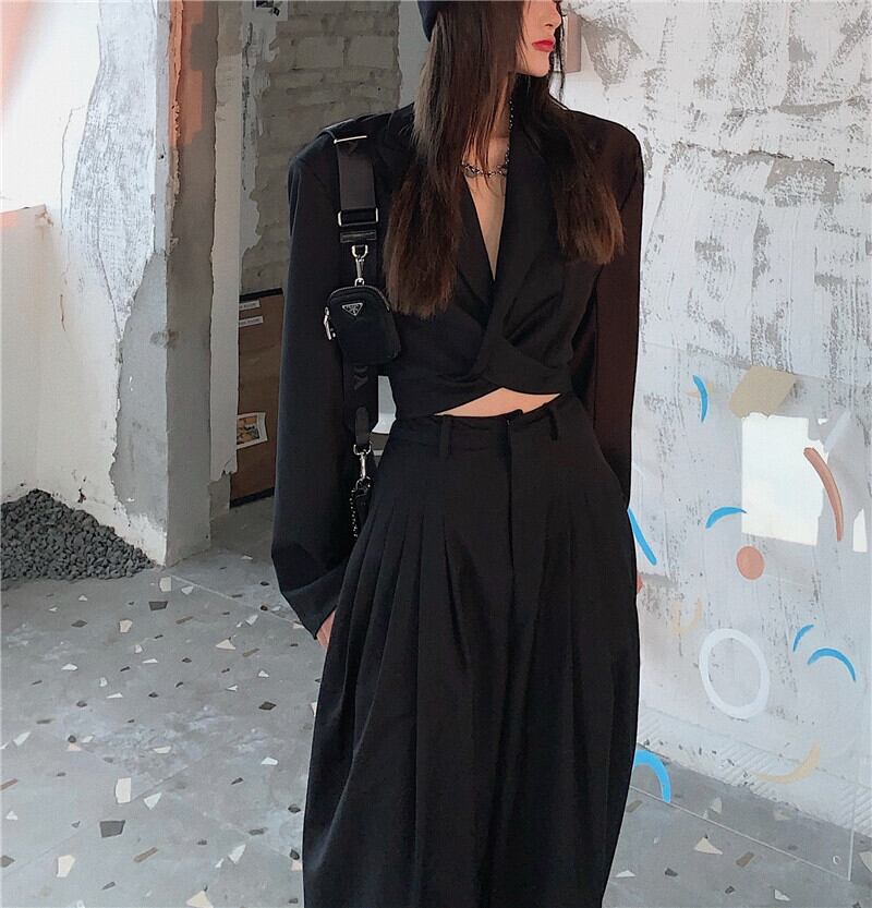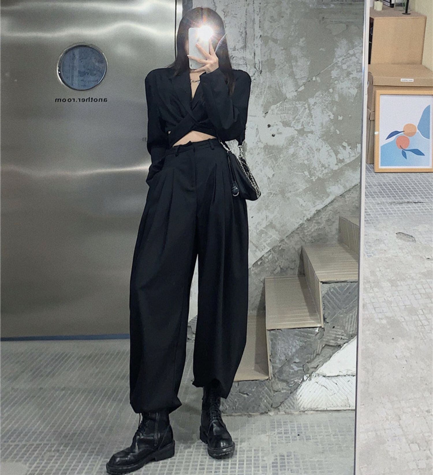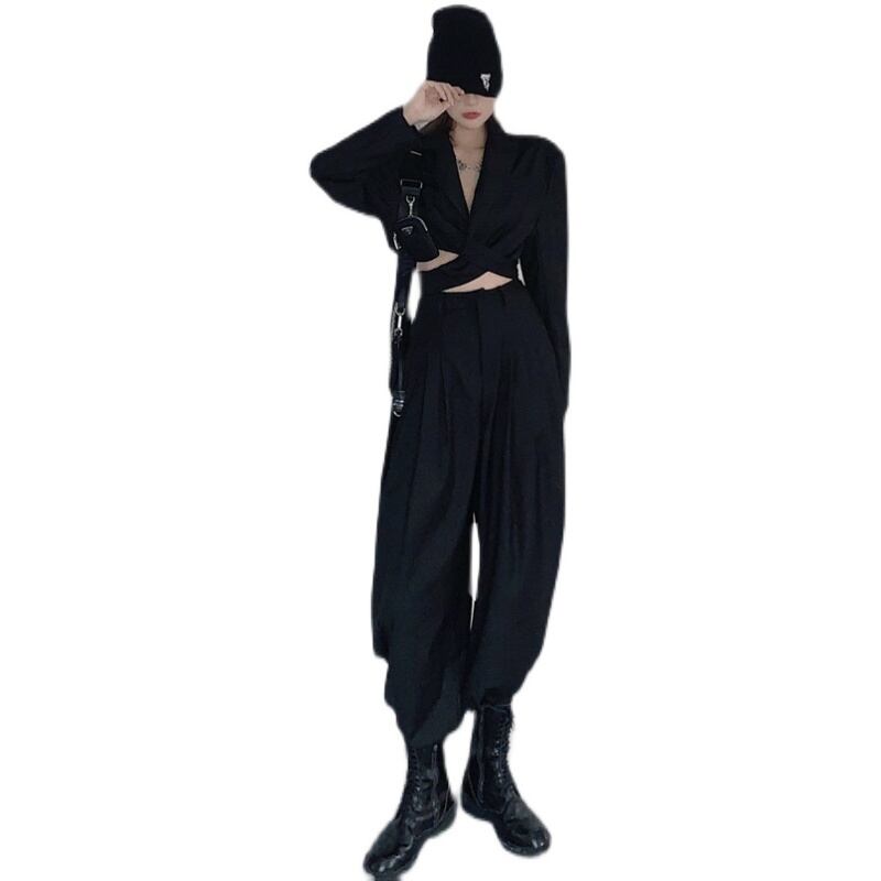 スタイルソリッド カラージャケット スプリングブラックパンツ 春物 ソリッドカラー ドラファッションホール8843025275