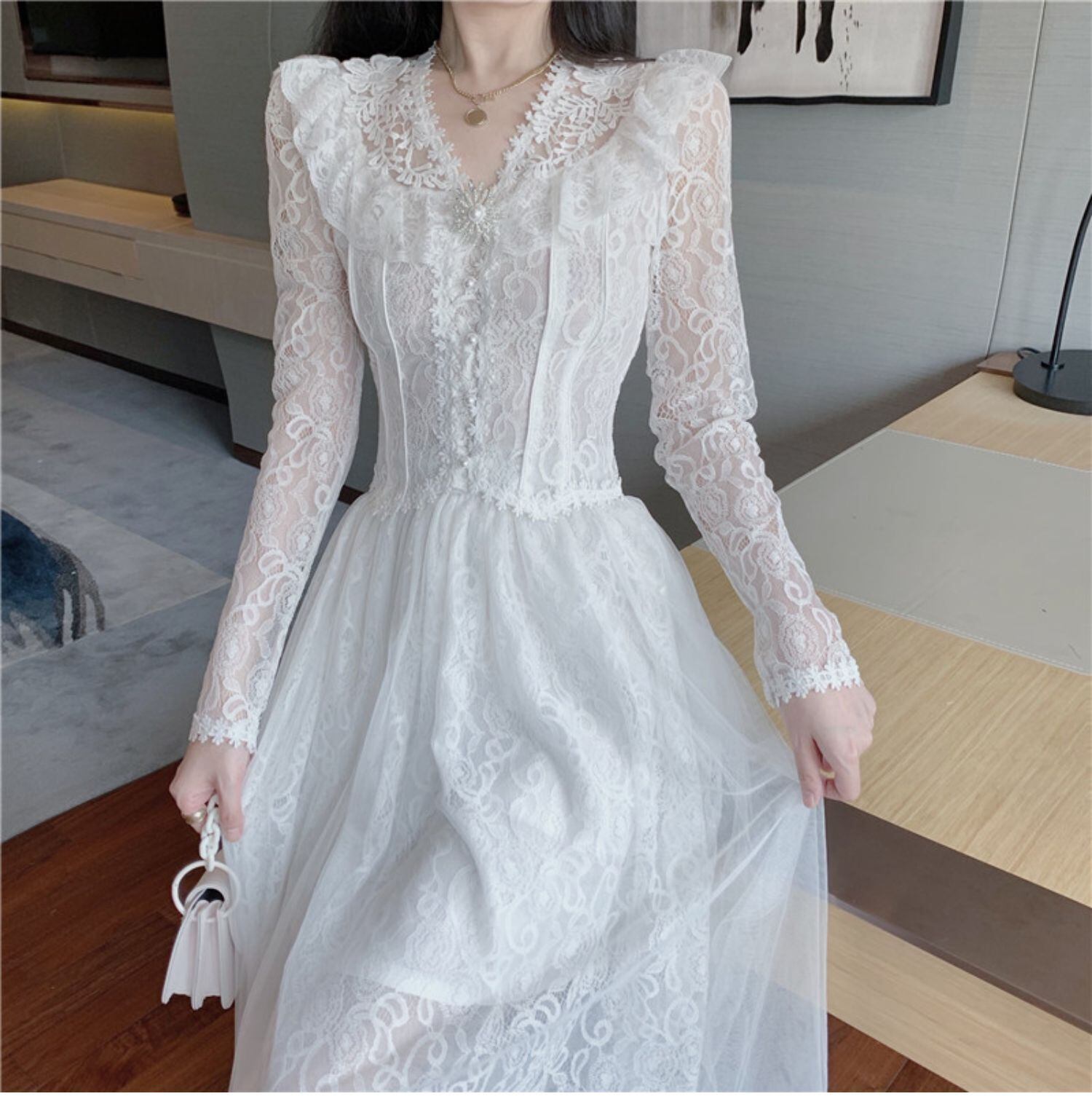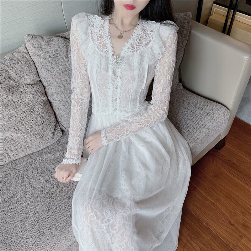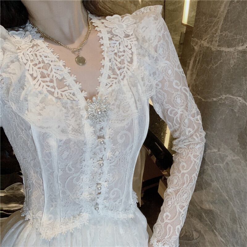 スタンダードレーススタイルスプリングサマーブラウス メッシュスカート レトロ 春物 夏物 ドラファッションホール56734729185