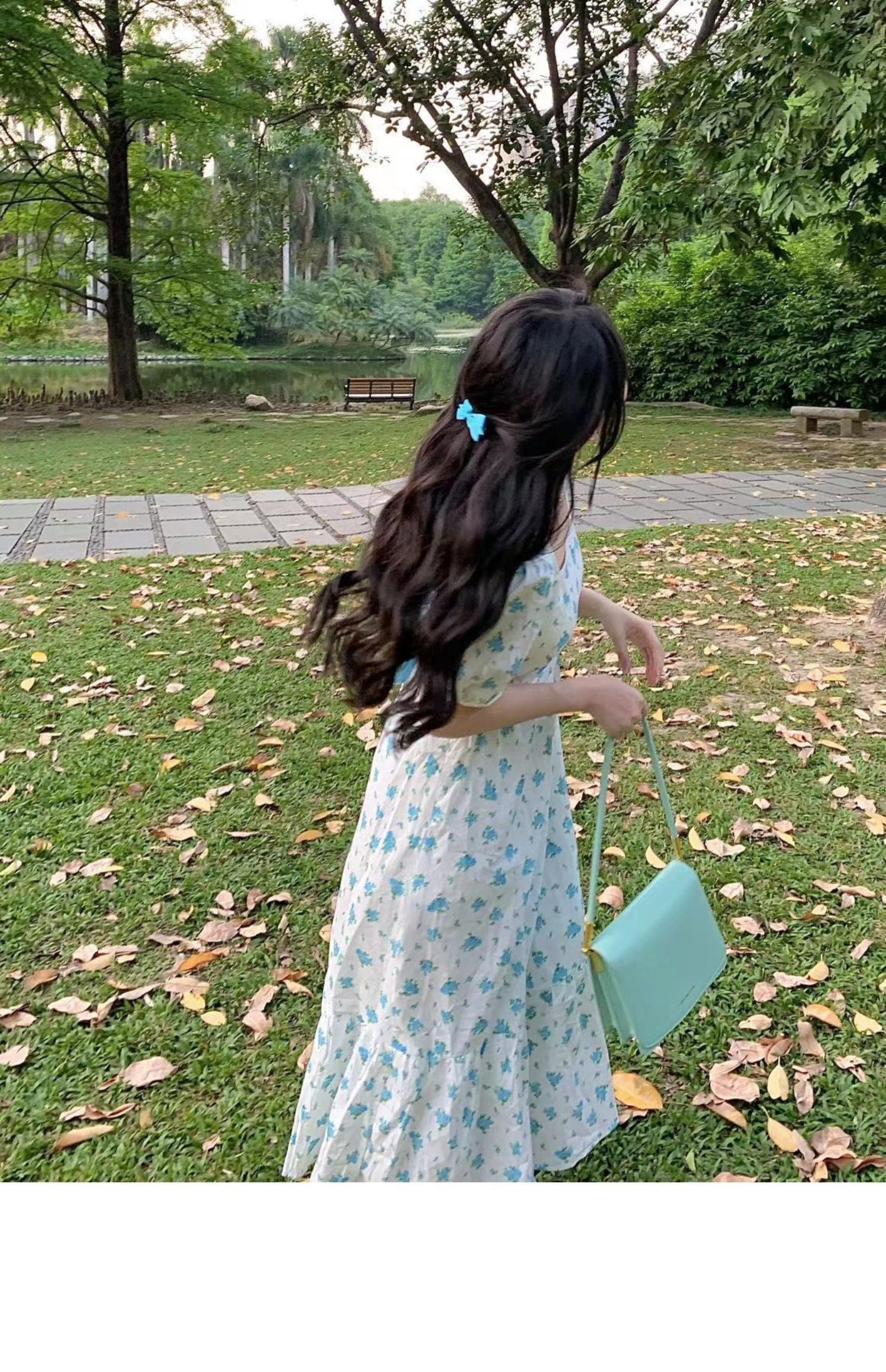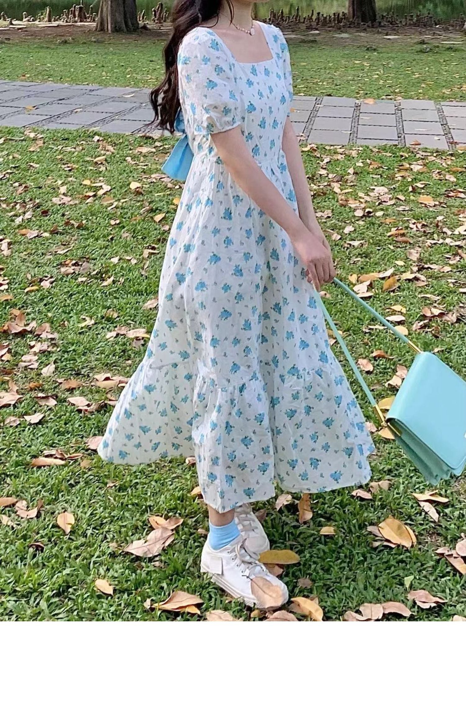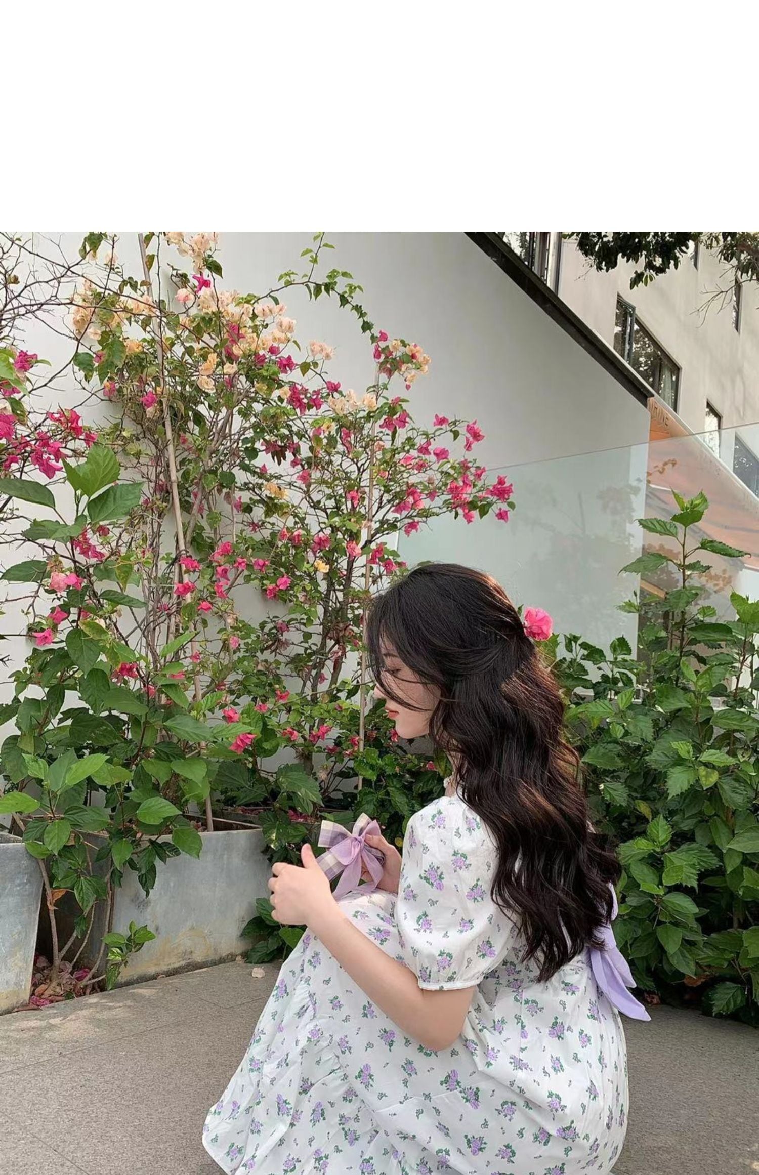 サマースタンダードホルターロングフローラルドレス 半袖スリーブレディース ショート リボン レトロ ハーフスリーブ 大人ガーリー スウィート キュート カジュアル 夏物 花柄 スクウェア ドラファッションホール16440618853