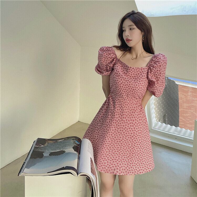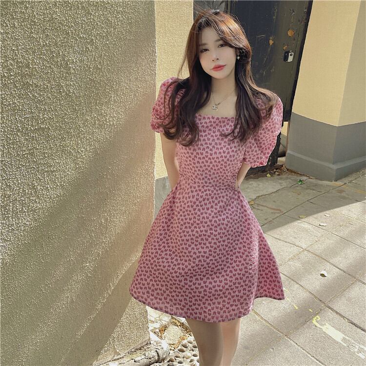 サマースタイルスタンダードジャカードスカート 薄手スリーブフローラルドレス レトロ 夏物 花柄 スクウェア ドラファッションホール8208054129