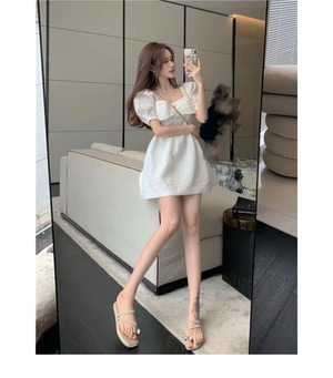 リボンスリーブスリムドレス レディース スクウェア ドラファッションホール48060546339