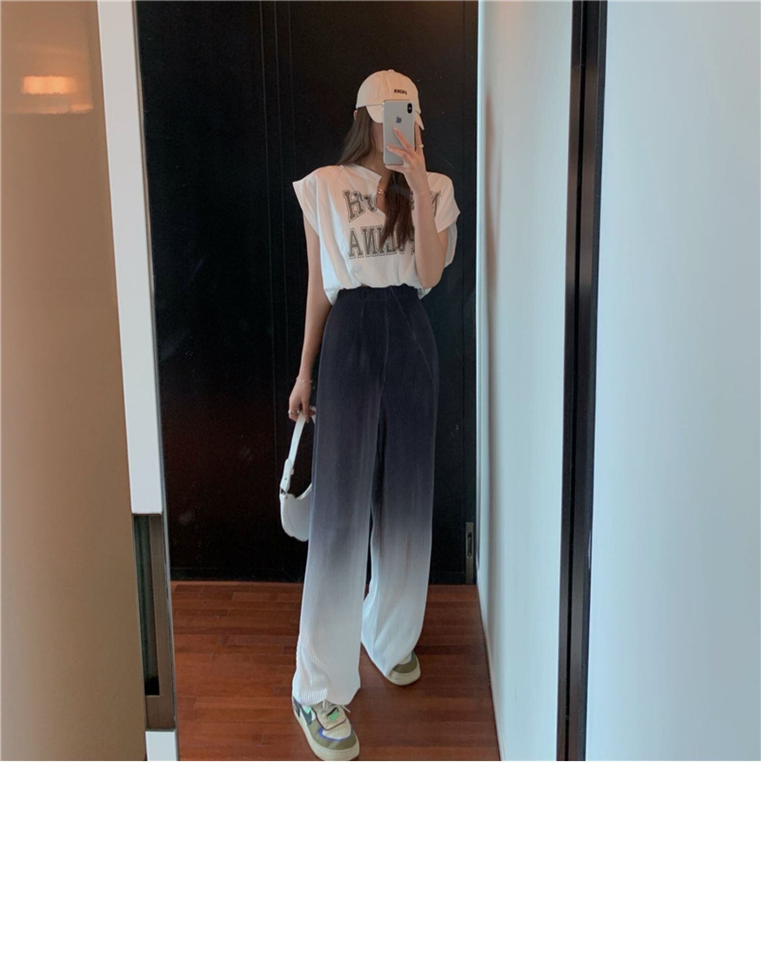 パンツ サマープリーツワイドレッグハイウェストウェストカジュアル 夏物 ワイドパンツ ドラファッションホール92416354400