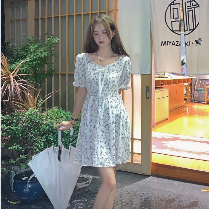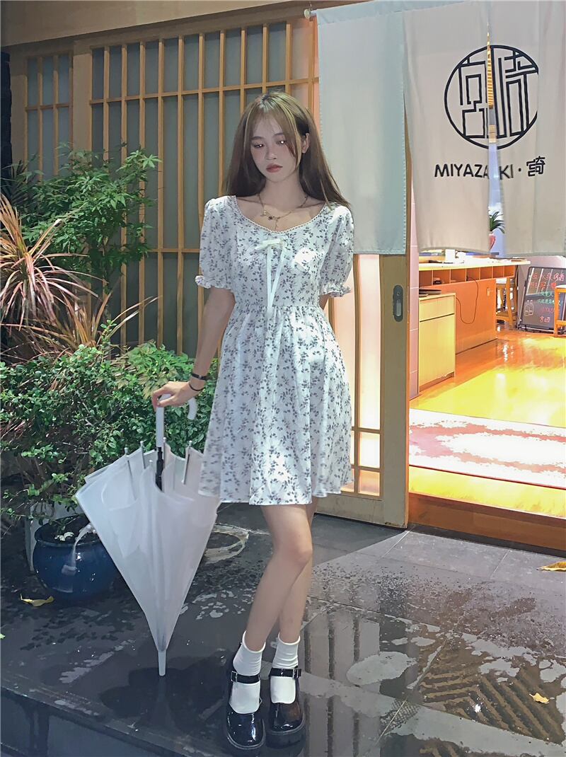 フローラルドレス サマースリーブシフォンスカート 大人ガーリー スウィート キュート カジュアル 夏物 花柄 ピュア ドラファッションホール98893849449