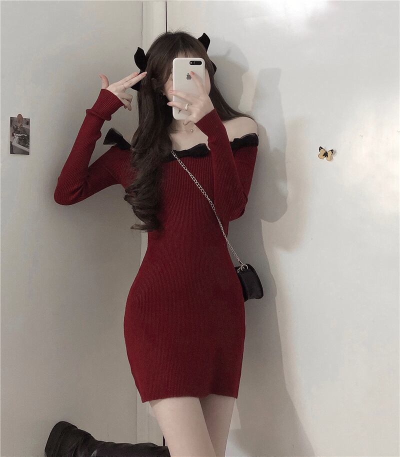 ショルダーバッグスカート スプリングスタイルスリムハイウェストウェストニットドレス 春物 ドラファッションホール95052245040