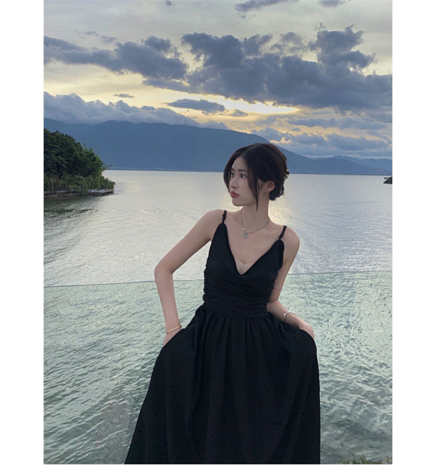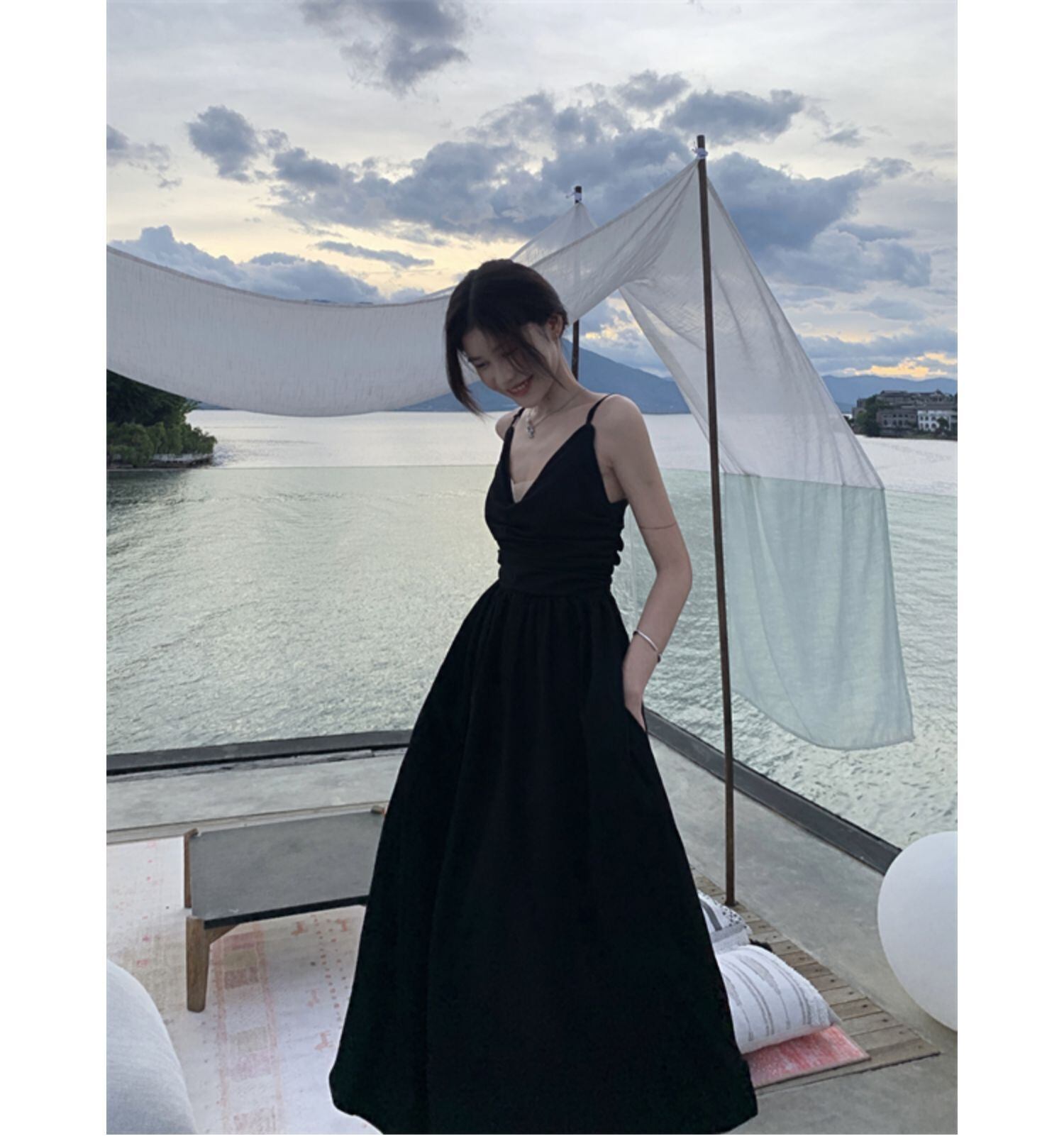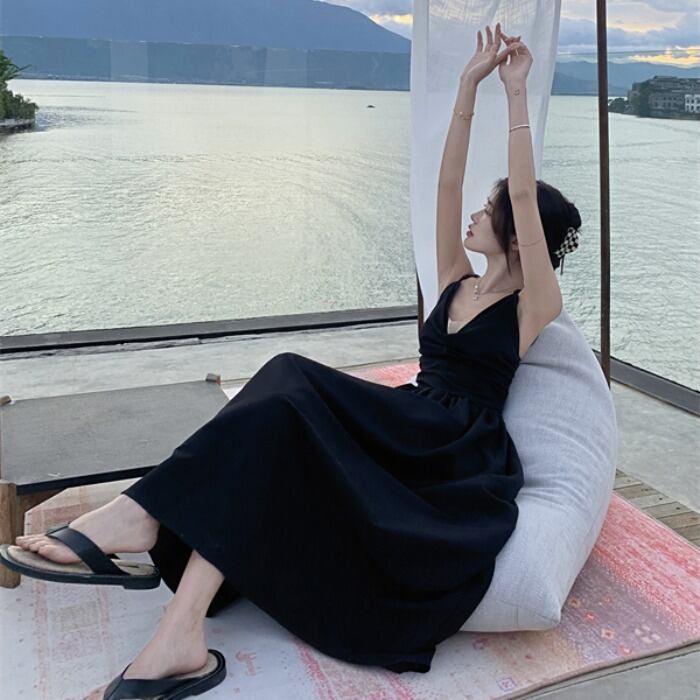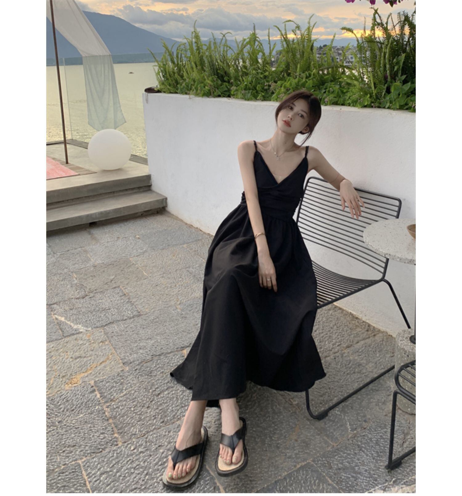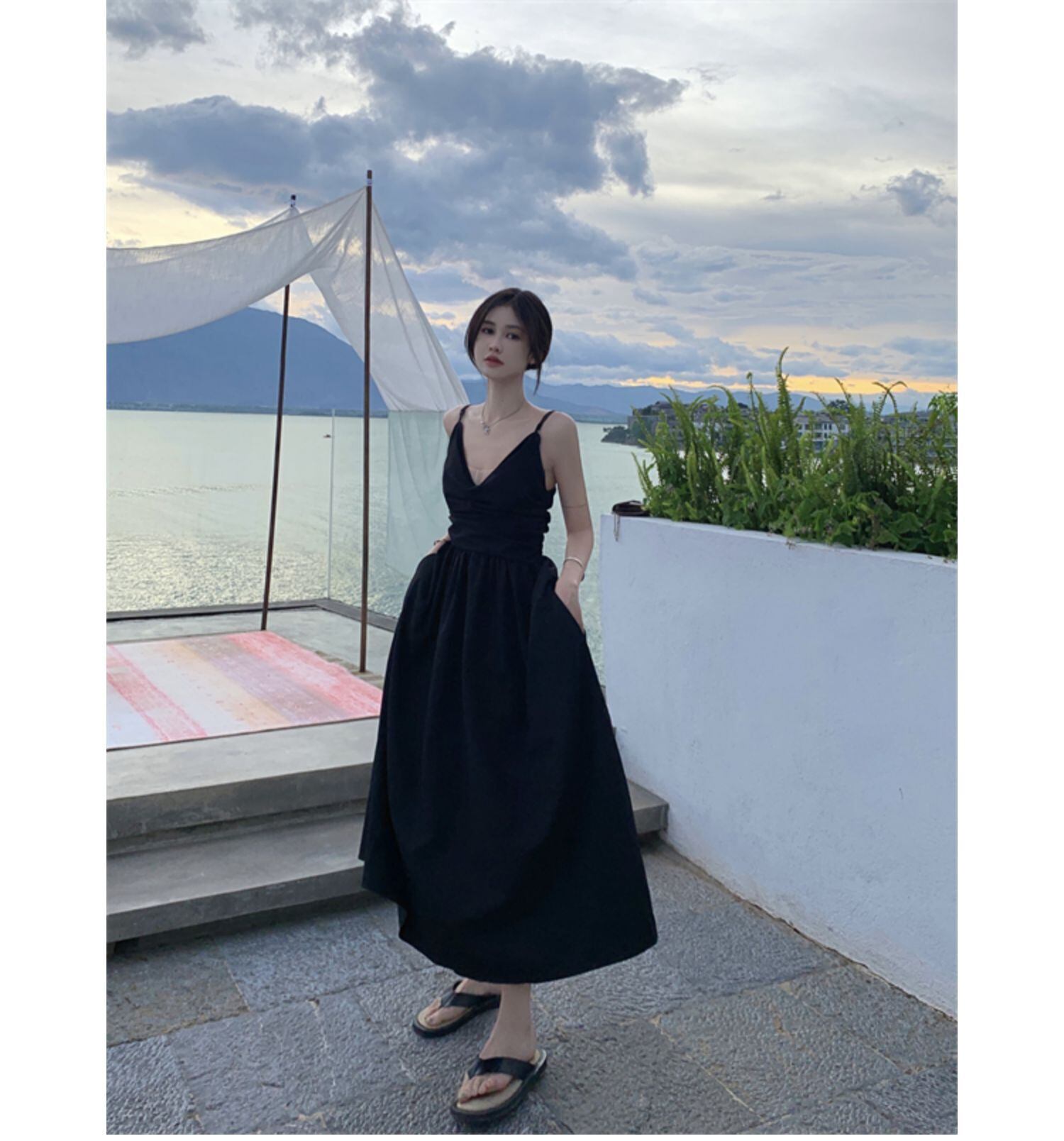 バックレスVネックスカート ブラックドレス サマー 夏物 ドラファッションホール92593892483