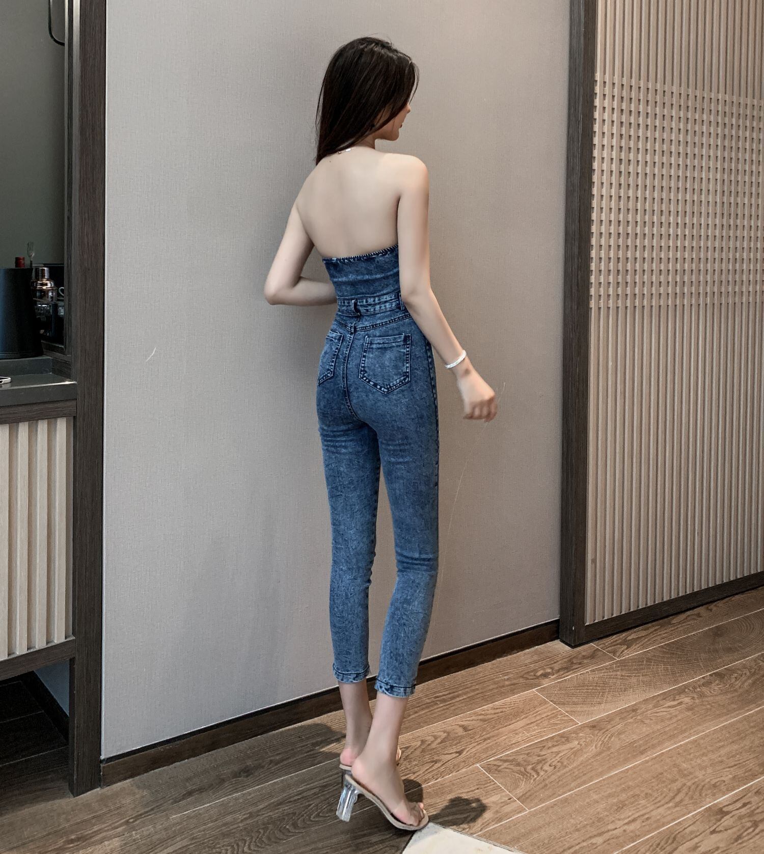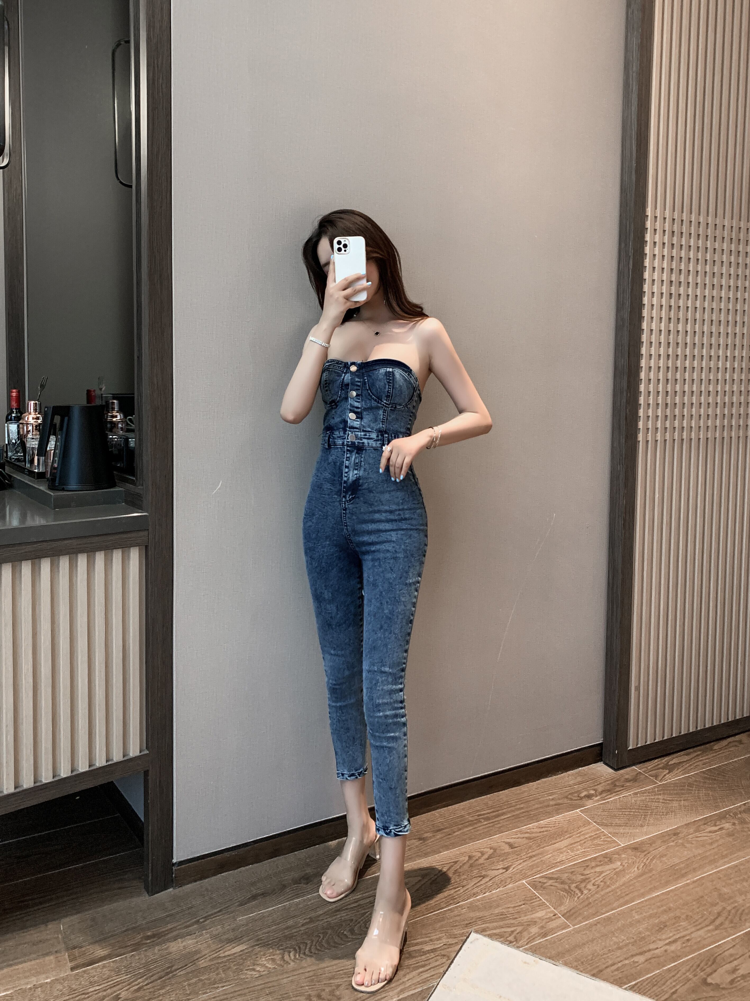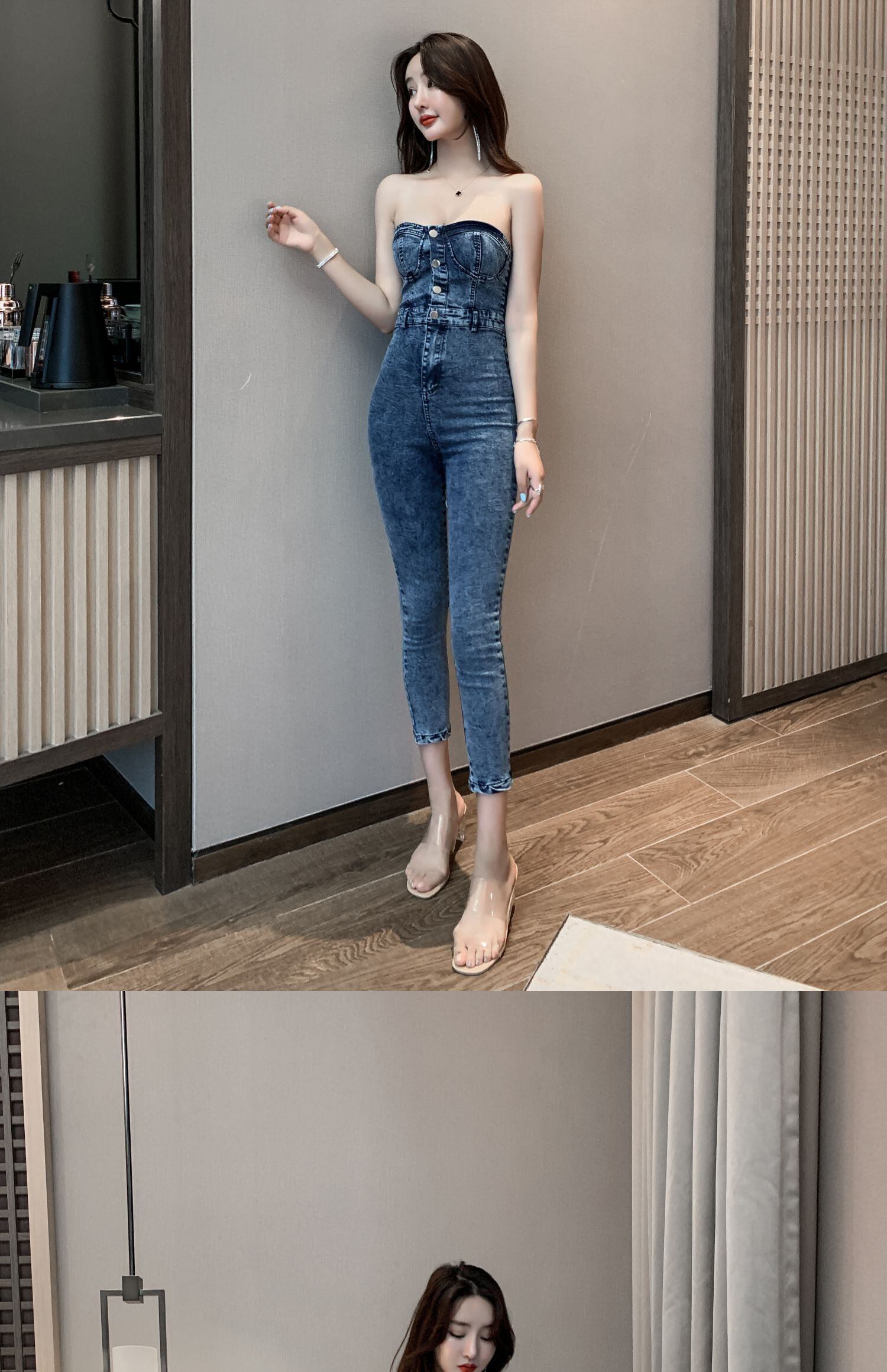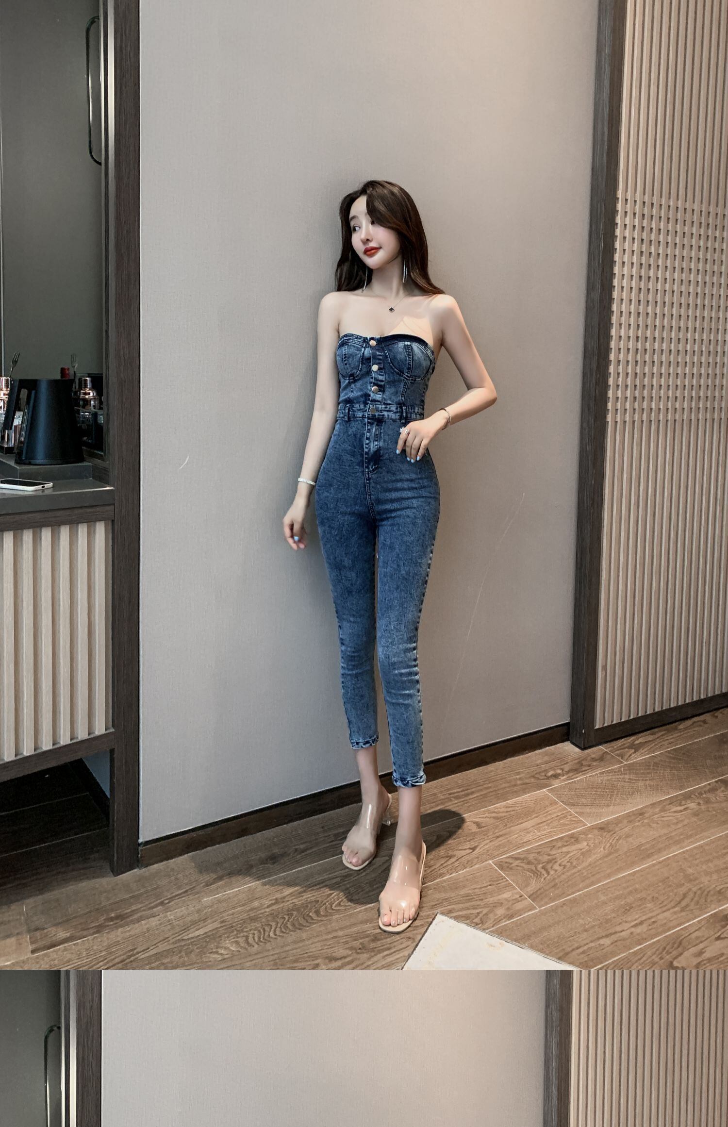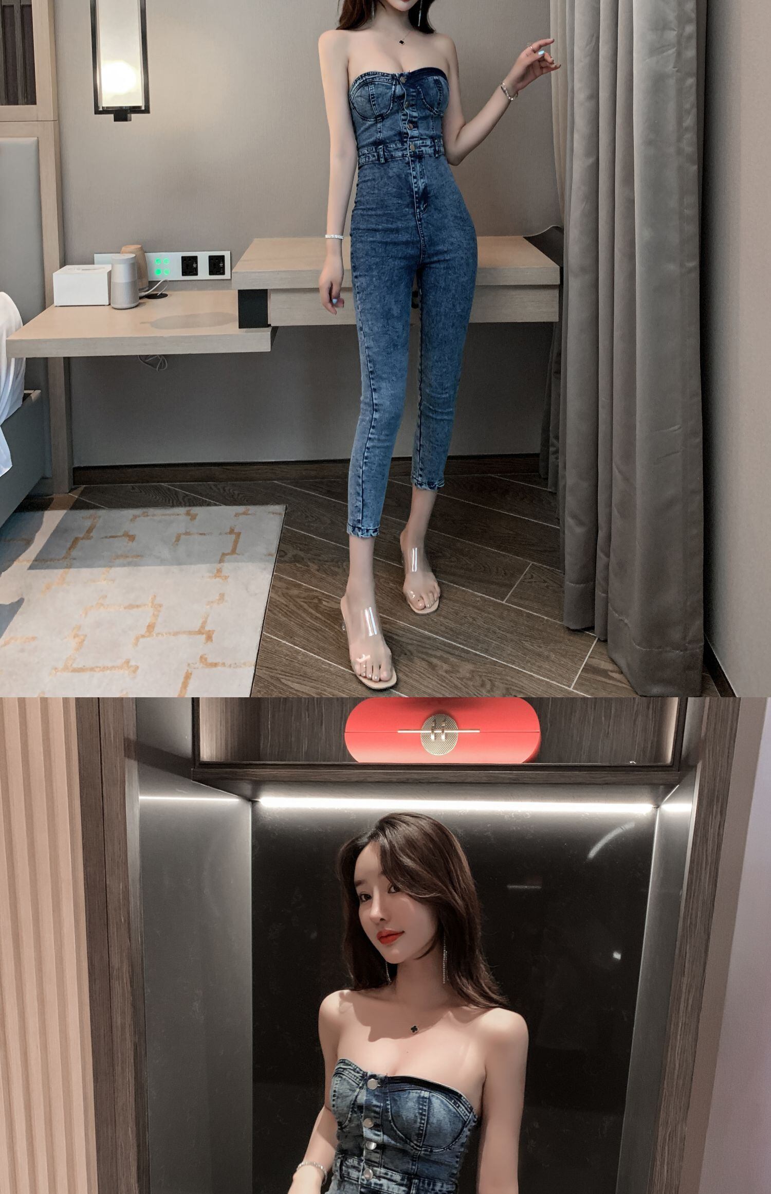 色:ブルーデニムジャンプスーツ,ブラックデニムジャンプスーツ