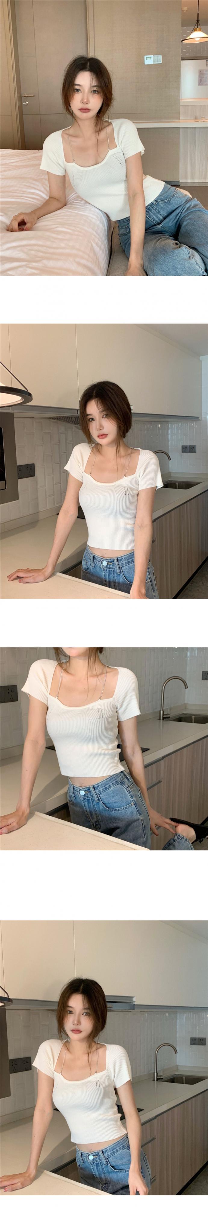 チェーン ニットトップス サマー 夏物 スクウェア ドラファッションホール50534884498