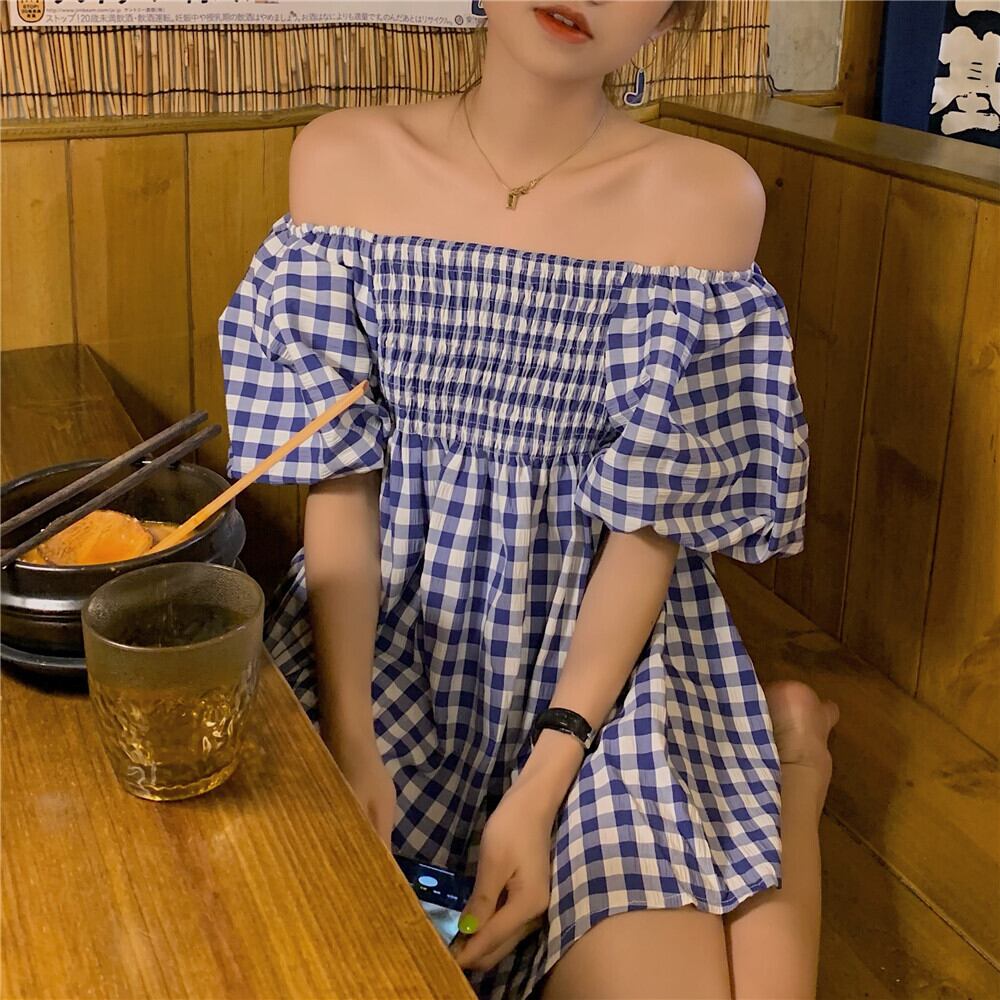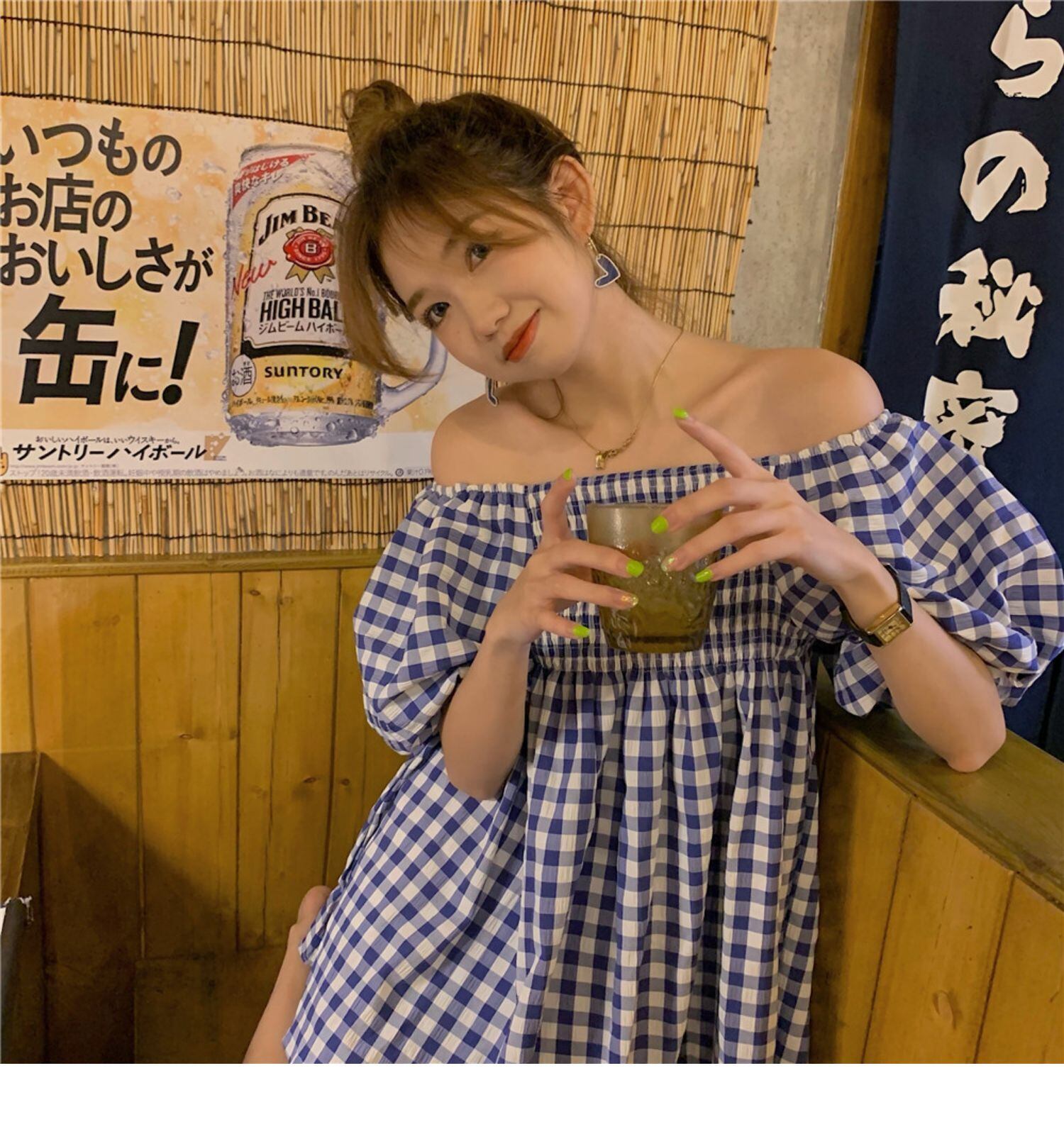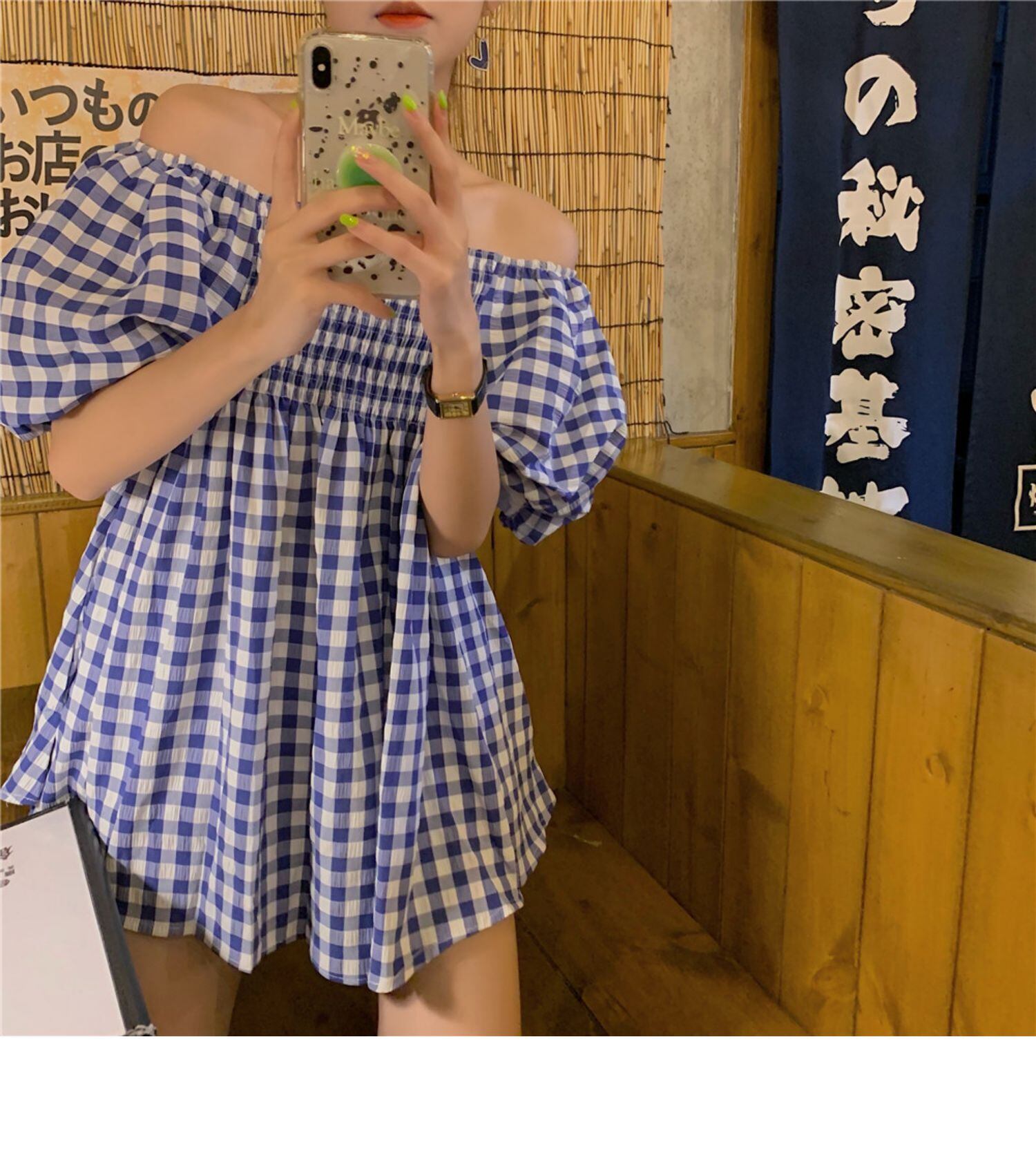 ルーズ格子柄シャツ スカート 薄手カジュアルサマードレス 大人ガーリー スウィート キュート 夏物 ピュア ドラファッションホール19163663878