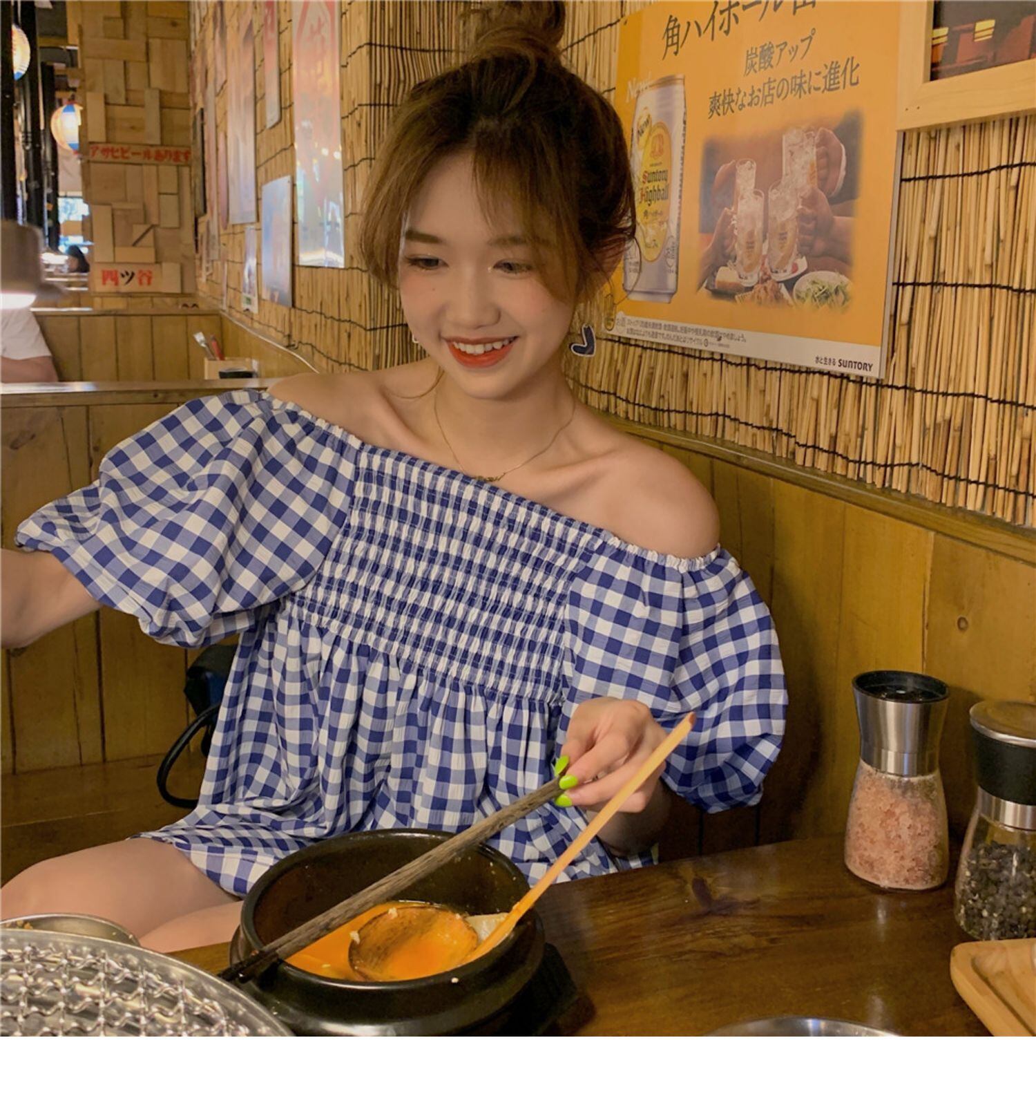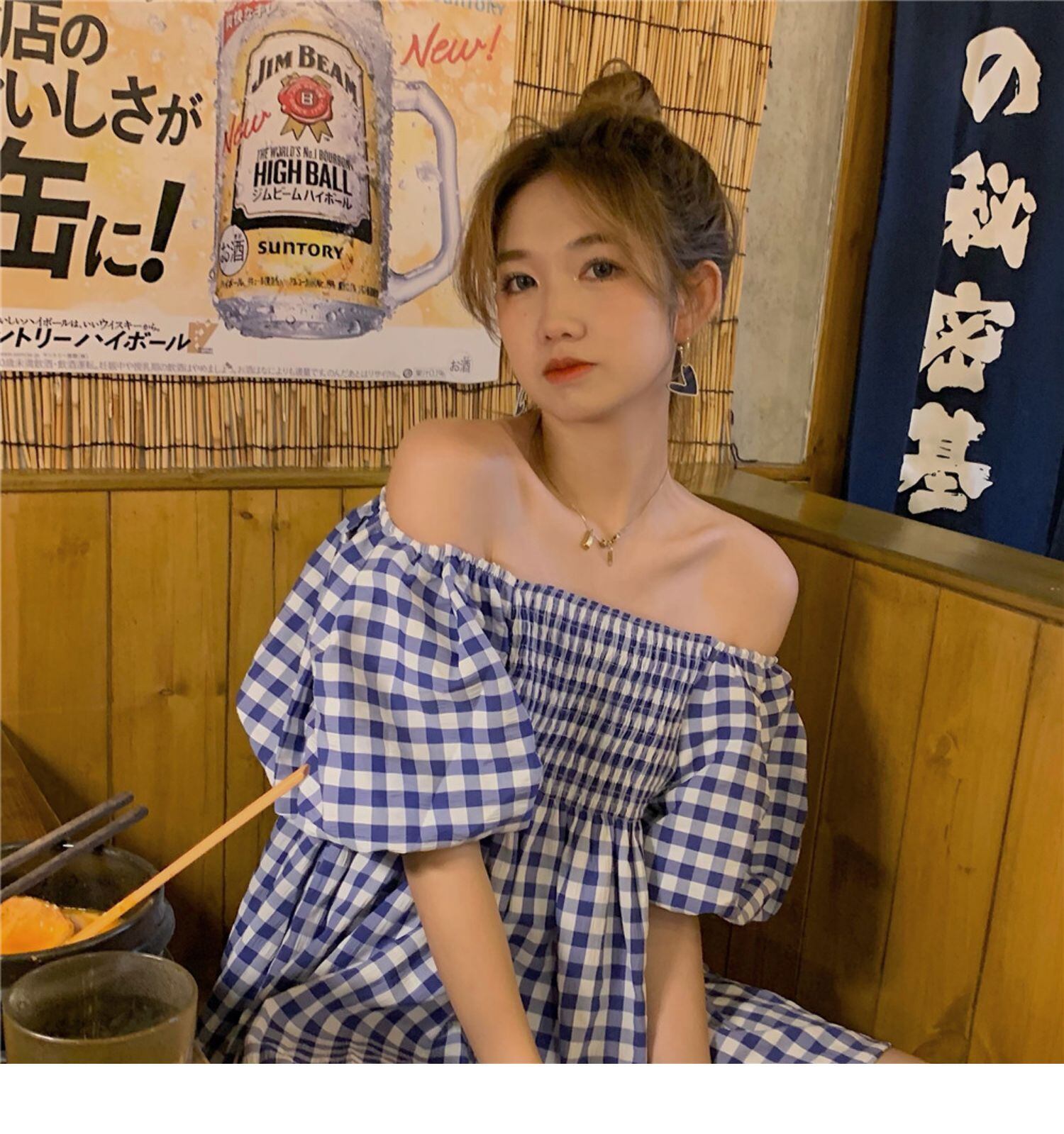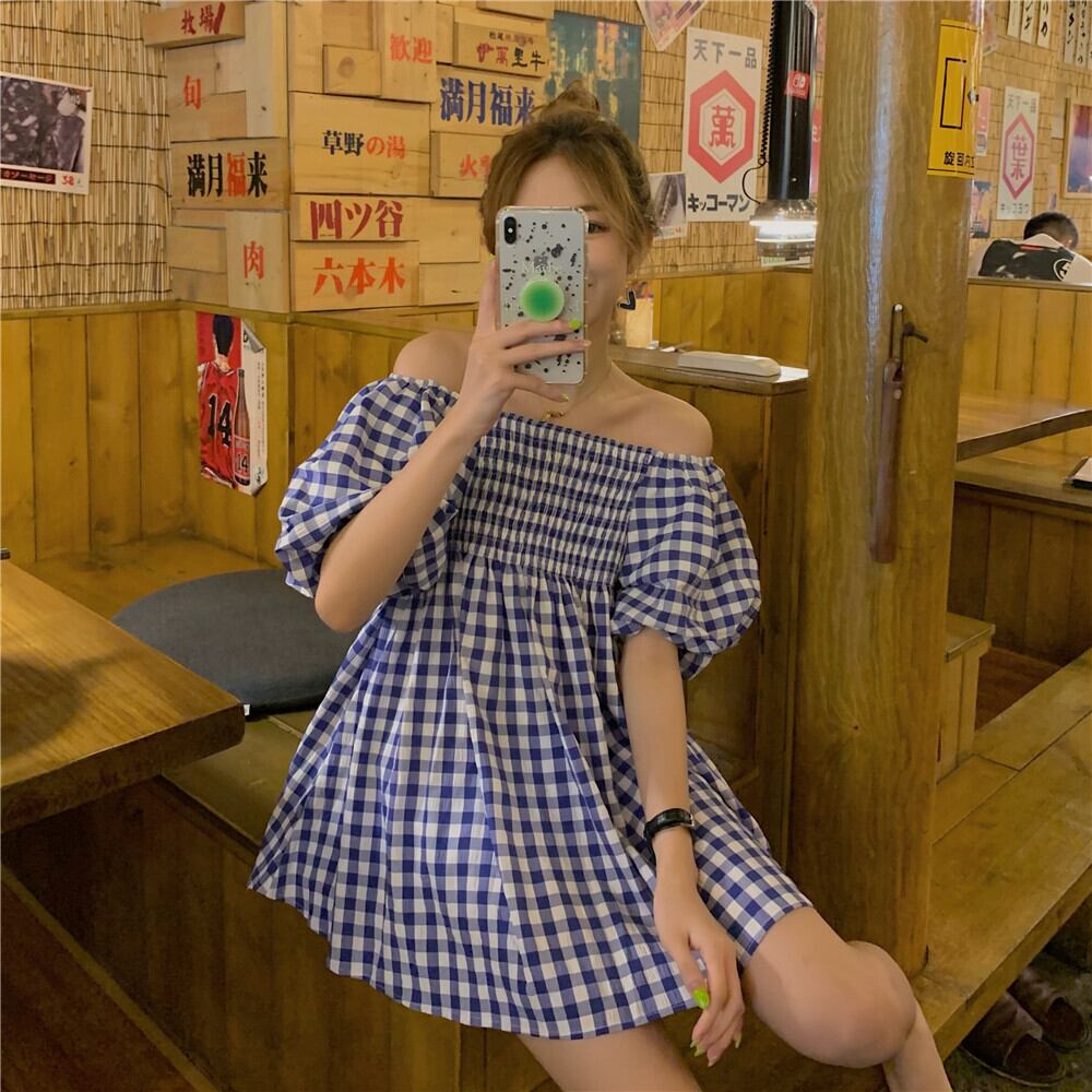 ルーズ格子柄シャツ スカート 薄手カジュアルサマードレス 大人ガーリー スウィート キュート 夏物 ピュア ドラファッションホール19163663878