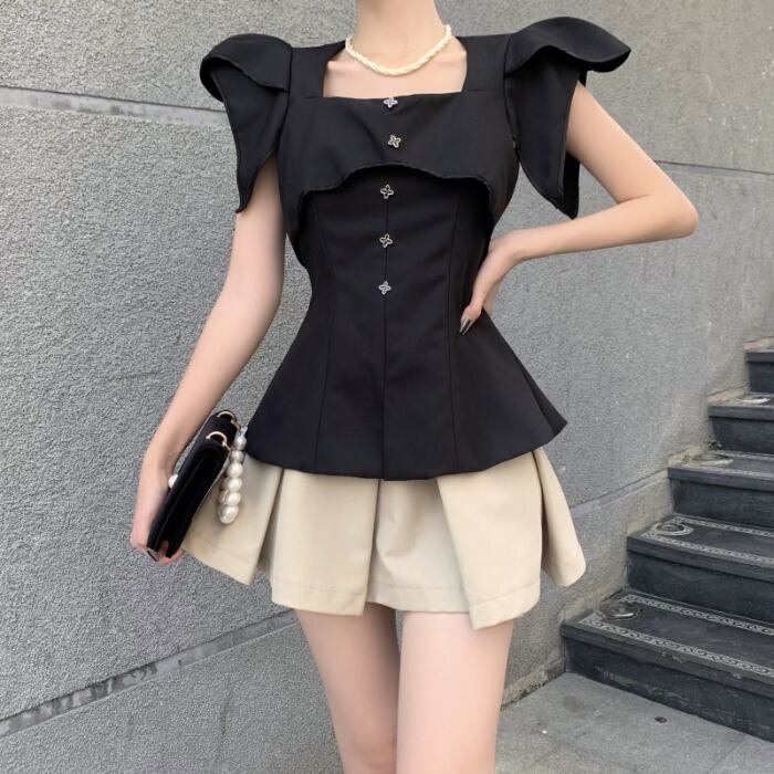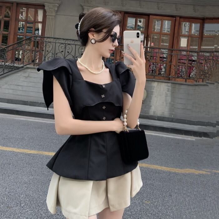 サマートップス プリーツスカート 夏物 スクウェア ドラファッションホール85517885873