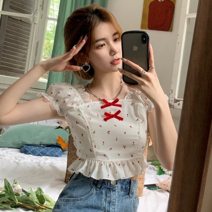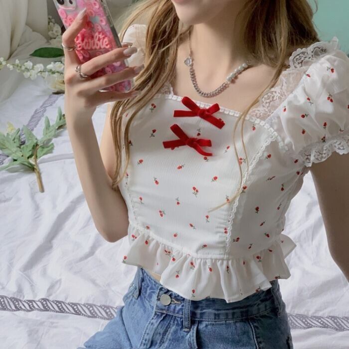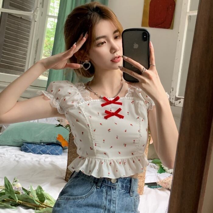 サマースタンダードレースショートシャツ レディース レトロ 大人ガーリー スウィート キュート カジュアル 夏物 ドラファッションホール20468357859