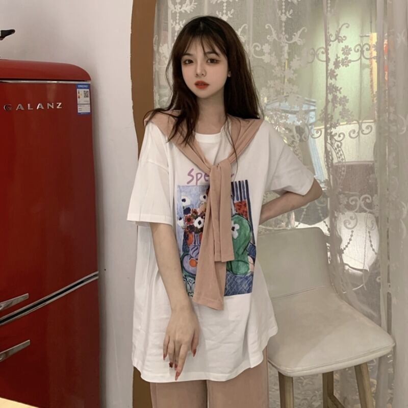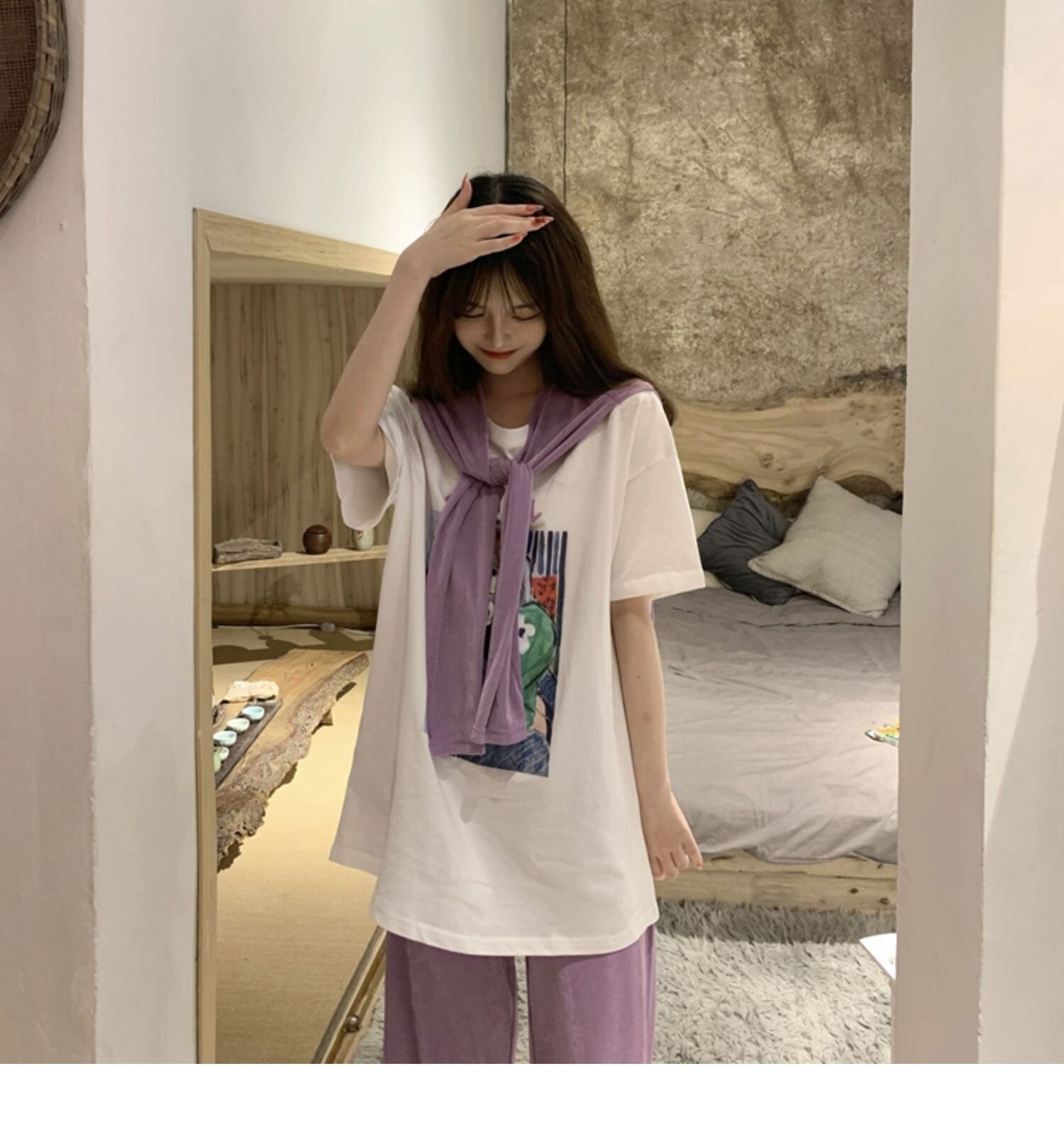 サマープリントTシャツ ルーズハイウェストウェストパンツ 夏物 ドラファッションホール47451349331