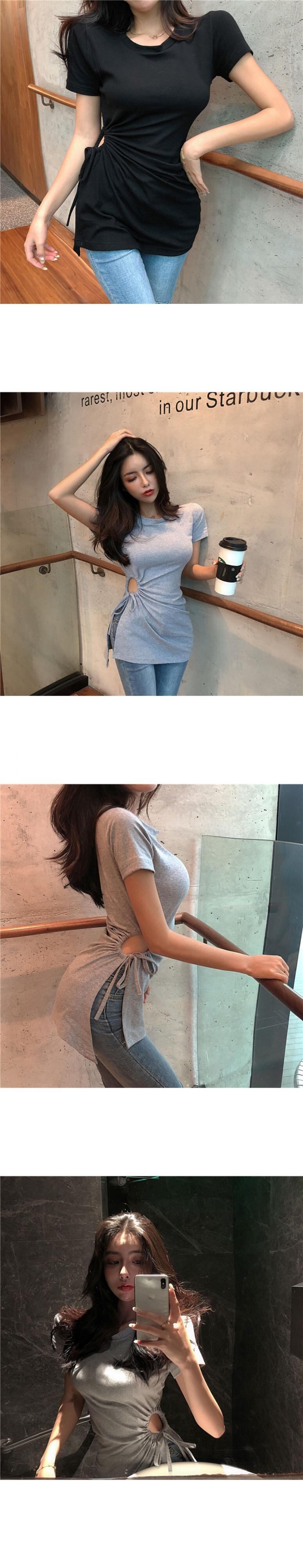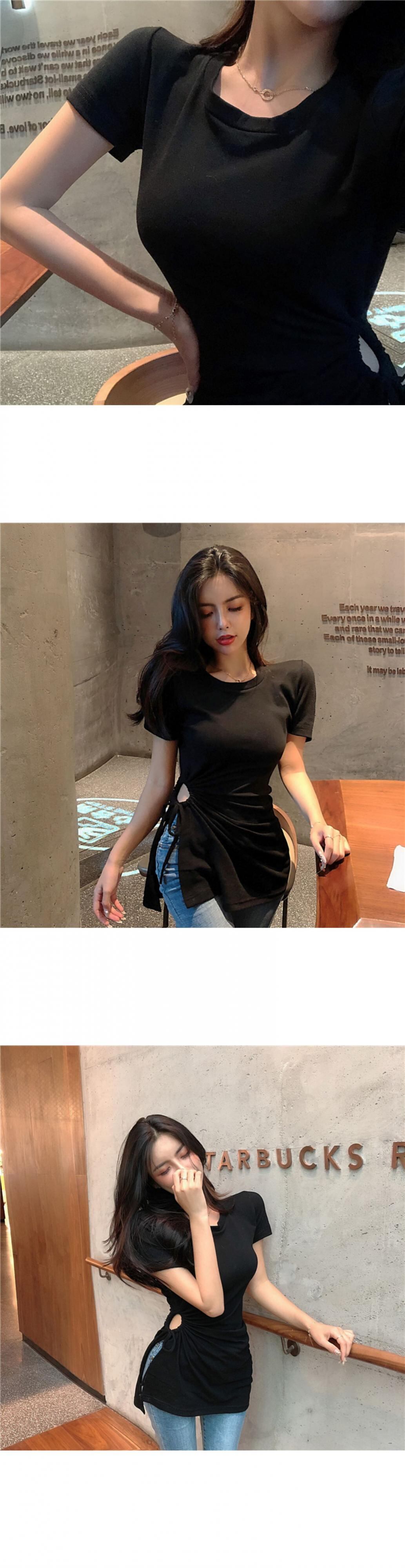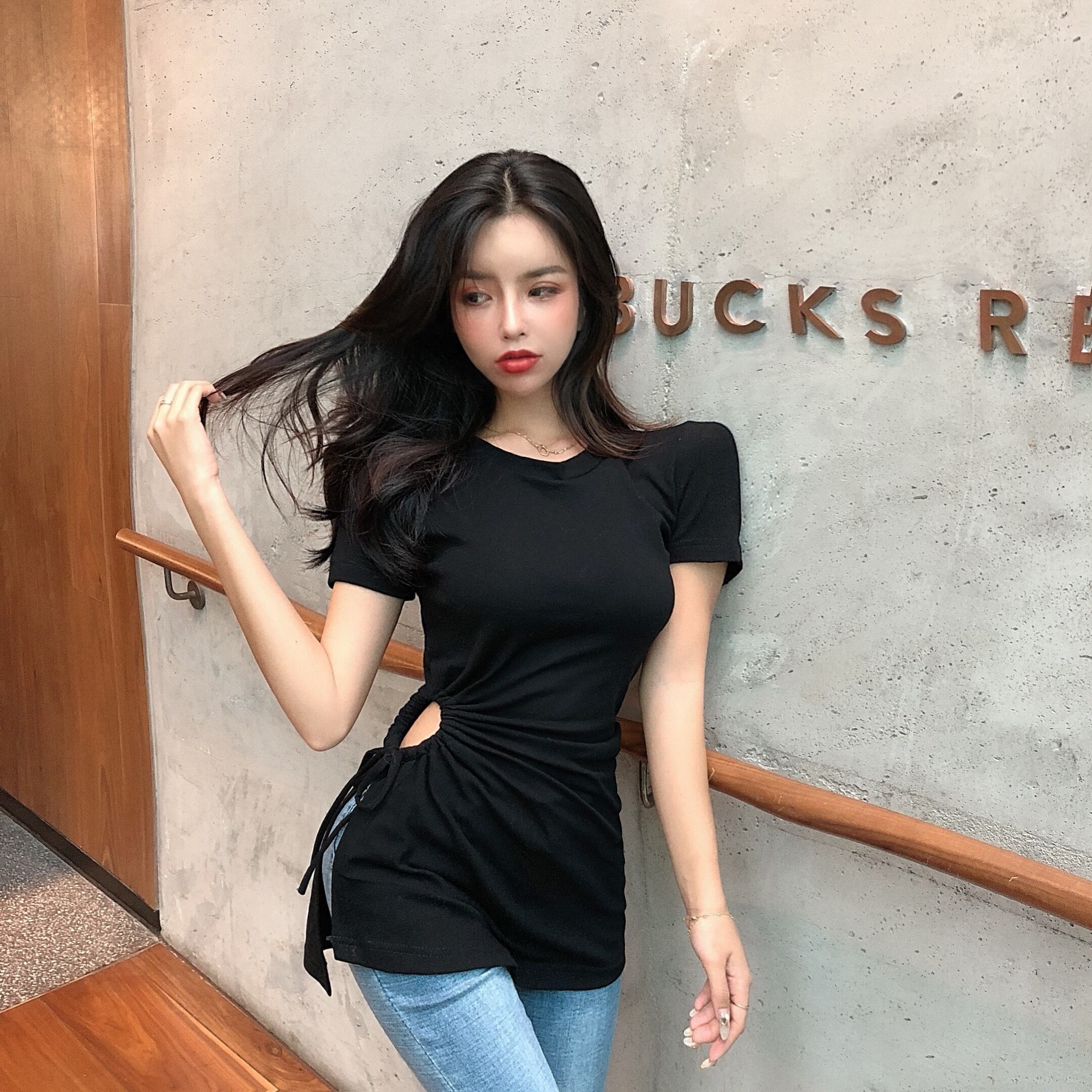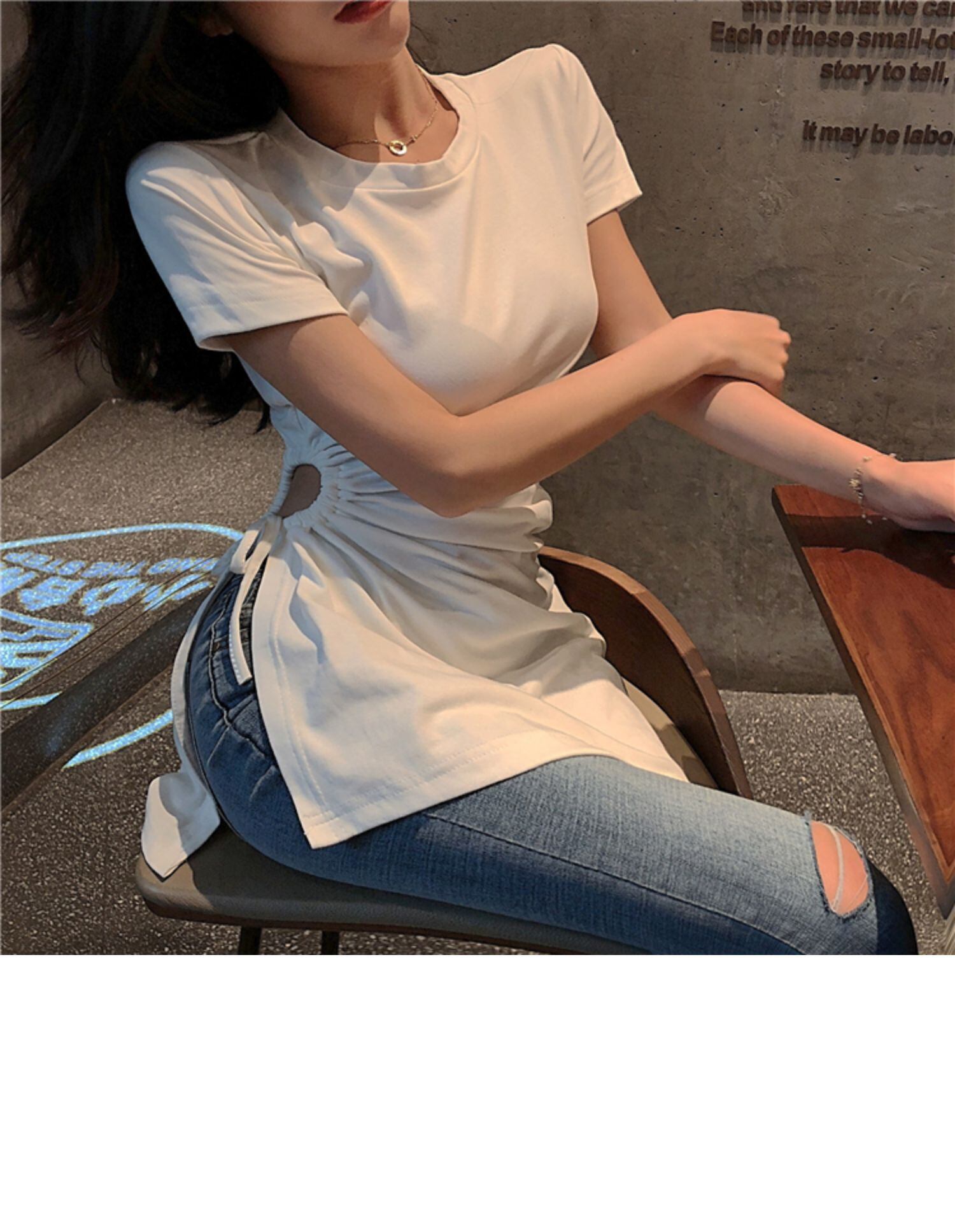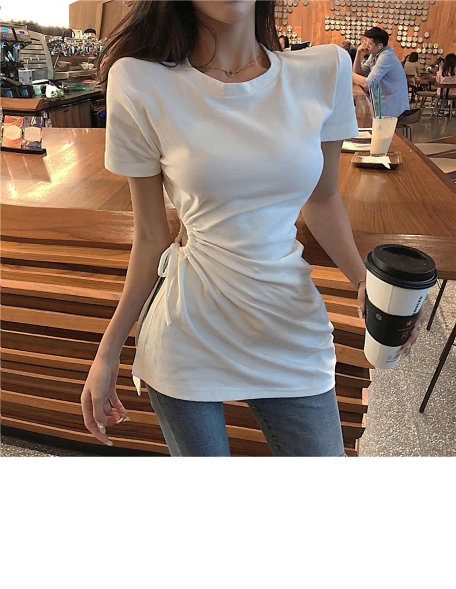 スプリングサマースタイルスタンダードギャザーレッドTシャツ スリムブラウス レディース レトロ 春物 夏物 ドラファッションホール87862385791